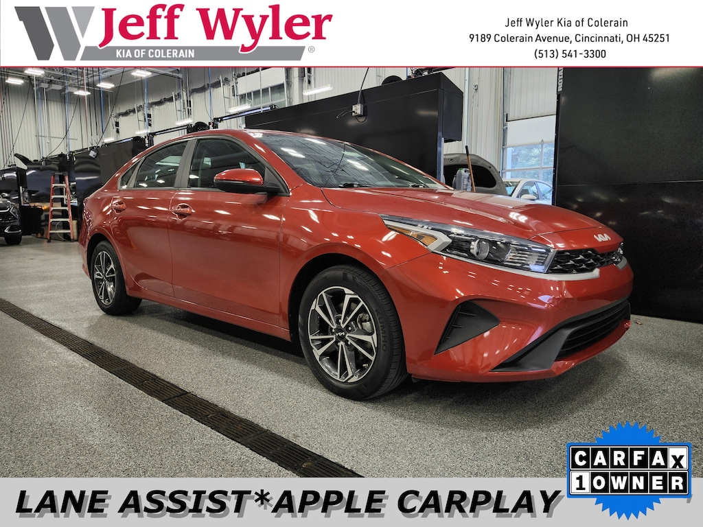 Jeff Wyler Kia of Colerain is excited to offer this handsome 2022 Kia Forte LXS in Fire Orange. LXS Technology Package (Blind-Spot Collision Avoidance (BCA), Heated Outside Mirrors, LED Turn Signal w/Outside Mirror Indicators, Rear Cross-Traffic Collision Avoidance (RCCA), and Safe Exit Warning (SEW)), 4 Speakers, 4-Wheel Disc Brakes, ABS brakes, Air Conditioning, Alloy wheels, AM/FM radio, Apple CarPlay & Android Auto, Auto High-beam Headlights, Brake assist, Bumpers: body-color, Cloth Seat Trim, Delay-off headlights, Driver door bin, Driver vanity mirror, Dual front impact airbags, Dual front side impact airbags, Electronic Stability Control, Exterior Parking Camera Rear, Front anti-roll bar, Front Bucket Seats, Front Center Armrest, Front reading lights, Front wheel independent suspension, Fully automatic headlights, Illuminated entry, Low tire pressure warning, Occupant sensing airbag, Outside temperature display, Overhead airbag, Overhead console, Panic alarm, Passenger door bin, Passenger vanity mirror, Power door mirrors, Power steering, Power windows, Radio data system, Radio: HD Display Audio System, Rear window defroster, Remote keyless entry, Security system, Speed control, Split folding rear seat, Steering wheel mounted audio controls, Tachometer, Telescoping steering wheel, Tilt steering wheel, Traction control, Trip computer, Variably intermittent wipers, and Wheels: 16" Machine Finish Alloy Our PRE-OWNED vehicles are put through a rigorous 167- POINT QUALITY ASSURANCE INSPECTION along with an average amount of over $1,400.00 SPENT to recondition each vehicle so we can be sure to deliver you the highest quality vehicle like you deserve! ***ONLINE PRICE DOES NOT INCLUDE WYLER FAMILY FIRST PACKAGE***