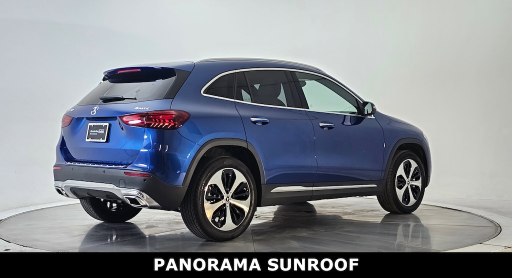 Starling Blue Metallic 2025 Mercedes-Benz GLA 250 4MATIC® 8 Speed Dual Clutch 2.0L I4 Turbocharged Active Distance Assist DISTRONIC®, Advanced Sound System, Door Sills w/Mercedes-Benz Lettering, Exclusive Package, Heated Seats, Heated Steering Wheel, Heated Washer System, LED Logo Projectors, MB Navigation, MBUX Augmented Reality for Navigation, Music Streaming, Panoramic Sliding Sunroof, Wheels: 19" Twin 5-Spoke Aero w/Black Accents, Winter Package.