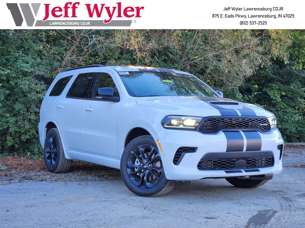 Jeff Wyler Chrysler Dodge Jeep of Lawrenceburg is proud to offer this good-looking 2026 Dodge Durango GT Plus in White Knuckle Clearcoat. Well equipped with: Blacktop Package (Black Roof Rails, Gloss Black Badges, Gloss Black Exterior Mirrors, GT Gloss Black Badging, Integrated Roof Rail Crossbars, Satin Black Dodge Tail Lamp Badge, and Wheels: 20" x 8" Black Noise Aluminum), Quick Order Package 2BH GT Plus (115V Auxiliary Power Outlet, 180 Amp Alternator, 506 Watt Amplifier, 7 & 4 Pin Wiring Harness, 9 Alpine Amplified Speakers w/Subwoofer, Adaptive Cruise Control w/Stop, Advanced Brake Assist, Auto High Beam Headlamp Control, Auto-Dimming Exterior Driver Mirror, Blind Spot w/Trailer Detection, Bright Cargo Area Scuff Pads, Class IV Receiver Hitch, Dual Remote USB Port - Charge Only, Exterior Mirrors w/Heating Element, Exterior Mirrors w/Memory, Exterior Mirrors w/Supplemental Signals, Full Speed Forward Collision Warning Plus, Heated Second Row Seats, Heavy-Duty Engine Cooling, Lane Departure Warning Plus, Leather Trimmed Bucket Seats, Leather Wrapped Door Panels, LED Auxiliary Low Beam & Turn Signal, ParkSense Front/Rear Park Assist w/Stop, Power 6x9 Multi-Function Foldaway Mirrors, Power 8-Way Driver Memory 8-Way Passenger Seats, Power Driver/Passenger 4-Way Lumbar Adjust, Power Sunroof, Power Tilt & Telescopic Steering Column, Rear Load Leveling Suspension, Red Accent Stitching, Security Alarm, Sun Visors w/Illuminated Vanity Mirrors, Trailer Brake Control, Ventilated Front Seats, and Wireless Charging Pad), AWD, 3.45 Rear Axle Ratio, 3rd row seats: split-bench, 4-Wheel Disc Brakes, 6 Speakers, ABS brakes, Air Conditioning, Alloy wheels, AM/FM radio: SiriusXM w/360L, Apple CarPlay/Android Auto, Auto-dimming Rear-View mirror, Automatic temperature control, Brake assist, Bumpers: body-color, Cloth Bucket Seats w/Shift Insert, Compass, Delay-off headlights, Driver door bin, Driver vanity mirror, Dual front impact airbags, Dual front side impact airbags, Electronic Stability Control, Emergency communication system: Dodge Connect, Four wheel independent suspension, Front anti-roll bar, Front Bucket Seats, Front Center Armrest w/Storage, Front dual zone A/C, Front reading lights, Fully automatic headlights, Garage door transmitter, Heated door mirrors, Heated front seats, Heated steering wheel, Illuminated entry, Knee airbag, Leather steering wheel, Low tire pressure warning, MOPAR Dual Stripes- Gunmetal Low Gloss, MyFlexCare Service Plan, Navigation System, Occupant sensing airbag, Outside temperature display, Overhead airbag, Overhead console, Panic alarm, ParkView Rear Back-Up Camera, Passenger door bin, Passenger vanity mirror, Power door mirrors, Power driver seat, Power Liftgate, Power steering, Power windows, Radio data system, Radio: Uconnect 5 Nav w/10.1" Display, Rear air conditioning, Rear anti-roll bar, Rear reading lights, Rear seat center armrest, Rear window defroster, Rear window wiper, Remote keyless entry, Speed control, Speed-sensing steering, Speed-Sensitive Wipers, Split folding rear seat, Spoiler, Sport steering wheel, Steering wheel mounted audio controls, Tachometer, Telescoping steering wheel, Tilt steering wheel, Traction control, Trip computer, Variably intermittent wipers, Voltmeter, and Wheels: 20" x 8" Fine Silver.Wyler Family First Package Includes: NanoCure Appearance Protection: Exterior & Interior Chemical Sealant Applied to Protect Against Environmental Hazards (7 Year Warranty Coverage). Pulse- Rear end Collision Avoidance System Theft Deterrent Strategy gives you 5 Years of Coverage against vehicle Theft, Offering up to a $5,000 benefit. Used vehicles 10 years of age or newer with less than 100,000 miles are eligible for the Wyler Assurance Program, but eligible vehicles must pass our reconditioning process and multi-point inspection. Provided the vehicl Price includes: $1000 - 2026 Midwest BC Bonus Cash . Exp. 11/03/2025 $1000 - 2026 National Engine Retail Bonus Cash . Exp. 11/03/2025