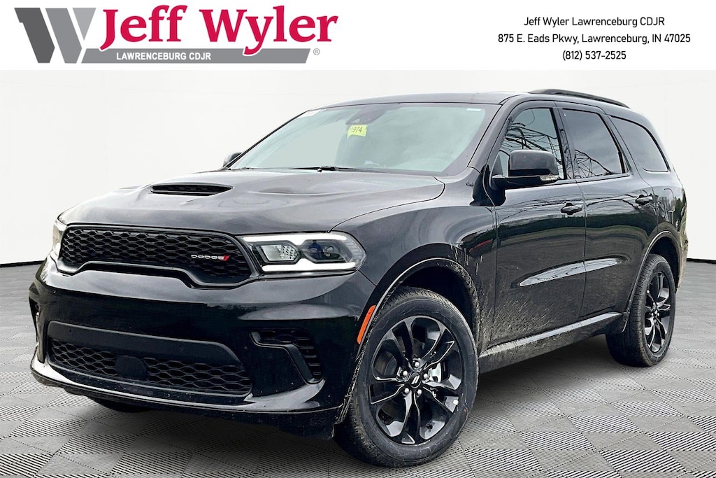Jeff Wyler Chrysler Dodge Jeep of Lawrenceburg is very proud to offer this charming-looking 2026 Dodge Durango GT Plus in DB Black Crystal Clearcoat. Well equipped with: Blacktop Package (Black Roof Rails, Gloss Black Badges, GT Gloss Black Badging, Integrated Roof Rail Crossbars, Satin Black Dodge Tail Lamp Badge, and Wheels: 20" x 8" Black Noise Aluminum), Quick Order Package 2BH GT Plus (115V Auxiliary Power Outlet, 180 Amp Alternator, 506 Watt Amplifier, 7 and 4 Pin Wiring Harness, 9 Alpine Amplified Speakers with Subwoofer, Adaptive Cruise Control with Stop, Advanced Brake Assist, Auto High Beam Headlamp Control, Auto-Dimming Exterior Driver Mirror, Blind Spot with Trailer Detection, Bright Cargo Area Scuff Pads, Class IV Receiver Hitch, Dual Remote USB Port - Charge Only, Exterior Mirrors with Heating Element, Exterior Mirrors with Memory, Exterior Mirrors with Supplemental Signals, Full Speed Forward Collision Warning Plus, Gloss Black Exterior Mirrors, Heated Second Row Seats, Heavy-Duty Engine Cooling, Lane Departure Warning Plus, Leather Trimmed Bucket Seats, Leather Wrapped Door Panels, LED Auxiliary Low Beam and Turn Signal, ParkSense Front/Rear Park Assist with Stop, Power 6x9 Multi-Function Foldaway Mirrors, Power 8-Way Driver Memory 8-Way Passenger Seats, Power Driver/Passenger 4-Way Lumbar Adjust, Power Sunroof, Power Tilt and Telescopic Steering Column, Rear Load Leveling Suspension, Red Accent Stitching, Security Alarm, Sun Visors with Illuminated Vanity Mirrors, Trailer Brake Control, Ventilated Front Seats, and Wireless Charging Pad), AWD, 3.45 Rear Axle Ratio, 3rd row seats: split-bench, 4-Wheel Disc Brakes, 6 Speakers, ABS brakes, Air Conditioning, Alloy wheels, AM/FM radio: SiriusXM w/360L, Apple CarPlay/Android Auto, Auto-dimming Rear-View mirror, Automatic temperature control, Brake assist, Bumpers: body-color, Cloth Bucket Seats with Shift Insert, Compass, Delay-off headlights, Driver door bin, Driver vanity mirror, Dual front impact airbags, Dual front side impact airbags, Electronic Stability Control, Emergency communication system: Dodge Connect, Four wheel independent suspension, Front anti-roll bar, Front Bucket Seats, Front Center Armrest w/Storage, Front dual zone A/C, Front reading lights, Fully automatic headlights, Garage door transmitter, Heated door mirrors, Heated front seats, Heated steering wheel, Illuminated entry, Knee airbag, Leather steering wheel, Low tire pressure warning, Navigation System, Occupant sensing airbag, Outside temperature display, Overhead airbag, Overhead console, Panic alarm, ParkView Rear Back-Up Camera, Passenger door bin, Passenger vanity mirror, Power door mirrors, Power driver seat, Power Liftgate, Power steering, Power windows, Radio data system, Radio: Uconnect 5 Nav with 10.1" Display, Rear air conditioning, Rear anti-roll bar, Rear reading lights, Rear seat center armrest, Rear window defroster, Rear window wiper, Remote keyless entry, Speed control, Speed-sensing steering, Speed-Sensitive Wipers, Split folding rear seat, Spoiler, Sport steering wheel, Steering wheel mounted audio controls, Tachometer, Telescoping steering wheel, Tilt steering wheel, Traction control, Trip computer, Variably intermittent wipers, Voltmeter, and Wheels: 20" x 8" Fine Silver.Wyler Family First Package Includes: NanoCure Appearance Protection: Exterior & Interior Chemical Sealant Applied to Protect Against Environmental Hazards (7 Year Warranty Coverage). Pulse- Rear end Collision Avoidance System Theft Deterrent Strategy gives you 5 Years of Coverage against vehicle Theft, Offering up to a $5,000 benefit. Used vehicles 10 years of age or newer with less than 100,000 miles are eligible for the Wyler Assurance Program, but eligible vehicles must pass our reconditioning process and multi-point inspection. Provided the vehicle passes inspection, vehicles will be eligible for the 6 month/6,000 m Price includes: $1000 - 2026 National Engine Retail Bonus Cash . Exp. 04/30/2026