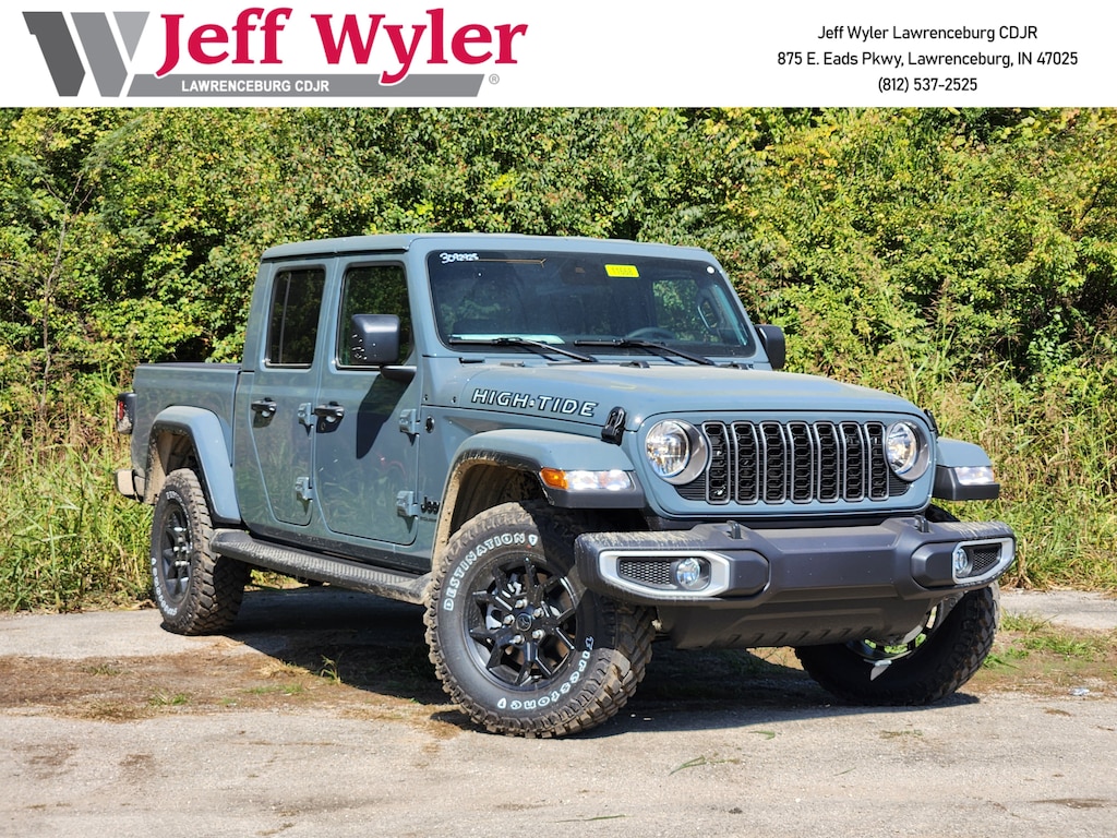 Jeff Wyler Chrysler Dodge Jeep of Lawrenceburg is pleased to offer this stunning-looking 2025 Jeep Gladiator in Anvil Clearcoat. Well equipped with: Convenience Group (Corning Gorilla Glass, Daytime Running Lamp System, Emergency/Assistance Call, Front Door Locks 2-Door Passive Entry, Heated Front Seats, Heated Steering Wheel, Remote Start System, and Universal Garage Door Opener), Quick Order Package 24Q High Tide (97 MPH Vehicle Max Speed Calibration, Advanced Brake Assist, Automatic Headlamps, Body Color 3-Piece Hard Top, Body Color Fender Flares (2-Piece), Deep Tint Sunscreen Windows, Freedom Panel Storage Bag, Full Length Floor Console Premium Armrest, Full Speed Forward Collision Warning Plus, Hard Seat Back, High Tide, High Tide Tailgate & Hood Decals, Integrated Radar Camera Module (IRCM), Leather Wrapped Park Brake Handle, Leather Wrapped Shift Knob, Power 4-Way Driver Lumbar Adjust, Power 4-Way Passenger Lumbar Adjust, Power Adjust 8-Way Driver Seat, Power Adjust 8-Way Front Passenger Seat, Power Heated Mirrors, Premium Door Trim Panel, Premium McKinley Trimmed Seats, Premium Wrapped Steering Wheel, Rear Armrest w/Cupholder Seat, Rear Sliding Window, Rear Window Defroster, Security Alarm, Sun Visors w/Illuminated Vanity Mirrors, Wheels: 17" x 7.5" Painted Black, and Willys Suspension), 110 MPH Vehicle Max Speed Calibration, 12.3" Touchscreen Display, 3.73 Rear Axle Ratio, 4-Wheel Disc Brakes, 4G LTE Wi-Fi Hot Spot, 8 Speakers, ABS brakes, Air Conditioning, Alexa Built-In, AM/FM radio: SiriusXM, Apple CarPlay, Apple CarPlay/Android Auto, Brake assist, Cloth Low-Back Bucket Seats, Compass, Connectivity - US/Canada, Delay-off headlights, Driver door bin, Driver vanity mirror, Dual front impact airbags, Dual front side impact airbags, Electronic Stability Control, Front anti-roll bar, Front Bucket Seats, Front Center Armrest w/Storage, Front fog lights, Front reading lights, Google Android Auto, Illuminated entry, Integrated roll-over protection, Low tire pressure warning, MOPAR All-Weather Slush Mats, Normal Duty Suspension, Occupant sensing airbag, Outside temperature display, Overhead airbag, Panic alarm, ParkView Rear Back-Up Camera, Passenger door bin, Passenger vanity mirror, Power steering, Power windows, Radio data system, Radio: Uconnect 5 w/12.3" Display, Rear anti-roll bar, Rear reading lights, Remote keyless entry, Side Steps, Speed control, Split folding rear seat, Steering wheel mounted audio controls, Tachometer, Telescoping steering wheel, Tilt steering wheel, Traction control, Trip computer, USB Host Flip, Variably intermittent wipers, Voltmeter, and Wheels: 17" x 7.5" Black Steel Styled.Wyler Family First Package Includes: NanoCure Appearance Protection: Exterior & Interior Chemical Sealant Applied to Protect Against Environmental Hazards (7 Year Warranty Coverage). Pulse- Rear end Collision Avoidance System Theft Deterrent Strategy gives you 5 Years of Coverage against vehicle Theft, Offering up to a $5,000 benefit. Used vehicles 10 years of age or newer with less than 100,000 miles are eligible for the Wyler Assurance Program, but eligible vehicles must pass our reconditioning process and multi-point inspection. Provided the vehicle passes inspection, vehicles will be eligible for the 6 month/6,000 mile limited warranty. The 6 month/6,000 mile limited warranty is NOT available on AS-IS vehicles, wholesale vehicles, lease buyback/pass-thru vehicles or un-inspected vehicles. Note that this program can also apply to vehicles where the remaining factory coverage is less than 6 months or 6,000 miles. Please check the Federal Trade Commission (FTC) Buyers guide on the vehicle for full details as to whether or not warranty coverage may apply. Contact Dealer for additional details.The Wyler Assurance 6 month/6,000 Mile limited warranty ends 6 months from the date of the Retail Purchase Agreement (BUYERS ORDER) or when the vehicle's odome Price includes: $2250 - 2025 National Bonus Cash . Exp. 11/03/2025