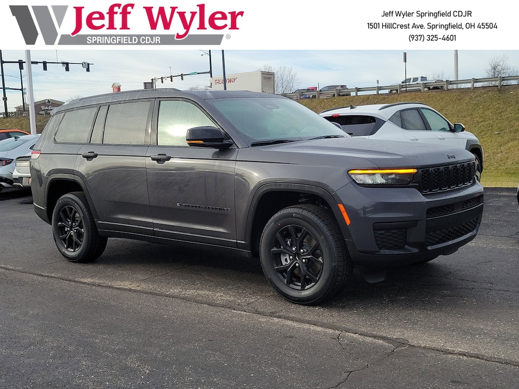 Jeff Wyler Springfield Auto Mall is proud to offer this outstanding-looking 2025 Jeep Grand Cherokee L Altitude X in Baltic Gray Metallic Clearcoat. Well equipped with: Quick Order Package 23M Altitude X (115V Auxiliary Power Outlet, 3rd Row Charge-Only USB Ports, Altitude X, Black Headliner, Capri Leatherette/Suede Seats, Delete Laredo Badge, Gloss Black Exterior Accents, Heated Front Seats, Heated Steering Wheel, Power Liftgate, Power Sunroof, Rain Sensitive Windshield Wipers, Remote Start System, Selectable Tire Fill Alert, Wheels: 18" x 8.0" Fully Painted Aluminum 1, and Wireless Charging Pad), 3.45 Rear Axle Ratio, 3rd row seats: split-bench, 4-Wheel Disc Brakes, 6 Speakers, ABS brakes, Air Conditioning, Alloy wheels, AM/FM radio: SiriusXM, Anti-whiplash front head restraints, Automatic temperature control, Brake assist, Bumpers: body-color, Cloth Seats, Compass, Delay-off headlights, Driver door bin, Driver vanity mirror, Dual front impact airbags, Dual front side impact airbags, Electronic Stability Control, Emergency communication system, Four wheel independent suspension, Front anti-roll bar, Front Bucket Seats, Front Center Armrest w/Storage, Front dual zone A/C, Front License Plate Bracket, Front reading lights, Fully automatic headlights, Heated door mirrors, Illuminated entry, Knee airbag, Low tire pressure warning, Manual Fold Seatbacks, Model Year Tracking, Normal Duty Suspension, Occupant sensing airbag, Outside temperature display, Overhead airbag, Overhead console, Panic alarm, ParkView Rear Back-Up Camera, Passenger door bin, Passenger vanity mirror, Power door mirrors, Power driver seat, Power steering, Power windows, Radio data system, Radio: Uconnect 5 with 8.4" Display, Rear air conditioning, Rear anti-roll bar, Rear reading lights, Rear window defroster, Rear window wiper, Reclining 3rd row seat, Remote keyless entry, Security system, Speed control, Speed-Sensitive Wipers, Split folding rear seat, Spoiler, Steering wheel mounted audio controls, Tachometer, Telescoping steering wheel, Tilt steering wheel, Traction control, Trip computer, Variably intermittent wipers, Voltmeter, and Wheels: 18" x 8.0" Fully Painted Aluminum. 18/25 City/Highway MPGWyler Family First Package Includes: NanoCure Appearance Protection: Exterior & Interior Chemical Sealant Applied to Protect Against Environmental Hazards (7 Year Warranty Coverage). Pulse- Rear end Collision Avoidance System Theft Deterrent Strategy gives you 5 Years of Coverage against vehicle Theft, Offering up to a $5,000 benefit. Available Incentives: $2500 - 2025 National Retail Bonus Cash . Exp. 02/02/2026 $750 - 2025 Midwest BC Retail Bonus Cash. Exp. 01/20/2026