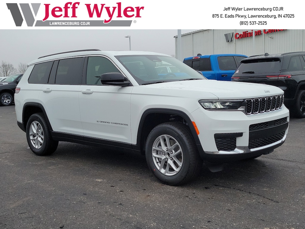 Jeff Wyler Chrysler Dodge Jeep of Lawrenceburg is honored to offer this gorgeous-looking 2025 Jeep Grand Cherokee L Laredo in Bright White Clearcoat. Well equipped with: Luxury Tech Group I (115V Auxiliary Power Outlet, 3rd Row Charge-Only USB Ports, Heated Front Seats, Heated Steering Wheel, Power Liftgate, Rain Sensitive Windshield Wipers, Remote Start System, Selectable Tire Fill Alert, and Wireless Charging Pad), Quick Order Package 23D Laredo X (Laredo X and Power Sunroof), Trailer Tow Package (180 Amp Alternator, 7 and 4 Pin Wiring Harness, Automatic Headlamp Leveling System, Class IV Receiver Hitch, Dual Exhaust Tips, Heavy-Duty Engine Cooling, Rear Load Leveling Suspension, and Trailer Hitch Zoom), 3.45 Rear Axle Ratio, 3rd row seats: split-bench, 4-Wheel Disc Brakes, 6 Speakers, ABS brakes, Air Conditioning, Alloy wheels, AM/FM radio: SiriusXM, Anti-whiplash front head restraints, Automatic temperature control, Brake assist, Bumpers: body-color, Cloth Seats, Compass, Delay-off headlights, Driver door bin, Driver vanity mirror, Dual front impact airbags, Dual front side impact airbags, Electronic Stability Control, Emergency communication system, Four wheel independent suspension, Front anti-roll bar, Front Bucket Seats, Front Center Armrest w/Storage, Front dual zone A/C, Front License Plate Bracket, Front reading lights, Fully automatic headlights, Heated door mirrors, Illuminated entry, Knee airbag, Low tire pressure warning, Manual Fold Seatbacks, Model Year Tracking, Normal Duty Suspension, Occupant sensing airbag, Outside temperature display, Overhead airbag, Overhead console, Panic alarm, ParkView Rear Back-Up Camera, Passenger door bin, Passenger vanity mirror, Power door mirrors, Power driver seat, Power steering, Power windows, Radio data system, Radio: Uconnect 5 with 8.4" Display, Rear air conditioning, Rear anti-roll bar, Rear reading lights, Rear window defroster, Rear window wiper, Reclining 3rd row seat, Remote keyless entry, Security system, Speed control, Speed-Sensitive Wipers, Split folding rear seat, Spoiler, Steering wheel mounted audio controls, Tachometer, Telescoping steering wheel, Tilt steering wheel, Traction control, Trip computer, Variably intermittent wipers, Voltmeter, and Wheels: 18" x 8.0" Fully Painted Aluminum.Wyler Family First Package Includes: NanoCure Appearance Protection: Exterior & Interior Chemical Sealant Applied to Protect Against Environmental Hazards (7 Year Warranty Coverage). Pulse- Rear end Collision Avoidance System Theft Deterrent Strategy gives you 5 Years of Coverage against vehicle Theft, Offering up to a $5,000 benefit. Used vehicles 10 years of age or newer with less than 100,000 miles are eligible for the Wyler Assurance Program, but eligible vehicles must pass our reconditioning process and multi-point inspection. Provided the vehicle passes inspection, vehicles will be eligible for the 6 month/6,000 mile limited warranty. The 6 month/6,000 mile limited warranty is NOT available on AS-IS vehicles, wholesale vehicles, lease buyback/pass-thru vehicles or un-inspected vehicles. Note that this program can also apply to vehicles where the remaining factory coverage is less than 6 months or 6,000 miles. Please check the Federal Trade Commission (FTC) Buyers guide on the vehicle for full details as to whether or not warranty coverage may apply. Contact Dealer for additional details.The Wyler Assurance 6 month/6,000 Mile limited warranty ends 6 months from the date of the Retail Purchase Agreement (BUYERS ORDER) or when the vehicle's odometer registers 6,000 additional miles to the mileage listed on the BUYERS ORDER, whichever comes first. Your Deductible - The warranty holder on your contract pays the first $100 of each covered repair. Price includes: $2500 - 2025 National Retail Bonus Cash . Exp. 03/02/2026