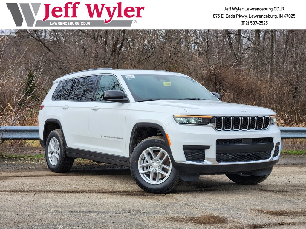 Jeff Wyler Chrysler Dodge Jeep of Lawrenceburg is pleased to offer this wonderful-looking 2025 Jeep Grand Cherokee L Laredo in Bright White Clearcoat. Well equipped with: Luxury Tech Group I (115V Auxiliary Power Outlet, 3rd Row Charge-Only USB Ports, Heated Front Seats, Heated Steering Wheel, Power Liftgate, Rain Sensitive Windshield Wipers, Remote Start System, Selectable Tire Fill Alert, and Wireless Charging Pad), Quick Order Package 23D Laredo X (Laredo X and Power Sunroof), 3.45 Rear Axle Ratio, 3rd row seats: split-bench, 4-Wheel Disc Brakes, 6 Speakers, ABS brakes, Air Conditioning, Alloy wheels, AM/FM radio: SiriusXM, Anti-whiplash front head restraints, Automatic temperature control, Brake assist, Bumpers: body-color, Cloth Seats, Compass, Delay-off headlights, Driver door bin, Driver vanity mirror, Dual front impact airbags, Dual front side impact airbags, Electronic Stability Control, Emergency communication system, Four wheel independent suspension, Front anti-roll bar, Front Bucket Seats, Front Center Armrest w/Storage, Front dual zone A/C, Front reading lights, Fully automatic headlights, Heated door mirrors, Illuminated entry, Knee airbag, Low tire pressure warning, Manual Fold Seatbacks, Model Year Tracking, Normal Duty Suspension, Occupant sensing airbag, Outside temperature display, Overhead airbag, Overhead console, Panic alarm, ParkView Rear Back-Up Camera, Passenger door bin, Passenger vanity mirror, Power door mirrors, Power driver seat, Power steering, Power windows, Radio data system, Radio: Uconnect 5 with 8.4" Display, Rear air conditioning, Rear anti-roll bar, Rear reading lights, Rear window defroster, Rear window wiper, Reclining 3rd row seat, Remote keyless entry, Security system, Speed control, Speed-Sensitive Wipers, Split folding rear seat, Spoiler, Steering wheel mounted audio controls, Tachometer, Telescoping steering wheel, Tilt steering wheel, Traction control, Trip computer, Variably intermittent wipers, Voltmeter, and Wheels: 18" x 8.0" Fully Painted Aluminum.Wyler Family First Package Includes: NanoCure Appearance Protection: Exterior & Interior Chemical Sealant Applied to Protect Against Environmental Hazards (7 Year Warranty Coverage). Pulse- Rear end Collision Avoidance System Theft Deterrent Strategy gives you 5 Years of Coverage against vehicle Theft, Offering up to a $5,000 benefit. Used vehicles 10 years of age or newer with less than 100,000 miles are eligible for the Wyler Assurance Program, but eligible vehicles must pass our reconditioning process and multi-point inspection. Provided the vehicle passes inspection, vehicles will be eligible for the 6 month/6,000 mile limited warranty. The 6 month/6,000 mile limited warranty is NOT available on AS-IS vehicles, wholesale vehicles, lease buyback/pass-thru vehicles or un-inspected vehicles. Note that this program can also apply to vehicles where the remaining factory coverage is less than 6 months or 6,000 miles. Please check the Federal Trade Commission (FTC) Buyers guide on the vehicle for full details as to whether or not warranty coverage may apply. Contact Dealer for additional details.The Wyler Assurance 6 month/6,000 Mile limited warranty ends 6 months from the date of the Retail Purchase Agreement (BUYERS ORDER) or when the vehicle's odometer registers 6,000 additional miles to the mileage listed on the BUYERS ORDER, whichever comes first. Your Deductible - The warranty holder on your contract pays the first $100 of each covered repair. Price includes: $2500 - 2025 National Retail Bonus Cash . Exp. 02/02/2026 $750 - 2025 Midwest BC Retail Bonus Cash. Exp. 01/20/2026