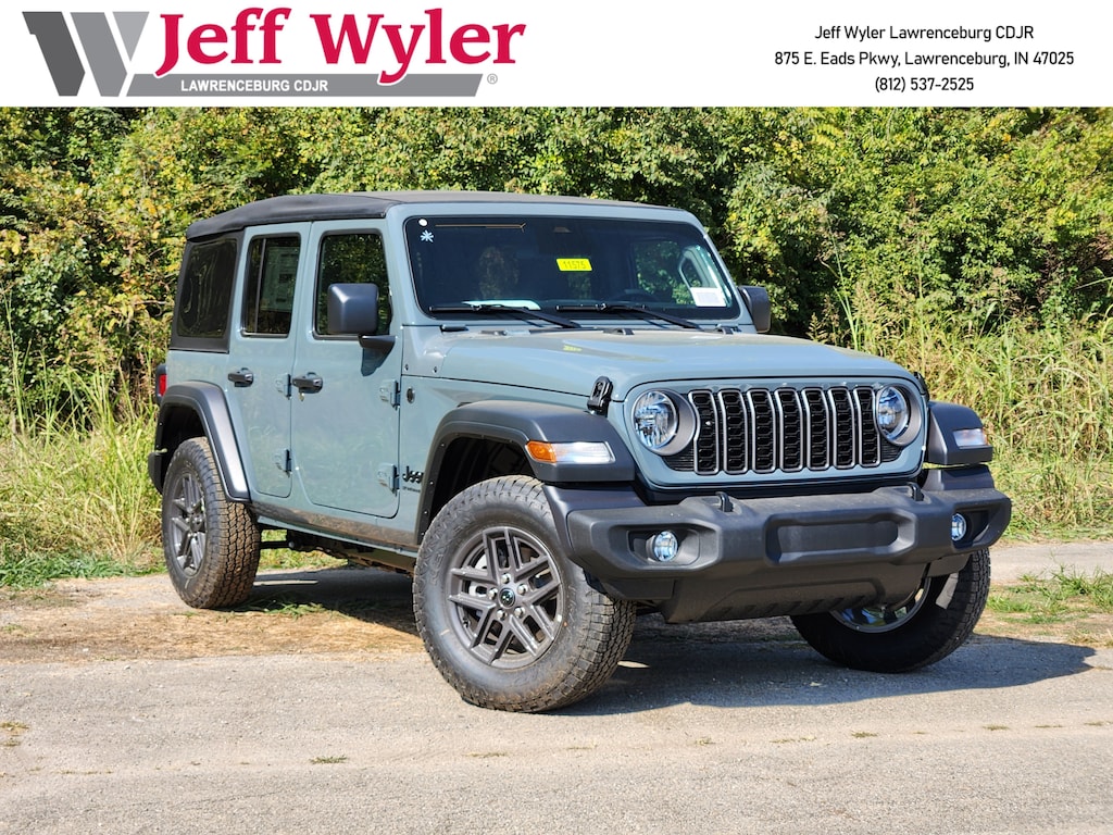 Jeff Wyler Chrysler Dodge Jeep of Lawrenceburg is proud to offer this good-looking and fun 2025 Jeep Wrangler Sport S in Anvil Clear Coat. Well equipped with: Convenience Group (2-Door Passive Entry, Front Door Locks, Air Conditioning w/Auto Temperature Control, Air Filtering, Cluster 7.0" TFT Color Display, Emergency/Assistance Call, Heated Front Seats, Heated Steering Wheel, Remote Start System, and Universal Garage Door Opener), Quick Order Package 22S Sport S (Advanced Brake Assist, Automatic Headlamps, Corning Gorilla Glass, Deep Tint Sunscreen Windows, Enhanced Adaptive Cruise Control, Full Speed Forward Collision Warning Plus, Power Heated Mirrors, Premium Wrapped Steering Wheel, Security Alarm, Sun Visors w/Illuminated Vanity Mirrors, and Wheels: 17" x 7.5" Gray), 110 MPH Vehicle Max Speed Calibration, 3.45 Overall Top Gear Ratio, 4-Wheel Disc Brakes, 8 Speakers, ABS brakes, Air Conditioning, AM/FM radio: SiriusXM, Apple CarPlay/Android Auto, Aux Battery, Brake assist, Cloth Low-Back Bucket Seats, Compass, Delay-off headlights, Driver door bin, Driver vanity mirror, Dual front impact airbags, Dual front side impact airbags, Electronic Stability Control, Front anti-roll bar, Front Bucket Seats, Front Center Armrest w/Storage, Front fog lights, Front reading lights, Illuminated entry, Integrated roll-over protection, Low tire pressure warning, MOPAR All-Weather Floor Mats, Non-Lock Fuel Cap w/o Discriminator, Normal Duty Suspension, Occupant sensing airbag, Outside temperature display, Overhead airbag, Panic alarm, ParkView Rear Back-Up Camera, Passenger door bin, Passenger vanity mirror, Power steering, Power windows, Radio data system, Radio: Uconnect 5 w/12.3" Display, Rear anti-roll bar, Rear reading lights, Remote keyless entry, Speed control, Split folding rear seat, Steering wheel mounted audio controls, Stop-Start Dual Battery System, Tachometer, Telescoping steering wheel, Tilt steering wheel, Traction control, Trip computer, Variably intermittent wipers, and Wheels: 17" x 7.5" Black Steel Styled.Wyler Family First Package Includes: NanoCure Appearance Protection: Exterior & Interior Chemical Sealant Applied to Protect Against Environmental Hazards (7 Year Warranty Coverage). Pulse- Rear end Collision Avoidance System Theft Deterrent Strategy gives you 5 Years of Coverage against vehicle Theft, Offering up to a $5,000 benefit. Used vehicles 10 years of age or newer with less than 100,000 miles are eligible for the Wyler Assurance Program, but eligible vehicles must pass our reconditioning process and multi-point inspection. Provided the vehicle passes inspection, vehicles will be eligible for the 6 month/6,000 mile limited warranty. The 6 month/6,000 mile limited warranty is NOT available on AS-IS vehicles, wholesale vehicles, lease buyback/pass-thru vehicles or un-inspected vehicles. Note that this program can also apply to vehicles where the remaining factory coverage is less than 6 months or 6,000 miles. Please check the Federal Trade Commission (FTC) Buyers guide on the vehicle for full details as to whether or not warranty coverage may apply. Contact Dealer for additional details.The Wyler Assurance 6 month/6,000 Mile limited warranty ends 6 months from the date of the Retail Purchase Agreement (BUYERS ORDER) or when the vehicle's odometer registers 6,000 additional miles to the mileage listed on the BUYERS ORDER, whichever comes first. Your Deductible - The warranty holder on your contract pays the first $100 of each covered repair. Price includes: $2500 - 2025 National Retail Bonus Cash . Exp. 11/03/2025