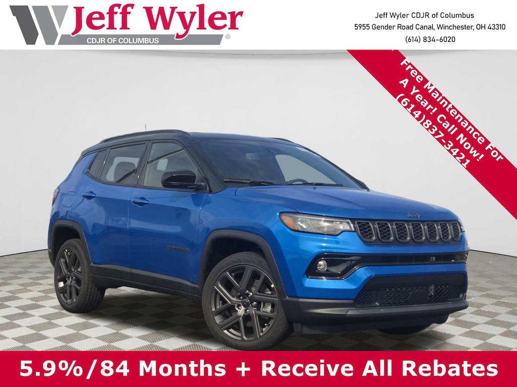 Experience the All-New 2026 Jeep Compass Limited in Stunning Hydro Blue Pearlcoat!This premium SUV combines rugged capability with refined luxury. The turbocharged 2.0L engine delivers 200HP while maintaining impressive 23/31 MPG efficiency. Full-time 4WD ensures confident handling in any condition. Advanced Safety Technology: Features Blind Spot Detection, Full Speed Forward Collision Warning Plus, Pedestrian/Cyclist Emergency Braking, and Active Lane Management for ultimate peace of mind. Luxury Comfort Features: Heated leather-appointed seats, heated steering wheel, 8-way power driver seat, and dual-zone climate control create a first-class experience. The 10.1" touchscreen with wireless connectivity keeps you connected.Smart Convenience: Power liftgate, remote start, adaptive cruise control, and hands-free smart key access make every drive effortless. Exceptional Value: Take advantage of $2,000 in manufacturer incentives plus our exclusive Wyler Family First Package including 7-year appearance protection and theft coverage up to $5,000. Why Choose Jeff Wyler Columbus? Over 45 years of trusted service, competitive pricing, and Ohio's highest online consumer ratings. We're your premier Chrysler, Dodge, Jeep, RAM destination in Central Ohio. Price does not include Tax, Title, License and Documentary Fee$1000 - 2026 National Retail Bonus Cash . Exp. 03/31/2026 $500 - 2026 Great Lakes BC Bonus Cash . Exp. 03/31/2026 $500 - 2026 National 2026 Military Bonus Cash . Exp. 01/04/2027 $595 - 2026 National Select Inventory Bonus Cash. Exp. 01/04/2027