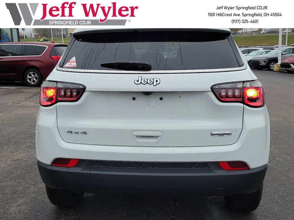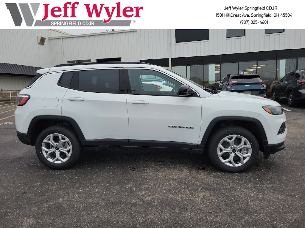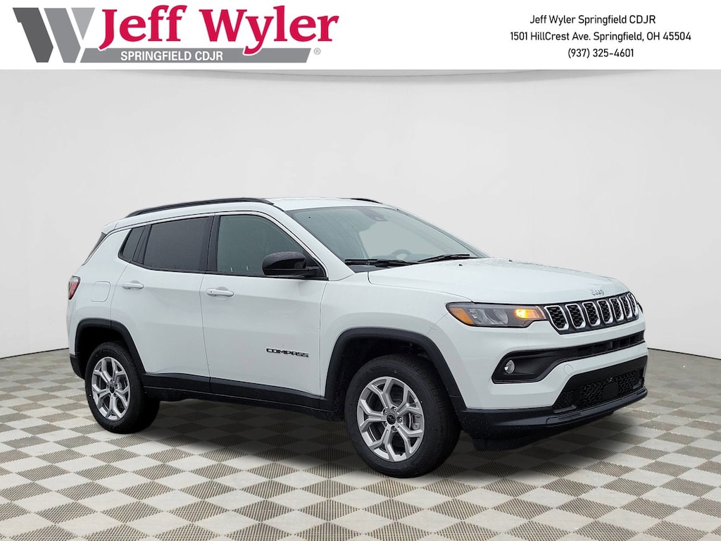 Priced below KBB Fair Purchase Price! Jeff Wyler Springfield Auto Mall is pleased to offer this wonderful-looking 2026 Jeep Compass Latitude in Bright White Clearcoat. Well equipped with: Quick Order Package 29J Latitude, 17" x 7" Aluminum Wheels, 3.73 Final Drive Ratio, 4-Wheel Disc Brakes, 4G LTE Wi-Fi Hot Spot, 6 Speakers, ABS brakes, Air Conditioning, AM/FM radio: SiriusXM, Auto High-beam Headlights, Automatic temperature control, Bluetooth Handsfree Phone and Audio, Brake assist, Bumpers: body-color, Compass, Delay-off headlights, Driver door bin, Driver vanity mirror, Dual front impact airbags, Dual front side impact airbags, Electronic Stability Control, Emergency communication system: SiriusXM Guardian, Four wheel independent suspension, Front anti-roll bar, Front Bucket Seats, Front Center Armrest w/Storage, Front fog lights, Front License Plate Bracket, Front reading lights, Fully automatic headlights, Global Telematics Box Module, Heated door mirrors, Heated front seats, Heated steering wheel, Illuminated entry, Knee airbag, Leather Shift Knob, Leather steering wheel, Low tire pressure warning, Occupant sensing airbag, Outside temperature display, Overhead airbag, Overhead console, Panic alarm, ParkView Rear Back-Up Camera, Passenger door bin, Passenger vanity mirror, Power door mirrors, Power steering, Power windows, Premium audio system: UConnect 5, Premium Cloth/Vinyl Bucket Seats, Radio: Uconnect 5 with 8.4" Display, Rear anti-roll bar, Rear seat center armrest, Rear window defroster, Rear window wiper, Remote keyless entry, Security system, SiriusXM Satellite Radio, Speed control, Split folding rear seat, Spoiler, Steering wheel mounted audio controls, Tachometer, Telescoping steering wheel, Tilt steering wheel, Traction control, Trip computer, and Variably intermittent wipers. 23/31 City/Highway MPG 23/31 City/Highway MPGWyler Family First Package Includes: NanoCure Appearance Protection: Exterior & Interior Chemical Sealant Applied to Protect Against Environmental Hazards (7 Year Warranty Coverage). Pulse- Rear end Collision Avoidance System Theft Deterrent Strategy gives you 5 Years of Coverage against vehicle Theft, Offering up to a $5,000 benefit. Available Incentives: $1000 - 2026 National Retail Bonus Cash . Exp. 01/05/2026