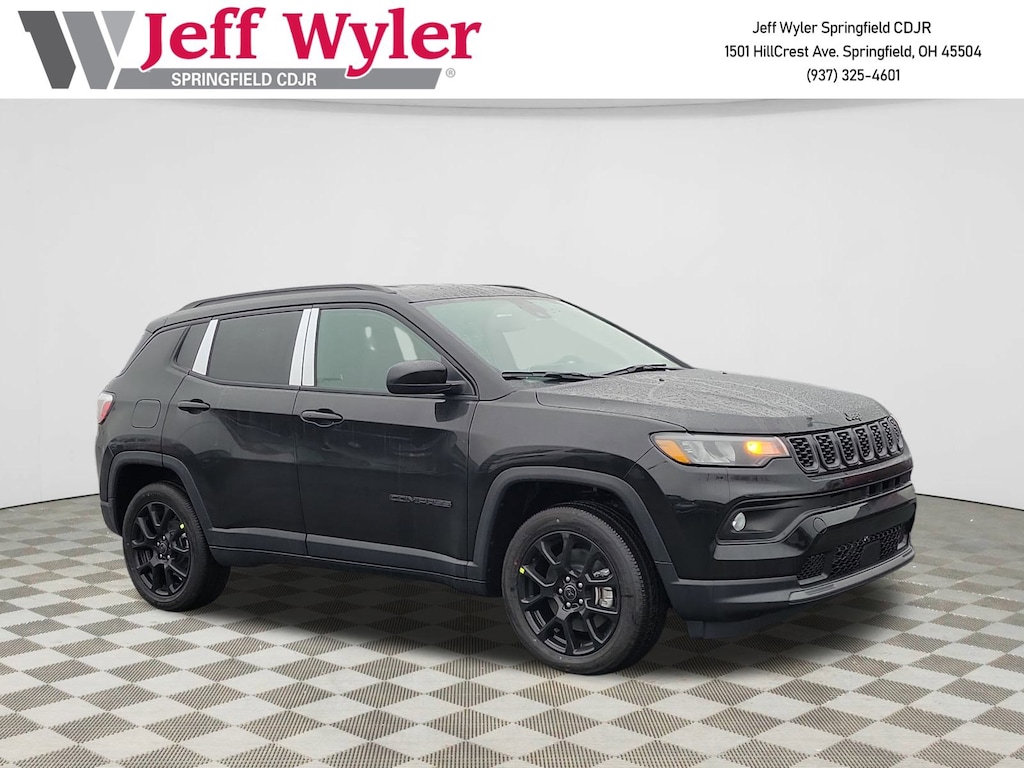 Priced below KBB Fair Purchase Price! Jeff Wyler Springfield Auto Mall is very proud to offer this handsome 2026 Jeep Compass Latitude in diamond black crystal pearlcoat. Well equipped with: Quick Order Package 29N Altitude (10.1" Touchscreen Display, Altitude Special Edition, Black Day Light Opening Moldings, Gloss Black Surround/Neutral Gray Rings, Neutral Gray Exterior Badging, Piano Black Interior Accents, Sliding Sun Visors with Illuminated Mirrors, and Wheels: 18" x 7" Gloss Black Painted Aluminum), 17" x 7" Aluminum Wheels, 3.73 Final Drive Ratio, 4-Wheel Disc Brakes, 4G LTE Wi-Fi Hot Spot, 6 Speakers, ABS brakes, Air Conditioning, AM/FM radio: SiriusXM, Auto High-beam Headlights, Automatic temperature control, Bluetooth Handsfree Phone and Audio, Brake assist, Bumpers: body-color, Compass, Delay-off headlights, Driver door bin, Driver vanity mirror, Dual front impact airbags, Dual front side impact airbags, Electronic Stability Control, Emergency communication system: SiriusXM Guardian, Four wheel independent suspension, Front anti-roll bar, Front Bucket Seats, Front Center Armrest w/Storage, Front fog lights, Front License Plate Bracket, Front reading lights, Fully automatic headlights, Global Telematics Box Module, Heated door mirrors, Heated front seats, Heated steering wheel, Illuminated entry, Knee airbag, Leather Shift Knob, Leather steering wheel, Low tire pressure warning, Occupant sensing airbag, Outside temperature display, Overhead airbag, Overhead console, Panic alarm, ParkView Rear Back-Up Camera, Passenger door bin, Passenger vanity mirror, Power door mirrors, Power steering, Power windows, Premium audio system: UConnect 5, Premium Cloth/Vinyl Bucket Seats, Radio: Uconnect 5 with 8.4" Display, Rear anti-roll bar, Rear seat center armrest, Rear window defroster, Rear window wiper, Remote keyless entry, Security system, SiriusXM Satellite Radio, Speed control, Split folding rear seat, Spoiler, Steering wheel mounted audio controls, Tachometer, Telescoping steering wheel, Tilt steering wheel, Traction control, Trip computer, and Variably intermittent wipers. 23/31 City/Highway MPG 23/31 City/Highway MPGWyler Family First Package Includes: NanoCure Appearance Protection: Exterior & Interior Chemical Sealant Applied to Protect Against Environmental Hazards (7 Year Warranty Coverage). Pulse- Rear end Collision Avoidance System Theft Deterrent Strategy gives you 5 Years of Coverage against vehicle Theft, Offering up to a $5,000 benefit. Available Incentives: $1000 - 2026 National Retail Bonus Cash . Exp. 02/02/2026 $1500 - 2026 National Stellantis Loyalty Retail Bonus Cash . Exp. 02/02/2026 $500 - 2026 National 2026 Military Bonus Cash . Exp. 01/04/2027