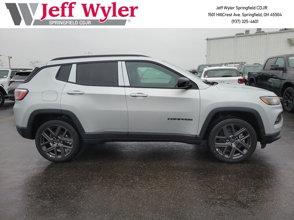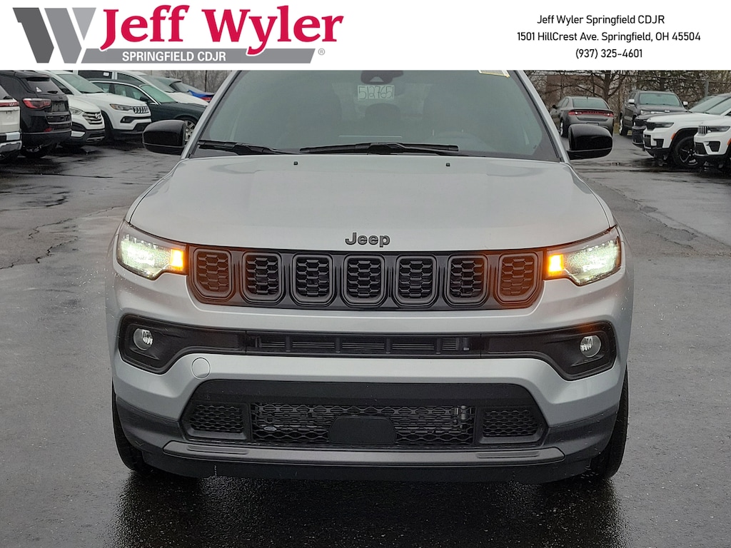 Jeff Wyler Springfield Auto Mall is proud to offer this wonderful 2026 Jeep Compass Latitude in silver zynith metallic clearcoat. Well equipped with: Quick Order Package 29N Altitude (10.1" Touchscreen Display, Altitude Special Edition, Black Day Light Opening Moldings, Gloss Black Surround/Neutral Gray Rings, Neutral Gray Exterior Badging, Piano Black Interior Accents, Sliding Sun Visors with Illuminated Mirrors, and Wheels: 18" x 7" Gloss Black Painted Aluminum), 17" x 7" Aluminum Wheels, 2nd Row USB Type A/C Charge Only, 3.73 Final Drive Ratio, 4-Wheel Disc Brakes, 4G LTE Wi-Fi Hot Spot, 6 Speakers, ABS brakes, Air Conditioning, Air Conditioning ATC with Dual Zone Control, All-Season Floor Mats, AM/FM radio: SiriusXM, Auto High-beam Headlights, Auto-Dimming Rear-View Mirror, Automatic temperature control, Bluetooth Handsfree Phone and Audio, Brake assist, Bumpers: body-color, Compass, Convenience Group, Delay-off headlights, Driver door bin, Driver vanity mirror, Dual front impact airbags, Dual front side impact airbags, Electronic Stability Control, Emergency communication system: SiriusXM Guardian, Foot Activated Open 'n Go Liftgate, Four wheel independent suspension, Front anti-roll bar, Front Bucket Seats, Front Center Armrest w/Storage, Front fog lights, Front License Plate Bracket, Front reading lights, Fully automatic headlights, Global Telematics Box Module, Heated door mirrors, Heated front seats, Heated steering wheel, Humidity Sensor, Illuminated entry, Knee airbag, Leather Shift Knob, Leather steering wheel, Low tire pressure warning, Occupant sensing airbag, Outside temperature display, Overhead airbag, Overhead console, Panic alarm, ParkView Rear Back-Up Camera, Passenger door bin, Passenger vanity mirror, Power 2-Way Driver Lumbar Adjust, Power Adjust 8-Way Driver Seat, Power door mirrors, Power Liftgate, Power steering, Power windows, Premium audio system: UConnect 5, Premium Cloth/Vinyl Bucket Seats, Radio: Uconnect 5 with 8.4" Display, Rear anti-roll bar, Rear seat center armrest, Rear window defroster, Rear window wiper, Remote keyless entry, Security system, SiriusXM Satellite Radio, Speed control, Split folding rear seat, Spoiler, Steering wheel mounted audio controls, Tachometer, Telescoping steering wheel, Tilt steering wheel, Traction control, Trip computer, Variably intermittent wipers, Wheels: 19" x 7.5" Aluminum Painted, and Windshield Wiper De-Icer. 23/31 City/Highway MPG 23/31 City/Highway MPGWyler Family First Package Includes: NanoCure Appearance Protection: Exterior & Interior Chemical Sealant Applied to Protect Against Environmental Hazards (7 Year Warranty Coverage). Pulse- Rear end Collision Avoidance System Theft Deterrent Strategy gives you 5 Years of Coverage against vehicle Theft, Offering up to a $5,000 benefit. Available Incentives: $1000 - 2026 National Retail Bonus Cash . Exp. 02/02/2026 $1500 - 2026 National Stellantis Loyalty Retail Bonus Cash . Exp. 02/02/2026