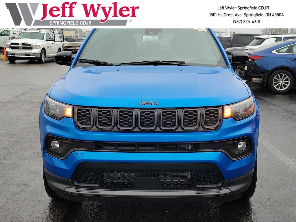 Jeff Wyler Springfield Auto Mall is excited to offer this fantastic 2026 Jeep Compass Latitude in hydro blue pearlcoat. Well equipped with: Quick Order Package 29N Altitude (10.1" Touchscreen Display, Altitude Special Edition, Black Day Light Opening Moldings, Gloss Black Surround/Neutral Gray Rings, Neutral Gray Exterior Badging, Piano Black Interior Accents, Sliding Sun Visors with Illuminated Mirrors, and Wheels: 18" x 7" Gloss Black Painted Aluminum), 17" x 7" Aluminum Wheels, 2nd Row USB Type A/C Charge Only, 3.73 Final Drive Ratio, 4-Wheel Disc Brakes, 4G LTE Wi-Fi Hot Spot, 6 Speakers, ABS brakes, Air Conditioning, Air Conditioning ATC with Dual Zone Control, All-Season Floor Mats, AM/FM radio: SiriusXM, Auto High-beam Headlights, Auto-Dimming Rear-View Mirror, Automatic temperature control, Bluetooth Handsfree Phone and Audio, Brake assist, Bumpers: body-color, Compass, Convenience Group, Delay-off headlights, Driver door bin, Driver vanity mirror, Dual front impact airbags, Dual front side impact airbags, Electronic Stability Control, Emergency communication system: SiriusXM Guardian, Foot Activated Open 'n Go Liftgate, Four wheel independent suspension, Front anti-roll bar, Front Bucket Seats, Front Center Armrest w/Storage, Front fog lights, Front License Plate Bracket, Front reading lights, Fully automatic headlights, Global Telematics Box Module, Heated door mirrors, Heated front seats, Heated steering wheel, Humidity Sensor, Illuminated entry, Knee airbag, Leather Shift Knob, Leather steering wheel, Low tire pressure warning, Occupant sensing airbag, Outside temperature display, Overhead airbag, Overhead console, Panic alarm, ParkView Rear Back-Up Camera, Passenger door bin, Passenger vanity mirror, Power 2-Way Driver Lumbar Adjust, Power Adjust 8-Way Driver Seat, Power door mirrors, Power Liftgate, Power steering, Power windows, Premium audio system: UConnect 5, Premium Cloth/Vinyl Bucket Seats, Radio: Uconnect 5 with 8.4" Display, Rear anti-roll bar, Rear seat center armrest, Rear window defroster, Rear window wiper, Remote keyless entry, Security system, SiriusXM Satellite Radio, Speed control, Split folding rear seat, Spoiler, Steering wheel mounted audio controls, Tachometer, Telescoping steering wheel, Tilt steering wheel, Traction control, Trip computer, Variably intermittent wipers, Wheels: 19" x 7.5" Aluminum Painted, and Windshield Wiper De-Icer. 23/31 City/Highway MPG 23/31 City/Highway MPGWyler Family First Package Includes: NanoCure Appearance Protection: Exterior & Interior Chemical Sealant Applied to Protect Against Environmental Hazards (7 Year Warranty Coverage). Pulse- Rear end Collision Avoidance System Theft Deterrent Strategy gives you 5 Years of Coverage against vehicle Theft, Offering up to a $5,000 benefit. Available Incentives: $1000 - 2026 National Retail Bonus Cash . Exp. 02/02/2026 $1500 - 2026 National Stellantis Loyalty Retail Bonus Cash . Exp. 02/02/2026 $500 - 2026 National 2026 Military Bonus Cash . Exp. 01/04/2027
