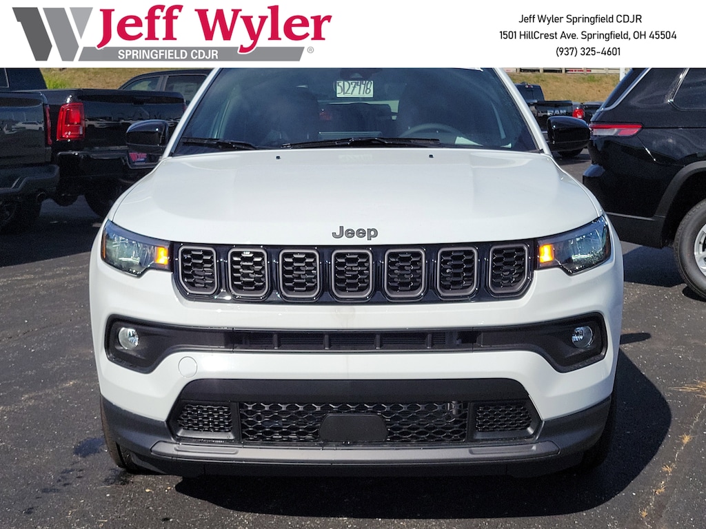 Jeff Wyler Springfield Auto Mall is pumped up to offer this charming 2026 Jeep Compass Latitude in Bright White Clearcoat. Well equipped with: 17" x 7" Aluminum Wheels, 3.73 Final Drive Ratio, 4-Wheel Disc Brakes, 6 Speakers, ABS brakes, Air Conditioning, Alloy wheels, AM/FM radio: SiriusXM with 360L, Anti-whiplash front head restraints, Apple CarPlay/Android Auto, Auto High-beam Headlights, Automatic temperature control, Brake assist, Bumpers: body-colour, Compass, Delay-off headlights, Driver door bin, Driver vanity mirror, Dual front impact airbags, Dual front side impact airbags, Electronic Stability Control, Emergency communication system: SiriusXM Guardian, Four wheel independent suspension, Front anti-roll bar, Front Bucket Seats, Front fog lights, Front reading lights, Fully automatic headlights, Heated door mirrors, Heated front seats, Heated steering wheel, Illuminated entry, Knee airbag, Leather Shift Knob, Leather steering wheel, Low tire pressure warning, Occupant sensing airbag, Outside temperature display, Overhead airbag, Overhead console, Panic alarm, ParkView Rear Back-Up Camera, Passenger door bin, Passenger vanity mirror, Power door mirrors, Power steering, Power windows, Premium audio system: UConnect 5, Premium Cloth/Vinyl Bucket Seats, Radio: Uconnect 5 w/8.4" Display, Rear anti-roll bar, Rear window defroster, Rear window wiper, Remote keyless entry, Security system, Speed control, Split folding rear seat, Spoiler, Steering wheel mounted audio controls, Tachometer, Telescoping steering wheel, Tilt steering wheel, Traction control, Variably intermittent wipers, and Wheels: 18" x 7" Gloss Black Painted Aluminum. 24/32 City/Highway MPG 24/32 City/Highway MPGWyler Family First Package Includes: NanoCure Appearance Protection: Exterior & Interior Chemical Sealant Applied to Protect Against Environmental Hazards (7 Year Warranty Coverage). Pulse- Rear end Collision Avoidance System Theft Deterrent Strategy gives you 5 Years of Coverage against vehicle Theft, Offering up to a $5,000 benefit.