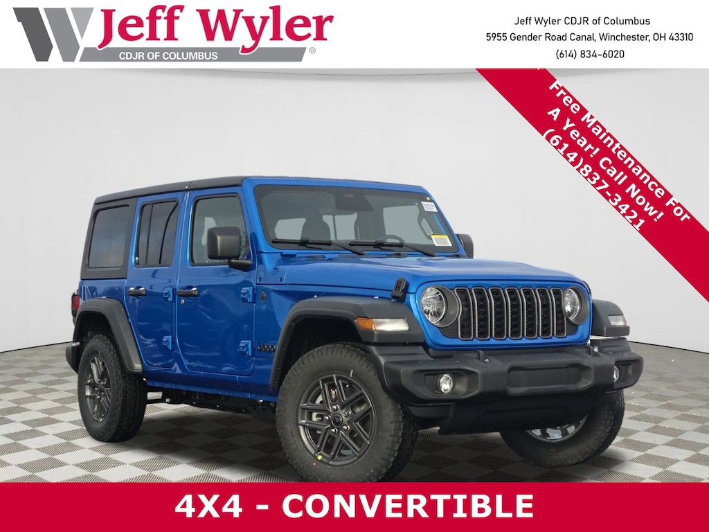 Jeff Wyler Columbus Auto Mall is proud to offer this stunning-looking and fun 2026 Jeep Wrangler Sport S in Hydro Blue Pearl Coat. Well equipped with: Quick Order Package 24S Sport S (Advanced Brake Assist, Automatic Headlamps, Corning Gorilla Glass, Deep Tint Sunscreen Windows, Enhanced Adaptive Cruise Control, Full Speed Forward Collision Warning Plus, Power Heated Mirrors, Premium Wrapped Steering Wheel, Security Alarm, Sun Visors with Illuminated Vanity Mirrors, and Wheels: 17" x 7.5" Gray), 12.3" Touchscreen Display, 3.45 Overall Top Gear Ratio, 4-Wheel Disc Brakes, 4G LTE Wi-Fi Hot Spot, 8 Speakers, ABS brakes, Air Conditioning, AM/FM radio: SiriusXM with 360L, Apple CarPlay, Apple CarPlay/Android Auto, Aux Battery, Black 3-Piece Hard Top, Brake assist, Cloth Low-Back Bucket Seats, Compass, Connectivity - US/Canada, Delay-off headlights, Driver door bin, Driver vanity mirror, Dual front impact airbags, Dual front side impact airbags, Electronic Stability Control, For More Info, Call 800-643-2112, Freedom Panel Storage Bag, Front anti-roll bar, Front Bucket Seats, Front Center Armrest w/Storage, Front fog lights, Front reading lights, Google Android Auto, Illuminated entry, Integrated Center Stack Radio, Integrated roll-over protection, Jeep Trail Rated Kit, Low tire pressure warning, MOPAR All-Weather Floor Mats, Myflexcare Service Plan, Non-Lock Fuel Cap Without Discriminator, Normal Duty Suspension, Occupant sensing airbag, Outside temperature display, Overhead airbag, Panic alarm, ParkView Rear Back-Up Camera, Passenger door bin, Passenger vanity mirror, Power steering, Power windows, Radio data system, Radio: Uconnect 5 with 12.3" Display, Rear anti-roll bar, Rear reading lights, Rear Window Defroster, Rear Window Wiper/Washer, Remote keyless entry, SiriusXM Radio Service, SiriusXM with 360L, Speed control, Split folding rear seat, Steering wheel mounted audio controls, Stop-Start Dual Battery System, Tachometer, Telescoping steering wheel, Tilt steering wheel, Traction control, Trip computer, Variably intermittent wipers, and Wheels: 17" x 7.5" Black Steel Styled.Wyler Family First Package Includes: NanoCure Appearance Protection: Exterior & Interior Chemical Sealant Applied to Protect Against Environmental Hazards (7 Year Warranty Coverage). Pulse- Rear End Collision Avoidance System Theft Deterrent Strategy gives you 5 Years of Coverage against vehicle theft, Offering up to a $5,000 benefit. Price does not include Tax, Title, License and Documentary Fee$1500 - 2026 National Stellantis Loyalty Retail Bonus Cash . Exp. 01/05/2026 $500 - 2026 National 2026 Military Bonus Cash . Exp. 01/05/2026