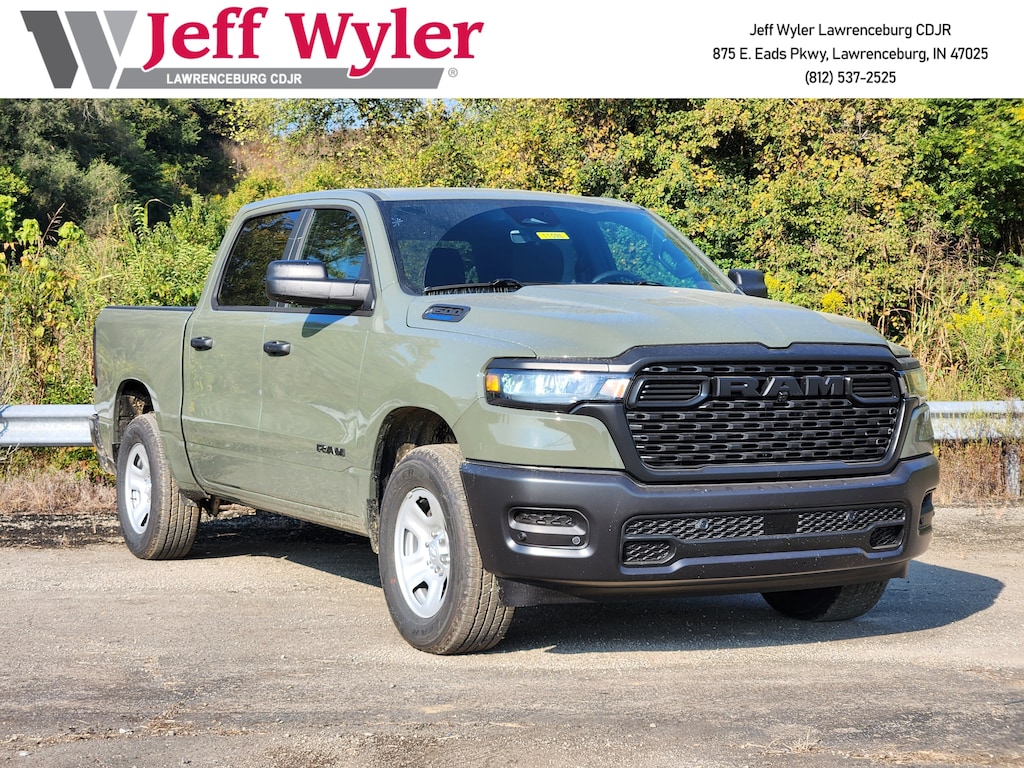 Jeff Wyler Chrysler Dodge Jeep of Lawrenceburg is very proud to offer this fantastic 2025 Ram 1500 Tradesman in Pj7 Canyon Lake. Well equipped with: Quick Order Package 23A Tradesman, Tradesman Level 1 Equipment Group (2nd Row In Floor Storage Bins, 3 Rear Seat Head Restraints, 4 Way Front Headrests, 40/20/40 Split Bench Seat, Cloth Bench Seat, Front & Rear Floor Mats, Front Center Seat Cushion Storage, Front Seat Back Map Pockets, Manual Adjust 4-Way Driver Seat, Manual Adjust 4-Way Front Passenger Seat, Rear 60/40 Folding Seat, Rear Power Sliding Window, Seat Parts Module II, and SiriusXM Satellite Radio), 3.21 Rear Axle Ratio, 4-Wheel Disc Brakes, 6 Speakers, ABS brakes, Air Conditioning, AM/FM radio, Apple CarPlay/Android Auto, Auto High-beam Headlights, Black Exterior Mirrors, Brake assist, Compass, Delay-off headlights, Driver door bin, Dual front impact airbags, Dual front side impact airbags, Electronic Stability Control, Exterior Mirrors w/Heating Element, Front anti-roll bar, Front Center Armrest, Front reading lights, Front wheel independent suspension, Fully automatic headlights, Heated door mirrors, Heavy Duty Vinyl 40/20/40 Split Bench Seat, Illuminated entry, Low tire pressure warning, Manual Folding Exterior Mirrors, Occupant sensing airbag, Outside temperature display, Overhead airbag, Overhead console, Panic alarm, ParkView Rear Back-Up Camera, Passenger door bin, Passenger vanity mirror, Power door mirrors, Power steering, Power windows, Radio data system, Radio: Uconnect 5 W w/8.4" Display, RAM Grille Badge - Black, Rear anti-roll bar, Rear step bumper, Remote keyless entry, Speed control, Tachometer, Telescoping steering wheel, Tilt steering wheel, Traction control, Variably intermittent wipers, Voltmeter, and Wheels: 18" x 7.5" Steel Painted.Awards: * Motor Trend Automobiles of the yearWyler Family First Package Includes: NanoCure Appearance Protection: Exterior & Interior Chemical Sealant Applied to Protect Against Environmental Hazards (7 Year Warranty Coverage). Pulse- Rear end Collision Avoidance System Theft Deterrent Strategy gives you 5 Years of Coverage against vehicle Theft, Offering up to a $5,000 benefit. Used vehicles 10 years of age or newer with less than 100,000 miles are eligible for the Wyler Assurance Program, but eligible vehicles must pass our reconditioning process and multi-point inspection. Provided the vehicle passes inspection, vehicles will be eligible for the 6 month/6,000 mile limited warranty. The 6 month/6,000 mile limited warranty is NOT available on AS-IS vehicles, wholesale vehicles, lease buyback/pass-thru vehicles or un-inspected vehicles. Note that this program can also apply to vehicles where the remaining factory coverage is less than 6 months or 6,000 miles. Please check the Federal Trade Commission (FTC) Buyers guide on the vehicle for full details as to whether or not warranty coverage may apply. Contact Dealer for additional details.The Wyler Assurance 6 month/6,000 Mile limited warranty ends 6 months from the date of the Retail Purchase Agreement (BUYERS ORDER) or when the vehicle's odometer registers 6,000 additional miles to the mileage listed on the BUYERS ORDER, whichever comes first. Your Deductible - The warranty holder on your contract pays the first $100 of each covered repair. Price includes: 10% Msrp - 2025 National 10% Below MSRP . Exp. 11/03/2025