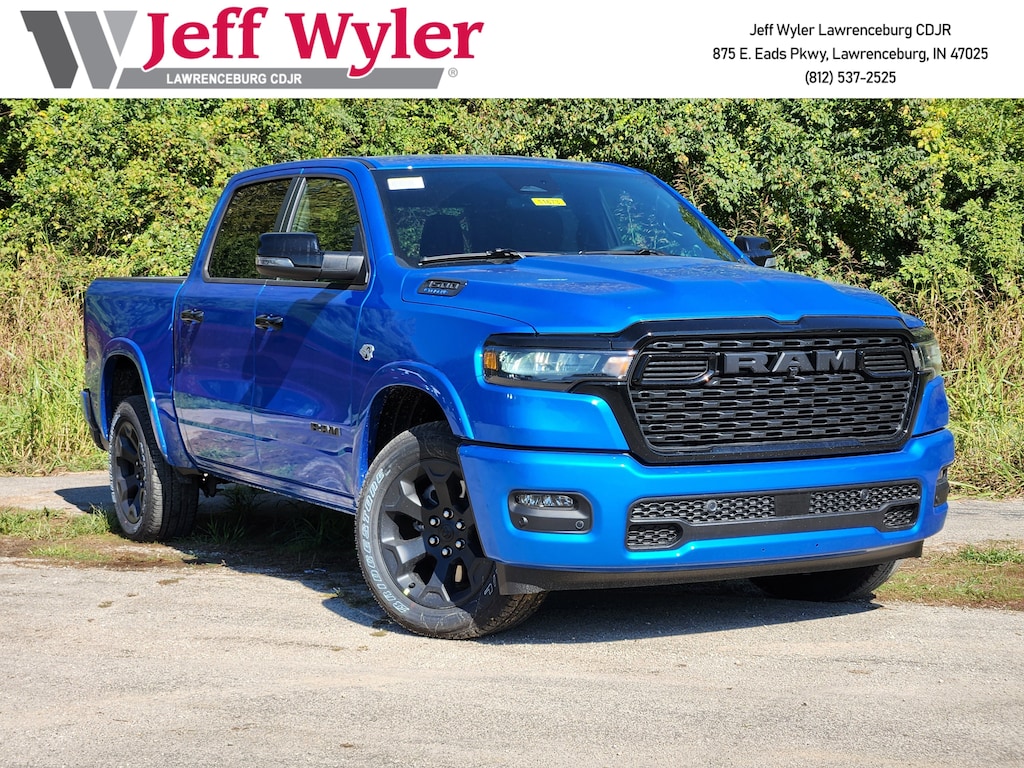 Jeff Wyler Chrysler Dodge Jeep of Lawrenceburg is pleased to offer this attractive 2026 Ram 1500 Big Horn/Lone Star in Hydro Blue Pearlcoat. Well equipped with: Big Horn Level 2 Equipment Group (115V Auxiliary Power Outlet, 115V Auxiliary Rear Power Outlet, 12" Touchscreen Display, 2nd Row In Floor Storage Bins, 3 Rear Seat Head Restraints, 4 Way Front Headrests, 400W Inverter, 4G LTE Wi-Fi Hot Spot, 9 Amplified Speakers w/Subwoofer, Air Conditioning ATC w/Dual Zone Control, Apple CarPlay, Auto Power-Folding Mirrors, Auto-Dimming Exterior Driver Mirror, Auto-Dimming Rear-View Mirror, Black Exterior Mirrors, Black Premium Power Mirrors, Body Color Fender Flares, Bucket Seats, Center Console Parts Module, Cluster 7.0" TFT Color Display, Configurable Drive Mode, Connected Travel & Traffic Services, Connectivity - US/Canada, Convex Wide-Angle Exterior Mirror Insert, Deluxe Cloth Bucket Seats, Disassociated Touchscreen Display, Exterior Mirrors Courtesy Lamps, Exterior Mirrors w/Heating Element, Exterior Mirrors w/Supplemental Signals, Front Seat Back Map Pockets, Full Length Floor Console, Global Telematics Box Module (TBM), Glove Box Lamp, Google Android Auto, GPS Antenna Input, GPS Navigation, HD Radio, Heated Front Seats, Heated Steering Wheel, Integrated Center Stack Radio, Integrated Voice Command w/Bluetooth, Leather Wrapped Steering Wheel, LED Dome Lamp w/On/Off Switch, LED Footwell Lighting, Manual Adjust 4-Way Front Passenger Seat, Media Hub w/2 Charge Only USBs, Overhead LED Lamps, Power 2-Way Driver Lumbar Adjust, Power Adjust 8-Way Driver Seat, Power Adjustable Pedals, Premium Overhead Console, Radio: Uconnect 5 Nav w/12.0" Display, Rear 60/40 Folding Seat, Rear Center Armrest, Rear Power Sliding Window, Rear Window Defroster, Remote Tailgate Release, Secondary Active Grille Shutters, Security Alarm, SiriusXM Radio Service, SiriusXM w/360L, Steering Wheel Mounted Audio Controls, Sun Visors w/Illuminated Vanity Mirrors, Universal Garage Door Opener, USB Host Flip, Wheels: 20" x 9" Aluminum Chrome Clad (WRK), and Wireless Charging Pad), Night Edition (Accent Color Door Handles, Accent Color Premium Power Mirrors, Accent Color Tailgate Handle, Anti-Spin Differential Rear Axle, Black Exterior Truck Badging, Black Headlamp Bezels, Black Interior Accents, Black Painted Exterior Mirrors Caps, Black Tail Lamp Bezels, Body Color Front Bumper, Body Color Rear Bumper w/Step Pads, Dual Exhaust w/Black Tips, Grille Black Surround Black Mesh, RAM Grille Badge - Black, and Wheels: 20" x 9.0" Aluminum Painted Clad), Quick Order Package 27Z Big Horn, 33 Gallon Fuel Tank, 4-Wheel Disc Brakes, 48V Belt Starter Generator, 6 Speakers, ABS brakes, Air Conditioning, Alloy wheels, AM/FM radio, Apple CarPlay/Android Auto, Auto High-beam Headlights, Brake assist, Bumpers: chrome, Cloth Bucket Seats, Compass, Delay-off headlights, Driver door bin, Dual front impact airbags, Dual front side impact airbags, Electronic Stability Control, Front anti-roll bar, Front Bucket Seats, Front Center Armrest w/Storage, Front fog lights, Front reading lights, Front wheel independent suspension, Fully automatic headlights, Heated door mirrors, Illuminated entry, Low tire pressure warning, Manual Adjust 4-Way Driver Seat, Manual Folding Exterior Mirrors, MOPAR Front & Rear Rubber Floor Mats, Occupant sensing airbag, Outside temperature display, Overhead airbag, Overhead console, Panic alarm, ParkView Rear Back-Up Camera, Passenger door bin, Passenger vanity mirror, Power door mirrors, Power steering, Power windows, Radio data system, Radio: Uconnect 5 W w/8.4" Display, RAM Grille Badge - Chrome, Rear anti-roll bar, Rear step bumper, Remote keyless entry, Speed control, Supplier Part Tracking (J-1), Tachometer, Telescoping steering wheel, Tilt steering wheel, Traction control, Trip computer, Variably intermittent wipers, Voltmeter, and Wheels: 18" x 8" Cast-Aluminum Painted.Wyler Price includes: $3500 - 2026 National Retail Consumer Cash . Exp. 11/03/2025