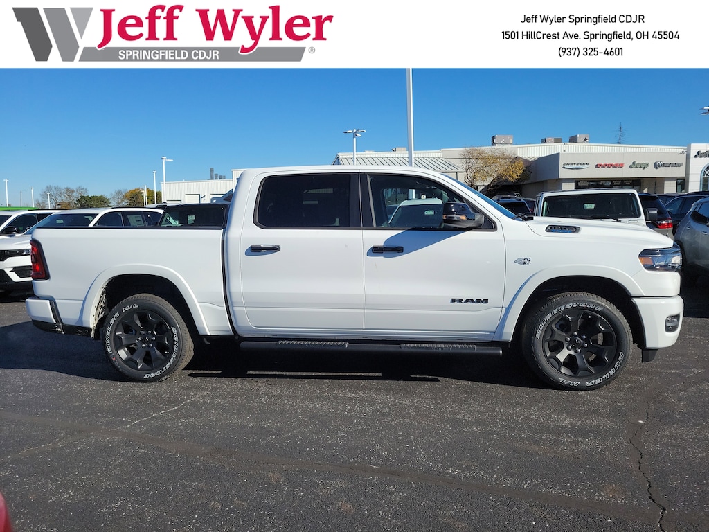 Jeff Wyler Springfield Auto Mall is pleased to offer this good-looking 2026 Ram 1500 Big Horn/Lone Star in Bright White Clearcoat. Well equipped with: Big Horn Level 2 Equipment Group (115V Auxiliary Power Outlet, 115V Auxiliary Rear Power Outlet, 12" Touchscreen Display, 2nd Row In Floor Storage Bins, 3 Rear Seat Head Restraints, 4 Way Front Headrests, 400W Inverter, 4G LTE Wi-Fi Hot Spot, 9 Amplified Speakers w/Subwoofer, Air Conditioning ATC w/Dual Zone Control, Apple CarPlay, Auto Power-Folding Mirrors, Auto-Dimming Exterior Driver Mirror, Auto-Dimming Rear-View Mirror, Black Exterior Mirrors, Black Premium Power Mirrors, Body Color Fender Flares, Bucket Seats, Center Console Parts Module, Cluster 7.0" TFT Color Display, Configurable Drive Mode, Connected Travel & Traffic Services, Connectivity - US/Canada, Convex Wide-Angle Exterior Mirror Insert, Deluxe Cloth Bucket Seats, Disassociated Touchscreen Display, Exterior Mirrors Courtesy Lamps, Exterior Mirrors w/Heating Element, Exterior Mirrors w/Supplemental Signals, Front Seat Back Map Pockets, Full Length Floor Console, Global Telematics Box Module (TBM), Glove Box Lamp, Google Android Auto, GPS Antenna Input, GPS Navigation, HD Radio, Heated Front Seats, Heated Steering Wheel, Integrated Center Stack Radio, Integrated Voice Command w/Bluetooth, Leather Wrapped Steering Wheel, LED Dome Lamp w/On/Off Switch, LED Footwell Lighting, Manual Adjust 4-Way Front Passenger Seat, Media Hub w/2 Charge Only USBs, Overhead LED Lamps, Power 2-Way Driver Lumbar Adjust, Power Adjust 8-Way Driver Seat, Power Adjustable Pedals, Premium Overhead Console, Radio: Uconnect 5 Nav w/12.0" Display, Rear 60/40 Folding Seat, Rear Center Armrest, Rear Power Sliding Window, Rear Window Defroster, Remote Tailgate Release, Security Alarm, SiriusXM Radio Service, SiriusXM w/360L, Steering Wheel Mounted Audio Controls, Sun Visors w/Illuminated Vanity Mirrors, Universal Garage Door Opener, USB Host Flip, and Wheels: 20" x 9" Aluminum Chrome Clad (WRK)), Night Edition (Accent Color Door Handles, Accent Color Premium Power Mirrors, Accent Color Tailgate Handle, Anti-Spin Differential Rear Axle, Black Exterior Truck Badging, Black Headlamp Bezels, Black Interior Accents, Black Painted Exterior Mirrors Caps, Black Tail Lamp Bezels, Body Color Front Bumper, Body Color Rear Bumper w/Step Pads, Dual Exhaust w/Black Tips, Grille Black Surround Black Mesh, RAM Grille Badge - Black, and Wheels: 20" x 9.0" Aluminum Painted Clad), Quick Order Package 27Z Big Horn, 3.21 Rear Axle Ratio, 33 Gallon Fuel Tank, 4-Wheel Disc Brakes, 48V Belt Starter Generator, 6 Speakers, ABS brakes, Air Conditioning, Alloy wheels, AM/FM radio, Apple CarPlay/Android Auto, Auto High-beam Headlights, Brake assist, Bumpers: chrome, Cloth Bucket Seats, Cluster 12" TFT Color Display, Compass, Delay-off headlights, Driver door bin, Dual front impact airbags, Dual front side impact airbags, Electronic Stability Control, Front anti-roll bar, Front Bucket Seats, Front Center Armrest w/Storage, Front fog lights, Front License Plate Bracket, Front reading lights, Front wheel independent suspension, Fully automatic headlights, Heated door mirrors, Illuminated entry, Low tire pressure warning, Manual Adjust 4-Way Driver Seat, Manual Folding Exterior Mirrors, MOPAR Front & Rear Rubber Floor Mats, Occupant sensing airbag, Outside temperature display, Overhead airbag, Overhead console, Panic alarm, ParkView Rear Back-Up Camera, Passenger door bin, Passenger vanity mirror, Power door mirrors, Power steering, Power windows, Radio data system, Radio: Uconnect 5 W w/8.4" Display, RAM Grille Badge - Chrome, Rear anti-roll bar, Rear step bumper, Rear Wheelhouse Liners, Remote keyless entry, Speed control, Supplier Part Tracking (J-1), Tachometer, Telescoping steering wheel, Tilt steering wheel, Traction control, Available Incentives: $3500 - 2026 National Retail Consumer Cash . Exp. 12/01/2025 $500 - 2026 National 2026 Military Bonus Cash . Exp. 01/05/2026