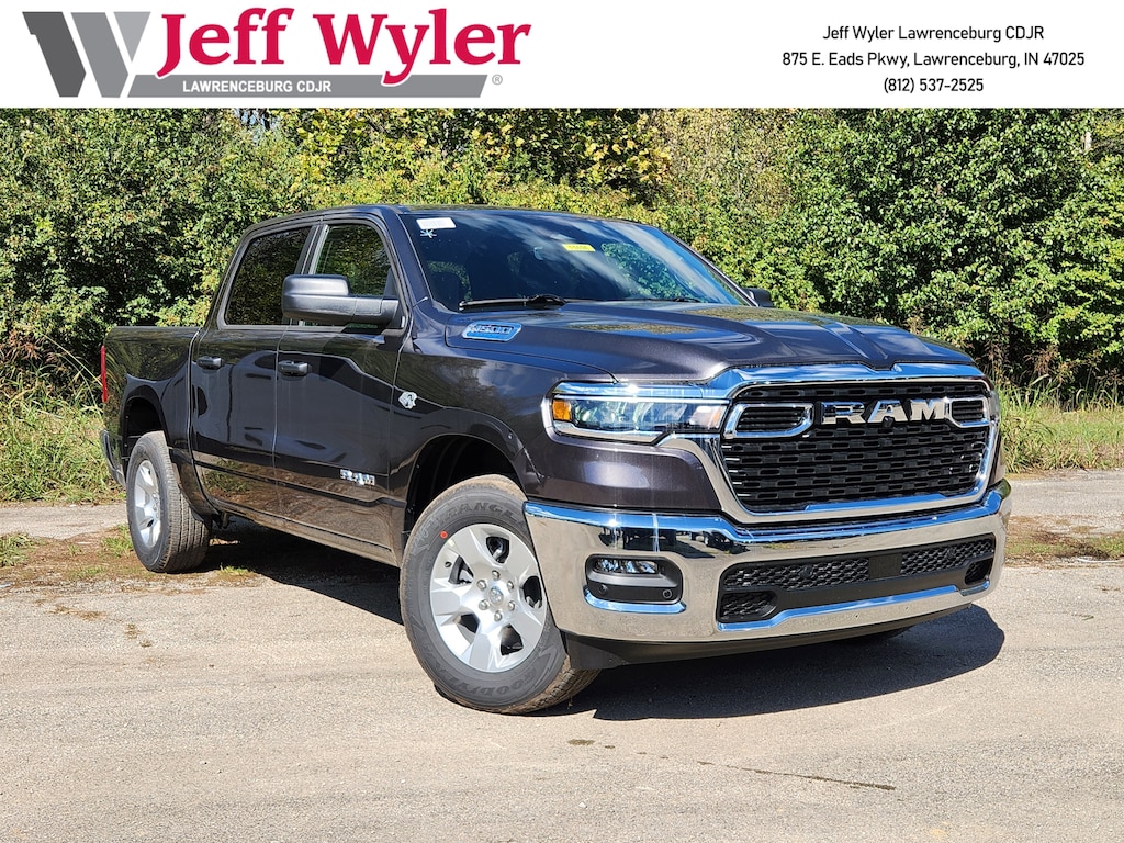 Jeff Wyler Chrysler Dodge Jeep of Lawrenceburg is delighted to offer this gorgeous-looking 2026 Ram 1500 Big Horn/Lone Star in Granite Crystal Metallic Clearcoat. Well equipped with: Quick Order Package 27Z Big Horn, 3 Rear Seat Head Restraints, 33 Gallon Fuel Tank, 4 Way Front Headrests, 4-Wheel Disc Brakes, 48V Belt Starter Generator, 4G LTE Wi-Fi Hot Spot, 6 Speakers, ABS brakes, Air Conditioning, Alloy wheels, AM/FM radio, Apple CarPlay, Apple CarPlay/Android Auto, Auto High-beam Headlights, Black Exterior Mirrors, Brake assist, Bucket Seats, Bumpers: chrome, Center Console Parts Module, Cloth Bucket Seats, Compass, Connectivity - US/Canada, Convex Wide-Angle Exterior Mirror Insert, Delay-off headlights, Driver door bin, Dual front impact airbags, Dual front side impact airbags, Electronic Stability Control, Exterior Mirrors w/Heating Element, Front anti-roll bar, Front Bucket Seats, Front Center Armrest w/Storage, Front fog lights, Front reading lights, Front wheel independent suspension, Full Length Floor Console, Fully automatic headlights, Global Telematics Box Module (TBM), Google Android Auto, GPS Antenna Input, Heated door mirrors, Illuminated entry, Integrated Center Stack Radio, Integrated Voice Command w/Bluetooth, Low tire pressure warning, Manual Adjust 4-Way Driver Seat, Manual Adjust 4-Way Front Passenger Seat, Manual Folding Exterior Mirrors, MOPAR Front & Rear Rubber Floor Mats, Occupant sensing airbag, Outside temperature display, Overhead airbag, Overhead console, Panic alarm, ParkView Rear Back-Up Camera, Passenger door bin, Passenger vanity mirror, Power door mirrors, Power steering, Power windows, Radio data system, Radio: Uconnect 5 W w/8.4" Display, RAM Grille Badge - Chrome, Rear anti-roll bar, Rear step bumper, Remote keyless entry, Speed control, Supplier Part Tracking (J-1), Tachometer, Telescoping steering wheel, Tilt steering wheel, Traction control, Trip computer, USB Host Flip, Variably intermittent wipers, Voltmeter, and Wheels: 18" x 8" Cast-Aluminum Painted.Wyler Family First Package Includes: NanoCure Appearance Protection: Exterior & Interior Chemical Sealant Applied to Protect Against Environmental Hazards (7 Year Warranty Coverage). Pulse- Rear end Collision Avoidance System Theft Deterrent Strategy gives you 5 Years of Coverage against vehicle Theft, Offering up to a $5,000 benefit. Used vehicles 10 years of age or newer with less than 100,000 miles are eligible for the Wyler Assurance Program, but eligible vehicles must pass our reconditioning process and multi-point inspection. Provided the vehicle passes inspection, vehicles will be eligible for the 6 month/6,000 mile limited warranty. The 6 month/6,000 mile limited warranty is NOT available on AS-IS vehicles, wholesale vehicles, lease buyback/pass-thru vehicles or un-inspected vehicles. Note that this program can also apply to vehicles where the remaining factory coverage is less than 6 months or 6,000 miles. Please check the Federal Trade Commission (FTC) Buyers guide on the vehicle for full details as to whether or not warranty coverage may apply. Contact Dealer for additional details.The Wyler Assurance 6 month/6,000 Mile limited warranty ends 6 months from the date of the Retail Purchase Agreement (BUYERS ORDER) or when the vehicle's odometer registers 6,000 additional miles to the mileage listed on the BUYERS ORDER, whichever comes first. Your Deductible - The warranty holder on your contract pays the first $100 of each covered repair. Price includes: $3500 - 2026 National Retail Consumer Cash . Exp. 11/03/2025