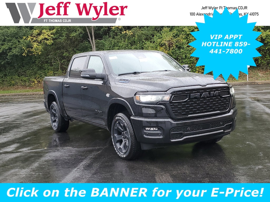 QUICK ORDER PACKAGE 27Z BIG HORN -inc: Engine: 5.7L V8 HEMI MDS VVT eTorque, Transmission: 8-Speed Automatic (8HP75) , TIRES: 275/55R20 OWL ALL SEASON -inc: Bridgestone Brand Tires, RADIO: UCONNECT 5 NAV W/12.0" DISPLAY, NIGHT EDITION -inc: Tires: 275/55R20 OWL All Season, Bridgestone Brand Tires, Accent Color Premium Power Mirrors, Exterior Mirrors w/Supplemental Signals, Black Headlamp Bezels, Exterior Mirrors Courtesy Lamps, Grille Black Surround Black Mesh, Auto Power-Folding Mirrors, Wheels: 20" x 9.0" Aluminum Painted Clad, Auto Dim Exterior Driver Mirror, Black Exterior Truck Badging, Anti-Spin Differential Rear Axle, Accent Color Door Handles, Accent Color Tailgate Handle, Black Interior Accents, Dual Exhaust w/Black Tips, Body Color Front Bumper, Body Color Rear Bumper w/Step Pads, Black Tail Lamp Bezels, RAM Grille Badge - Black, Black Painted Exterior Mirrors Caps, MOPAR FRONT & REAR RUBBER FLOOR MATS, GVWR: 7,100 LBS, ENGINE: 5.7L V8 HEMI MDS VVT ETORQUE -inc: Active Noise Control System, Heavy Duty Engine Cooling, Passive Tuned Mass Damper, GVWR: 7,100 lbs, Dual Rear Exhaust w/Bright Tips, G/T Exhaust, 18" Aluminum Spare Wheel, DIAMOND BLACK CRYSTAL PEARLCOAT, BLACK, DELUXE CLOTH BUCKET SEATS -inc: Power Adjust 8-Way Driver Seat, Rear 60/40 Folding Seat, Rear Center Armrest, Front Seat Back Map Pockets, Power 2-Way Driver Lumbar Adjust, BIG HORN LEVEL 2 EQUIPMENT GROUP -inc: SiriusXM Radio Service, Power Adjustable Pedals, Leather Wrapped Steering Wheel, 12" Touchscreen Display, Glove Box Lamp, Auto Power-Folding Mirrors, 115V Auxiliary Rear Power Outlet, Media Hub w/2 Charge Only USBs, Heated Front Seats, Security Alarm, Black Premium Power Mirrors, Premium Overhead Console, 9 Amplified Speakers w/Subwoofer, Disassociated Touchscreen Display, Body Color Fender Flares, Remote Tailgate Release, 115V Auxiliary Power Outlet, LED Dome Lamp w/On/Off Switch, Universal Garage Door Opener, 2nd Row In Floor Storage Bins, Sun Visors w/Illuminated Vanity Mirrors, LED Footwell Lighting, Rear Window Defroster, Rear View Auto Dim Mirror, Rear Power Sliding Window, GPS Navigation, Overhead LED Lamps, Wheels: 20" x 9" Aluminum Chrome Clad (WRK), Tires: 275/55R20 OWL All Season, Bridgestone Brand Tires, Auto Dim Exterior Driver Mirror, SiriusXM w/360L, Connected Travel & Traffic Services, Heated Steering Wheel, Configurable Drive Mod.