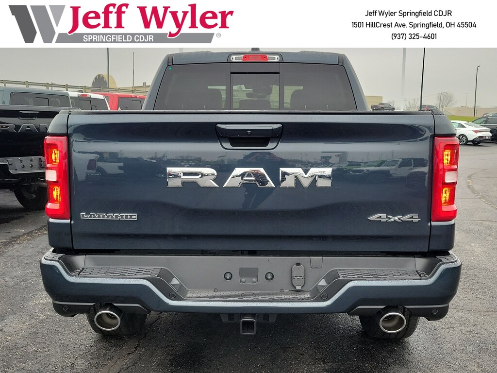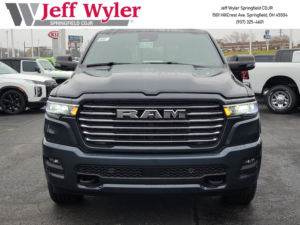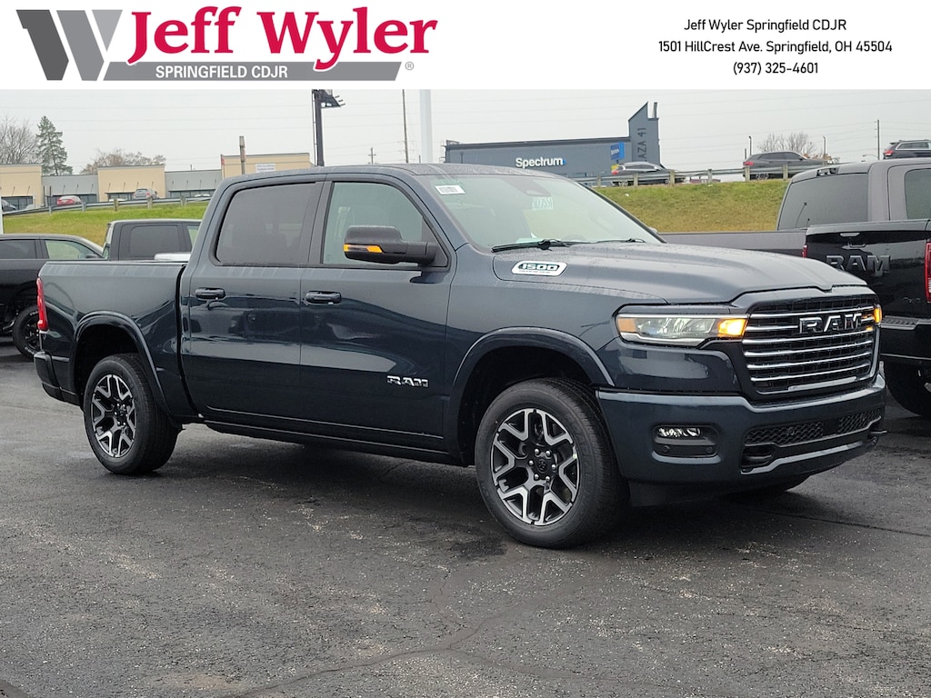 Jeff Wyler Springfield Auto Mall is proud to offer this wonderful 2026 Ram 1500 Laramie in Forged Blue Metallic. Well equipped with: Laramie Level 2 Equipment Group (14.4" Touchscreen Display, 4G LTE Wi-Fi Hot Spot, Cluster 12" TFT Color Display, Connected Travel & Traffic Services, Connectivity - US/Canada, Front Passenger Interactive Display, GPS Navigation, harman/kardon 19 Speaker Premium Sound, Integrated Center Stack Radio, Integrated Voice Command w/Bluetooth, Power Tailgate, Radio: Uconnect 5 Nav w/14.4" Display, Rain Sensitive Windshield Wipers, SiriusXM Radio Service, SiriusXM w/360L, and USB Host Flip), Laramie Preferred Package (Accent Color Premium Power Mirrors, Auto Power-Folding Mirrors, Auto-Dimming Exterior Driver Mirror, Black Painted Exterior Mirrors Caps, Body Color Front Bumper, Body Color Rear Bumper w/Step Pads, Convex Wide-Angle Exterior Mirror Insert, Dome Dual LED Reading Lamp, Dual-Pane Panoramic Sunroof, Exterior Mirrors Courtesy Lamps, Exterior Mirrors w/Heating Element, Exterior Mirrors w/Memory, Exterior Mirrors w/Supplemental Signals, Grille Surround 3 Body Color Tex 4 Chrome, LED Dome/Reading Lamp, Power Deployable Running Boards, RAM Grille Badge - Chrome, Tow Hooks, and Trailer Brake Control), Quick Order Package 21H Laramie, 10 Speakers, 3.55 Rear Axle Ratio, 4-Wheel Disc Brakes, ABS brakes, Active Noise Control System, Air Conditioning, Alloy wheels, AM/FM radio: SiriusXM with 360L, Apple CarPlay/Android Auto, Audio memory, Auto High-beam Headlights, Auto-dimming door mirrors, Auto-dimming Rear-View mirror, Automatic temperature control, Brake assist, Bumpers: chrome, Chrome Exterior Mirrors, Compass, Delay-off headlights, Driver door bin, Driver vanity mirror, Dual front impact airbags, Dual front side impact airbags, Electronic Stability Control, Front anti-roll bar, Front Bucket Seats, Front Center Armrest w/Storage, Front dual zone A/C, Front fog lights, Front License Plate Bracket, Front reading lights, Front wheel independent suspension, Fully automatic headlights, Garage door transmitter, Heated door mirrors, Heated front seats, Heated rear seats, Heated steering wheel, Illuminated entry, Leather steering wheel, Leather Trimmed Bucket Seats, Low tire pressure warning, Memory seat, Navigation System, Occupant sensing airbag, Off-Road Information Pages, Outside temperature display, Overhead airbag, Overhead console, Panic alarm, ParkView Rear Back-Up Camera, Passenger door bin, Passenger vanity mirror, Power door mirrors, Power driver seat, Power passenger seat, Power steering, Power windows, Radio data system, Radio: Uconnect 5 Nav w/12.0" Display, Rear anti-roll bar, Rear reading lights, Rear seat center armrest, Rear step bumper, Remote keyless entry, Security system, Speed control, Split folding rear seat, Steering wheel mounted audio controls, Tachometer, Telescoping steering wheel, Tilt steering wheel, Traction control, Trip computer, Turn signal indicator mirrors, Variably intermittent wipers, Ventilated front seats, Voltmeter, and Wheels: 20" x 9" Premium Paint/Polish. 17/24 City/Highway MPGWyler Family First Package Includes: NanoCure Appearance Protection: Exterior & Interior Chemical Sealant Applied to Protect Against Environmental Hazards (7 Year Warranty Coverage). Pulse- Rear end Collision Avoidance System Theft Deterrent Strategy gives you 5 Years of Coverage against vehicle Theft, Offering up to a $5,000 benefit. Available Incentives: $3500 - 2026 National Retail Consumer Cash . Exp. 12/01/2025 $500 - 2026 National 2026 Military Bonus Cash . Exp. 01/05/2026