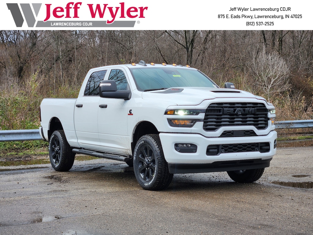 Jeff Wyler Chrysler Dodge Jeep of Lawrenceburg is excited to offer this great-looking 2026 Ram 2500 Tradesman in Bright White Clearcoat. Well equipped with: Quick Order Package 24C Black Express (2 Way Rear Headrest Seat, 4 Way Front Headrests, 40/20/40 Split Bench Seat, Auto Power-Folding Mirrors, Black Exterior Mirrors, Black Wheel Center Hub, Body Color Grille-Surround, Carpet Floor Covering, Cloth 40/20/40 Bench Seat, Exterior Mirrors Courtesy Lamps, Exterior Mirrors with Heating Element, Exterior Mirrors with Supplemental Signals, Forward and Reverse Utility Lights, Front and Rear Floor Mats, Front Armrest with Cupholders, Manual Adjust 4-Way Driver Seat, Manual Adjust 4-Way Front Passenger Seat, Mirror Running Lights, Mopar Black Tubular Side Steps, Painted Front Bumper, Painted Rear Bumper, ParkSense Front/Rear Park Assist System, Power Adjust Mirrors, Power Heated Folding Telescopic Mirrors, Power Telescoping Mirrors, Power-Adjustable Convex Aux Mirrors, Rear Folding Seat, Remote USB Port - Charge Only, Sport Performance Hood, Storage Tray, and Wheels: 20" x 8.0" Black Painted Aluminum), Tradesman Level 1 Equipment Group (115-Volt Auxiliary Front Power Outlet, 12" Touchscreen Display, 400W Inverter, 4G LTE Wi-Fi Hot Spot, Air Conditioning ATC with Dual Zone Control, Alexa Built-in, Apple CarPlay, Auto-Dimming Rear-View Mirror, Connected Travel and Traffic Services, Connectivity - US/Canada, Disassociated Touchscreen Display, Emergency Vehicle Alert System (EVAS), Exterior 115V AC Outlet, For Details, Visit DriveUconnect.com, For More Info, Call 800-643-2112, Global Telematics Box Module, Google Android Auto, GPS Antenna Input, GPS Navigation, HD Radio, Integrated Voice Command with Bluetooth, Off-Road Info Pages, Radio: Uconnect 5 Navigation with 12.0" Display, Rear Power Sliding Window, Selectable Tire Fill Alert, SiriusXM Radio Service, SiriusXM with 360L, Tinted Acoustic Windshield Glass, and Trailer Tow Pages), 4-Wheel Disc Brakes, 5th Wheel/Gooseneck Towing Prep Group, 6 Speakers, ABS brakes, Air Conditioning, AM/FM radio: SiriusXM, Anti-Spin Differential Rear Axle, Apple CarPlay/Android Auto, Brake assist, Clearance Lamps, Compass, Delay-off headlights, Driver door bin, Dual front impact airbags, Dual front side impact airbags, Electronic Stability Control, Front anti-roll bar, Front Center Armrest w/Storage, Front fog lights, Front reading lights, Fully automatic headlights, Illuminated entry, Low tire pressure warning, Manual Folding Exterior Mirrors, Manuarl Telescoping Mirrors, Occupant sensing airbag, Outside temperature display, Overhead airbag, Overhead console, Panic alarm, ParkView Rear Back-Up Camera, Passenger door bin, Passenger vanity mirror, Power steering, Power windows, Radio data system, Radio: Uconnect 5 with 8.4" Display, Rear anti-roll bar, Rear step bumper, Rear window defroster, Remote keyless entry, Speed control, Tachometer, Tilt steering wheel, Traction control, Variably intermittent wipers, Voltmeter, and Wheels: 17" x 7.5" Black Steel StyleD.Wyler Family First Package Includes: NanoCure Appearance Protection: Exterior & Interior Chemical Sealant Applied to Protect Against Environmental Hazards (7 Year Warranty Coverage). Pulse- Rear end Collision Avoidance System Theft Deterrent Strategy gives you 5 Years of Coverage against vehicle Theft, Offering up to a $5,000 benefit. Used vehicles 10 years of age or newer with less than 100,000 miles are eligible for the Wyler Assurance Program, but eligible vehicles must pass our reconditioning process and multi-point inspection. Provided the vehicle passes inspection, vehicles will be eligible for the 6 month/6,000 mile limited warranty. The 6 month/6,000 mile limited warranty is NOT available on AS-IS vehicles, wholesale vehicles, lease buyback/pass-thru vehicles or un-inspected vehicles. Note that this program can also apply to vehicles where the remaining factory coverage Price includes: $1000 - 2026 National Bonus Cash . Exp. 01/05/2026