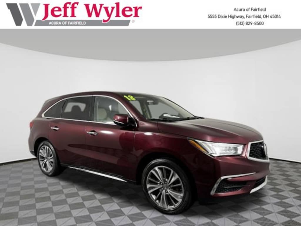 Jeff Wyler Acura of Fairfield is honored to offer this terrific 2018 Acura MDX 3.5L in Burgundy. Precision Used Certified, Parchment Leather, 10 Speakers, 3rd row seats: bench, 4-Wheel Disc Brakes, 4.33 Axle Ratio, ABS brakes, Adaptive suspension, Air Conditioning, Alloy wheels, AM/FM radio: SiriusXM, Anti-whiplash front head restraints, Apple CarPlay/Android Auto, Audio memory, Auto High-beam Headlights, Auto tilt-away steering wheel, Auto-dimming Rear-View mirror, Automatic temperature control, Brake assist, Bumpers: body-color, CD player, Compass, Delay-off headlights, Driver door bin, Driver vanity mirror, Dual front impact airbags, Dual front side impact airbags, Electronic Stability Control, Emergency communication system: AcuraLink, Exterior Parking Camera Rear, Four wheel independent suspension, Front anti-roll bar, Front Bucket Seats, Front Center Armrest, Front dual zone A/C, Front reading lights, Garage door transmitter: HomeLink, Heated door mirrors, Heated front seats, Heated Front Sport Seats, HVAC memory, Illuminated entry, Knee airbag, Lane Departure Warning System, Leather steering wheel, Leather-Trimmed Interior, Low tire pressure warning, Memory seat, Navigation System, Occupant sensing airbag, Outside temperature display, Overhead airbag, Overhead console, Panic alarm, Passenger door bin, Passenger vanity mirror, Power door mirrors, Power driver seat, Power Liftgate, Power moonroof, Power passenger seat, Power steering, Power windows, Premium audio system: Acura/ELS Surround, Radio data system, Radio: Acura/ELS Studio Premium Audio System, Rain sensing wipers, Rear air conditioning, Rear anti-roll bar, Rear reading lights, Rear seat center armrest, Rear window defroster, Rear window wiper, Remote keyless entry, Security system, Speed control, Speed-sensing steering, Speed-Sensitive Wipers, Split folding rear seat, Spoiler, Steering wheel memory, Steering wheel mounted audio controls, Tachometer, Telescoping steering wheel, Tilt steering wheel, Traction control, Trip computer, Turn signal indicator mirrors, Variably intermittent wipers, and Wheels: 20" x 8" Pewter Gray Metallic 10-Spoke ***ONLINE PRICE DOES NOT INCLUDE WYLER FAMILY FIRST PACKAGE*** Certified. Precision Used Details: * Vehicle History * Limited Warranty: 6 Month/7,500 Mile (whichever comes first) from original in-service date * Transferable Warranty * Warranty Deductible: $0 * One complimentary oil change within 1st year of ownership, Acura Roadside Assistance 1 year/12,000 miles. Includes emergency fuel delivery, battery jump-start, lockout assistance, flat tire change & emergency towing, 7-day Exchange Policy * Roadside Assistance * 112 Point Inspection * Powertrain Limited Warranty: 6 Month/7,500 Mile (whichever comes first) from original in-service dateAwards: * 2018 KBB.com 5-Year Cost to Own AwardsKelley Blue Book Brand Image Awards are based on the Brand Watch(tm) study from Kelley Blue Book Market Intelligence. Award calculated among non-luxury shoppers. For more information, visit www.kbb.com. Kelley Blue Book is a registered trademark of Kelley Blue Book Co., Inc.Proudly Serving: Cincinnati, Dayton, Columbus, Louisville, Lexington, Indianapolis, Hamilton, Florence, Alexandria, Beavercreek, Springdale, West Chester, Monroe, Fairfield, Kenwood, Newport and all of greater Cincinnati Ohio, Indiana, and Northern Kentucky.