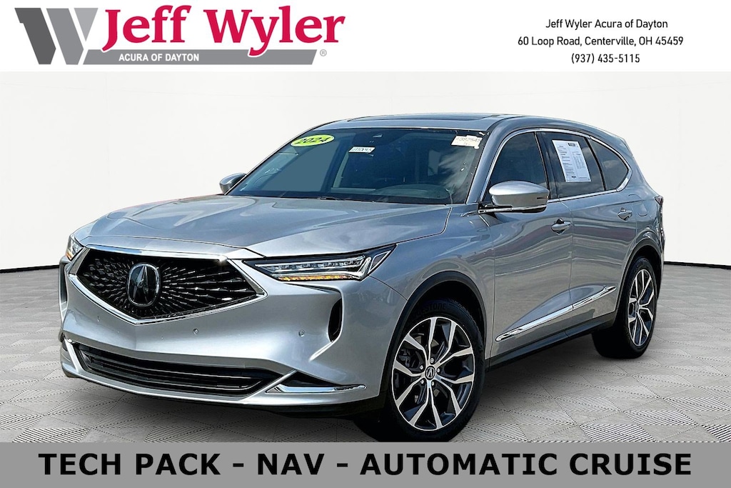 Jeff Wyler Acura of Dayton is proud to offer this fantastic 2024 Acura MDX Technology in Lunar Silver Metallic. Ebony Leather, 12 Speakers, 3rd row seats: split-bench, 4-Wheel Disc Brakes, 4.17 Axle Ratio, A/V remote: CabinControl, ABS brakes, Air Conditioning, Alloy wheels, AM/FM radio: SiriusXM, Anti-whiplash front head restraints, Apple CarPlay/Android Auto, Audio memory, Auto High-beam Headlights, Auto tilt-away steering wheel, Auto-dimming Rear-View mirror, Automatic temperature control, Brake assist, Bumpers: body-color, Compass, Delay-off headlights, Driver door bin, Driver vanity mirror, Dual front impact airbags, Dual front side impact airbags, Electronic Stability Control, Emergency communication system: AcuraLink, Exterior Parking Camera Rear, Four wheel independent suspension, Front anti-roll bar, Front Bucket Seats, Front Center Armrest, Front dual zone A/C, Front reading lights, Fully automatic headlights, Garage door transmitter: HomeLink, Heated door mirrors, Heated front seats, Heated Front Sport Seats, HVAC memory, Illuminated entry, Knee airbag, Lane departure: Lane Keeping Assist System (LKAS) active, Leather steering wheel, Low tire pressure warning, Memory seat, Navigation system: Acura Navigation System with 3D View, Occupant sensing airbag, Outside temperature display, Overhead airbag, Overhead console, Panic alarm, Passenger door bin, Passenger vanity mirror, Perforated Premium Milano Leather Trimmed Seats, Power door mirrors, Power driver seat, Power Liftgate, Power moonroof, Power passenger seat, Power steering, Power windows, Premium audio system: Acura/ELS Surround, Radio data system, Radio: ELS Studio Premium Audio System, Rain sensing wipers, Rear air conditioning, Rear anti-roll bar, Rear reading lights, Rear seat center armrest, Rear window defroster, Rear window wiper, Remote keyless entry, Security system, Speed control, Speed-sensing steering, Speed-Sensitive Wipers, Split folding rear seat, Spoiler, Steering wheel memory, Steering wheel mounted audio controls, Tachometer, Telescoping steering wheel, Tilt steering wheel, Traction control, Trip computer, Turn signal indicator mirrors, Variably intermittent wipers, and Wheels: 20" x 9J Aluminum Alloy Our PRE-OWNED vehicles are put through a rigorous 167- POINT QUALITY ASSURANCE INSPECTION along with an average amount of over $1,400.00 SPENT to recondition each vehicle so we can be sure to deliver you the highest quality vehicle like you deserve! ***ONLINE PRICE DOES NOT INCLUDE WYLER FAMILY FIRST PACKAGE*** CARFAX One-Owner. Clean CARFAX.