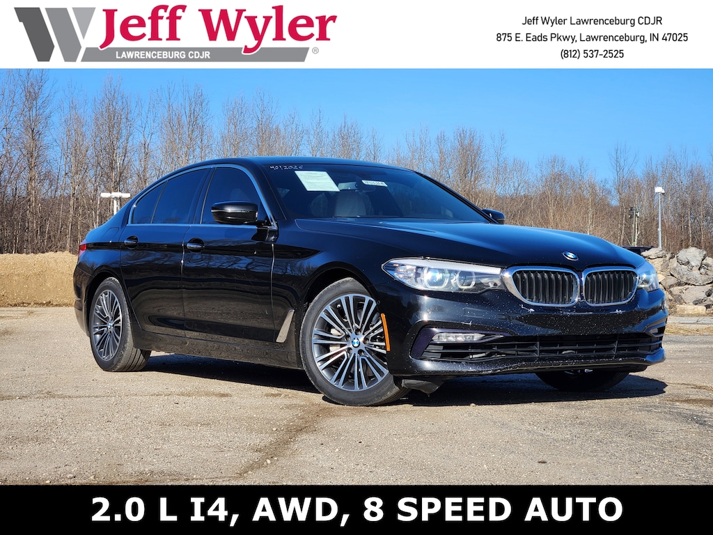 Jeff Wyler Chrysler Dodge Jeep of Lawrenceburg is honored to offer this charming 2017 BMW 5 Series 530i xDrive in Black Sapphire Metallic. AWD, Canberra Beige/Black Canberra Beg/Blk Dak Cont Stic, 12 Speakers, 4-Wheel Disc Brakes, ABS brakes, Active Park Distance Control, Air Conditioning, Alloy wheels, AM/FM radio, Auto tilt-away steering wheel, Auto-dimming door mirrors, Auto-dimming Rear-View mirror, Automatic temperature control, Brake assist, Bumpers: body-color, Burl Walnut Wood Trim, CD player, Comfort Access Keyless Entry, Delay-off headlights, Driver door bin, Driver vanity mirror, Dual front impact airbags, Dual front side impact airbags, Electronic Stability Control, Emergency communication system: BMW Assist eCall, Four wheel independent suspension, Front & Rear Heated Seats, Front anti-roll bar, Front Bucket Seats, Front Center Armrest, Front dual zone A/C, Front fog lights, Front reading lights, Fully automatic headlights, Garage door transmitter, Genuine wood console insert, Genuine wood dashboard insert, Genuine wood door panel insert, Gesture Control, Head-Up Display, Heated door mirrors, Heated Steering Wheel, HiFi Sound System, Illuminated entry, Leather Shift Knob, Leather steering wheel, Low tire pressure warning, Lumbar Support, Memory seat, Multi-Contour Seats, Navigation System, Occupant sensing airbag, Outside temperature display, Overhead airbag, Panic alarm, Parking Assistant, Passenger door bin, Passenger vanity mirror, Power door mirrors, Power driver seat, Power Front Seats, Power moonroof, Power passenger seat, Power steering, Power windows, Radio data system, Radio: AM/FM Audio System, Rain sensing wipers, Rear anti-roll bar, Rear reading lights, Rear seat center armrest, Rear window defroster, Rear-View Camera, Remote keyless entry, Security system, SensaTec Leatherette Upholstery, SiriusXM Satellite Radio, Speed control, Speed-sensing steering, Speed-Sensitive Wipers, Split folding rear seat, Sport Seats, Sport steering wheel, Steering wheel memory, Steering wheel mounted audio controls, Tachometer, Telescoping steering wheel, Tilt steering wheel, Traction control, Trip computer, Turn signal indicator mirrors, Variably intermittent wipers, Wheels: 18" x 8" Double-Spoke (Style 634), WiFi Hotspot, and Wireless Charging Our PRE-OWNED vehicles are put through a rigorous 167- POINT QUALITY ASSURANCE INSPECTION along with an average amount of over $1,400.00 SPENT to recondition each vehicle so we can be sure to deliver you the highest quality vehicle like you deserve! ***ONLINE PRICE DOES NOT INCLUDE WYLER FAMILY FIRST PACKAGE*** Stop by 4136 Shelbyville Road to see for yourself, or give us a call @ 502-897-3151 to schedule your test drive! Ask about available certifications.