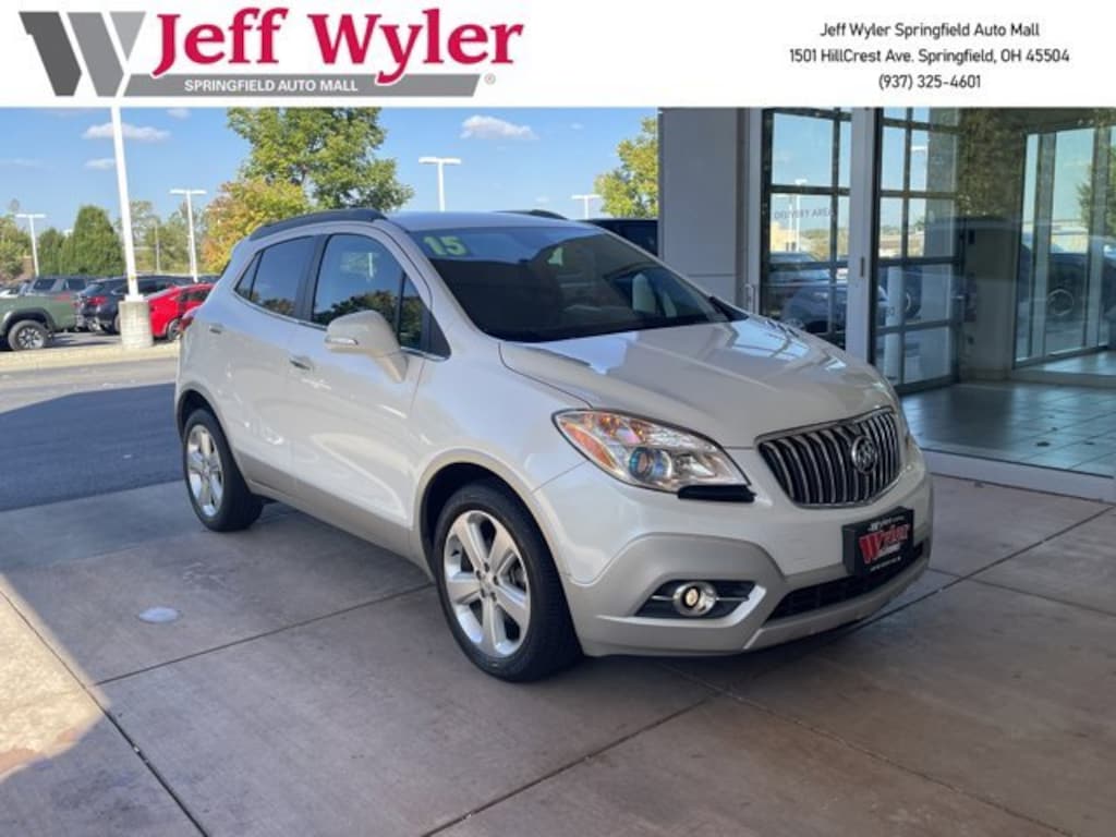 Jeff Wyler Springfield Auto Mall is proud to offer this wonderful-looking 2015 Buick Encore Leather in White Pearl Tricoat. Well equipped with: Preferred Equipment Group 1SL, 3.53 Final Drive Axle Ratio, 4-Wheel Disc Brakes, 6 Speakers, 6-Way Power Driver Seat Adjuster, 6-Way Power Front Passenger Seat Adjuster, ABS brakes, Air Conditioning, Alloy wheels, AM/FM radio: SiriusXM, Auto-dimming Rear-View mirror, Automatic temperature control, Brake assist, Bumpers: body-color, CD player, Compass, Delay-off headlights, Driver door bin, Driver vanity mirror, Driver's Seat Mounted Armrest, Dual front impact airbags, Dual front side impact airbags, Electronic Stability Control, Emergency communication system: OnStar Directions & Connections, Exterior Parking Camera Rear, Front anti-roll bar, Front Bucket Seats, Front dual zone A/C, Front fog lights, Front License Plate Bracket, Front reading lights, Front wheel independent suspension, Fully automatic headlights, Heated door mirrors, Heated Driver & Front Passenger Seats, Heated front seats, Heated steering wheel, Illuminated entry, Knee airbag, Leather steering wheel, Leather-Appointed Seat Trim, Low tire pressure warning, Memory seat, Occupant sensing airbag, Outside temperature display, Overhead airbag, Panic alarm, Passenger door bin, Passenger vanity mirror, Power door mirrors, Power driver seat, Power passenger seat, Power steering, Power windows, Premium audio system: IntelliLink, Radio data system, Radio: AM/FM Audio System w/MP3 CD Player, Rear seat center armrest, Rear side impact airbag, Rear window defroster, Rear window wiper, Remote keyless entry, Ride & Handling Suspension, Roof rack: rails only, Security system, SiriusXM Satellite Radio, Speed control, Speed-sensing steering, Split folding rear seat, Spoiler, Steering wheel mounted audio controls, Tachometer, Telescoping steering wheel, Tilt steering wheel, Traction control, Trip computer, Turn signal indicator mirrors, Variably intermittent wipers, and Wheels: 18 5-Spoke Painted Cast Aluminum. Awards:* JD Power Automotive Performance, Execution and Layout (APEAL) Study * 2015 IIHS Top Safety Pick * 2015 KBB.com 5-Year Cost to Own Awards * 2015 KBB.com Brand Image Awards Reviews:* Small doesnât have to mean skimpy. The 2015 Buick Encore SUV may be compact, but its bold appearance, long list of luxury and electronic trappings and modern drivetrain make it an exceptionally good value. Source: KBB.com* Quiet interior; good fuel economy; long list of tech and safety features. Source: EdmundsAsk about available certifications. Used vehicles 10 years of age or newer with less than 100,000 miles are eligible for the Wyler Assurance Program, but eligible vehicles must pass our reconditioning process and multi-point inspection. Provided the vehicle passes inspection, vehicles will be eligible for the 6 month/6,000 mile limited warranty. The 6 month/6,000 mile limited warranty is NOT available on AS-IS vehicles, wholesale vehicles, lease buyback/pass-thru vehicles or un-inspected vehicles. Note that this program can also apply to vehicles where the remaining factory coverage is less than 6 months or 6,000 miles. Please check the Federal Trade Commission (FTC) Buyers guide on the vehicle for full details as to whether or not warranty coverage may apply. Contact Dealer for additional details. The Wyler Assurance 6 month/6,000 Mile limited warranty ends 6 months from the date of the Retail Purchase Agreement (BUYERS ORDER) or when the vehicle's odometer registers 6,000 additional miles to the mileage listed on the BUYERS ORDER, whichever comes first. Your Deductible - The warranty holder on your contract pays the first $100 of each covered repair.