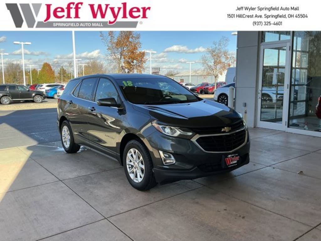 Jeff Wyler Springfield Auto Mall is excited to offer this great 2018 Chevrolet Equinox LT in Nightfall Gray Metallic. Well equipped with: Confidence & Convenience Package, Driver Confidence Package (Lane Change Alert w/Side Blind Zone Alert, Outside Heated Power-Adjustable Mirrors, Rear Cross Traffic Alert, and Rear Park Assist w/Audible Warning), Driver Convenience Package (3-Spoke Leather-Wrapped Steering Wheel, Dual Zone Automatic Climate Control, Heated Driver & Front Passenger Seats, Rear Power Liftgate, Remote Vehicle Starter System, and Universal Home Remote), Preferred Equipment Group 1LT, 17 Aluminum Wheels, 3.87 Final Drive Axle Ratio, 4-Wheel Disc Brakes, 6 Speaker Audio System Feature, 6 Speakers, 8-Way Power Driver Seat Adjuster, ABS brakes, Air Conditioning, Alloy wheels, AM/FM radio: SiriusXM, Apple CarPlay/Android Auto, Bluetooth® For Phone, Brake assist, Bumpers: body-color, Compass, Delay-off headlights, Driver door bin, Driver vanity mirror, Dual front impact airbags, Dual front side impact airbags, Electronic Stability Control, Emergency communication system: OnStar and Chevrolet connected services capable, Exterior Parking Camera Rear, Four wheel independent suspension, Front anti-roll bar, Front Bucket Seats, Front Center Armrest, Front Passenger 4-Way Manual Seat Adjuster, Front reading lights, Fully automatic headlights, Heated door mirrors, High-Intensity Discharge Headlights, Illuminated entry, Leather Shift Knob, Low tire pressure warning, Occupant sensing airbag, Outside temperature display, Overhead airbag, Overhead console, Panic alarm, Passenger door bin, Passenger vanity mirror, Power door mirrors, Power driver seat, Power steering, Power windows, Premium audio system: Chevrolet MyLink, Premium Cloth Seat Trim, Radio data system, Radio: Chevrolet MyLink AM/FM Stereo, Rear anti-roll bar, Rear reading lights, Rear seat center armrest, Rear window defroster, Rear window wiper, Remote keyless entry, Security system, Set of 4 Wheel Locks (LPO), SiriusXM Satellite Radio, Speed control, Speed-sensing steering, Split folding rear seat, Spoiler, Steering wheel mounted audio controls, Tachometer, Telescoping steering wheel, Tilt steering wheel, Traction control, Trip computer, USB Port & Auxiliary Input Jack, and Variably intermittent wipers. Awards:* JD Power Automotive Performance, Execution and Layout (APEAL) Study * 2018 KBB.com Best Family Cars * 2018 KBB.com 10 Best SUVs Under $25,000 * 2018 KBB.com 10 Most Awarded Brands Ask about available certifications. Used vehicles 10 years of age or newer with less than 100,000 miles are eligible for the Wyler Assurance Program, but eligible vehicles must pass our reconditioning process and multi-point inspection. Provided the vehicle passes inspection, vehicles will be eligible for the 6 month/6,000 mile limited warranty. The 6 month/6,000 mile limited warranty is NOT available on AS-IS vehicles, wholesale vehicles, lease buyback/pass-thru vehicles or un-inspected vehicles. Note that this program can also apply to vehicles where the remaining factory coverage is less than 6 months or 6,000 miles. Please check the Federal Trade Commission (FTC) Buyers guide on the vehicle for full details as to whether or not warranty coverage may apply. Contact Dealer for additional details. The Wyler Assurance 6 month/6,000 Mile limited warranty ends 6 months from the date of the Retail Purchase Agreement (BUYERS ORDER) or when the vehicle's odometer registers 6,000 additional miles to the mileage listed on the BUYERS ORDER, whichever comes first. Your Deductible - The warranty holder on your contract pays the first $100 of each covered repair.