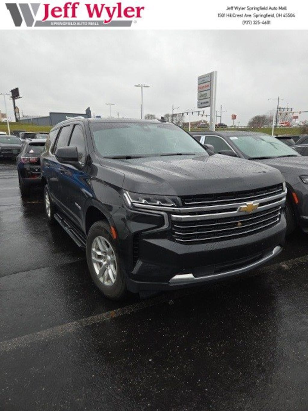Jeff Wyler Springfield Auto Mall is delighted to offer this good-looking 2021 Chevrolet Tahoe LT in Black. Well equipped with: License Plate Front Mounting Package, Preferred Equipment Group 1LT (1st & 2nd Row Color-Keyed Carpeted Floor Mats, 2 USB Data Ports, Auto-Dimming Inside Rear-View Mirror, Bright Front & Rear Door Sill Plates, Color-Keyed Carpeting Floor Covering, Driver & Front Outboard Passenger Airbags, Floor Console w/Storage Area, Hands-Free Rear Power Programmable Liftgate, HD Radio, Infotainment Display, Leather-Wrapped Steering Wheel, LED Daytime Running Lamps, Memory Settings for Driver, Remote Start, SiriusXM Radio w/360L, and Universal Home Remote), 10-Way Power Driver & Passenger Seat Adjusters, 3.23 Rear Axle Ratio, 3rd row seats: split-bench, 4-Wheel Disc Brakes, 9 Speakers, ABS brakes, Air Conditioning, Alloy wheels, AM/FM radio: SiriusXM with 360L, Apple CarPlay/Android Auto, Auto High-beam Headlights, Auto-dimming Rear-View mirror, Automatic temperature control, Bose 9-Speaker Stereo Audio System Feature, Brake assist, Bumpers: body-color, Compass, Delay-off headlights, Driver door bin, Driver vanity mirror, Dual front impact airbags, Dual front side impact airbags, Electronic Stability Control, Emergency communication system: OnStar and Chevrolet connected services capable, Four wheel independent suspension, Front anti-roll bar, Front Bucket Seats, Front Center Armrest, Front dual zone A/C, Front High-Back Reclining Bucket Seats, Front reading lights, Fully automatic headlights, Garage door transmitter, Heated door mirrors, Heated Driver & Front Passenger Seats, Heated front seats, Illuminated entry, Leather Seat Trim, Leather steering wheel, Low tire pressure warning, Memory seat, Occupant sensing airbag, Outside temperature display, Overhead airbag, Overhead console, Panic alarm, Passenger door bin, Passenger vanity mirror, Power door mirrors, Power driver seat, Power Liftgate, Power passenger seat, Power steering, Power windows, Premium audio system: Chevrolet Infotainment 3, Premium Smooth Ride Suspension, Radio: Chevrolet Infotainment 3 Plus System, Rain sensing wipers, Rear air conditioning, Rear anti-roll bar, Rear reading lights, Rear seat center armrest, Rear window defroster, Rear window wiper, Remote keyless entry, Roof rack: rails only, Security system, Speed control, Speed-sensing steering, Split folding rear seat, Spoiler, Steering wheel mounted audio controls, Tachometer, Telescoping steering wheel, Tilt steering wheel, Traction control, Trip computer, Variably intermittent wipers, Voltmeter, and Wheels: 18" x 8.5" Bright Silver Painted Aluminum. Awards: * JD Power Automotive Performance, Execution and Layout (APEAL) Study * ALG Residual Value Ask about available certifications. Used vehicles 10 years of age or newer with less than 100,000 miles are eligible for the Wyler Assurance Program, but eligible vehicles must pass our reconditioning process and multi-point inspection. Provided the vehicle passes inspection, vehicles will be eligible for the 6 month/6,000 mile limited warranty. The 6 month/6,000 mile limited warranty is NOT available on AS-IS vehicles, wholesale vehicles, lease buyback/pass-thru vehicles or un-inspected vehicles. Note that this program can also apply to vehicles where the remaining factory coverage is less than 6 months or 6,000 miles. Please check the Federal Trade Commission (FTC) Buyers guide on the vehicle for full details as to whether or not warranty coverage may apply. Contact Dealer for additional details. The Wyler Assurance 6 month/6,000 Mile limited warranty ends 6 months from the date of the Retail Purchase Agreement (BUYERS ORDER) or when the vehicle's odometer registers 6,000 additional miles to the mileage listed on the BUYERS ORDER, whichever comes first. Your Deductible - The warranty holder on your contract pays the first $100 of each covered repair.