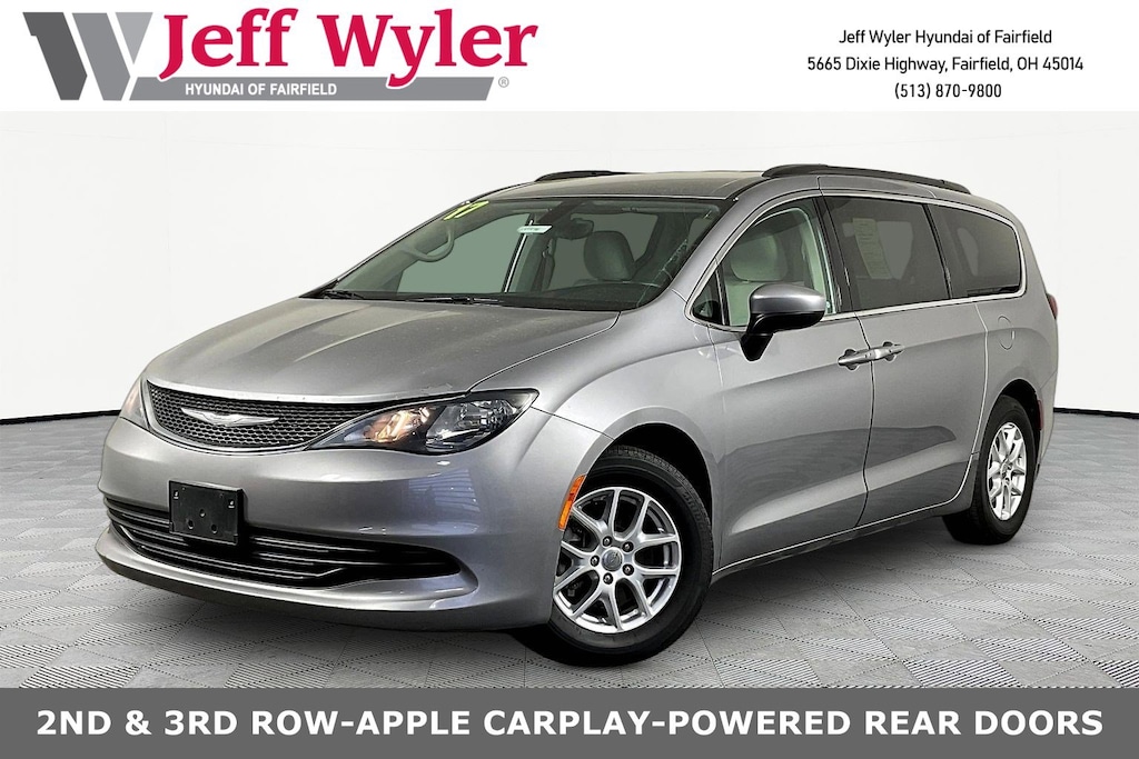 Jeff Wyler Hyundai of Fairfield is delighted to offer this fantastic 2017 Chrysler Pacifica Touring in Billet Silver Metallic Clearcoat. Well equipped with: Quick Order Package 25K (DISC), Android Auto, Apple CarPlay, CALL NOW FOR YOUR VIP APPOINTMENT 513-870-9800, FULLY SERVICED w/RECORDS, GUARANTEED FINANCING!! NO MATTER YOUR SITUATION WE CAN GET AN APPROVAL!!, THE #1 Volume dealer in the region! Come see why for yourself Today!!, WE PAY MORE FOR YOUR TRADE!!, 17" x 7.0" Aluminum Wheels, 3.25 Axle Ratio, 3rd row seats: split-bench, 4-Wheel Disc Brakes, 6 Mo. Trial (Registration Required), 6 Speakers, 8.4" Touchscreen Display, ABS brakes, Air Conditioning, Alloy Seats (DISC), Alloy wheels, AM/FM radio: SiriusXM, Brake assist, Bumpers: body-color, Cloth Bucket Seats, Compass, Delay-off headlights, Driver door bin, Driver vanity mirror, Driver's Seat Mounted Armrest, Dual front impact airbags, Dual front side impact airbags, Electronic Stability Control, For Details, Visit DriveUconnect.com, Four wheel independent suspension, Front anti-roll bar, Front Bucket Seats, Front dual zone A/C, Front reading lights, Fully automatic headlights, GPS Antenna Input, Heated door mirrors, Illuminated entry, Integrated Voice Command w/Bluetooth, KeySense, Knee airbag, Low tire pressure warning, Nav-Capable! See Dealer for Details, Normal Duty Suspension, Occupant sensing airbag, Outside temperature display, Overhead airbag, Overhead console, Panic alarm, ParkView Rear Back-Up Camera, Passenger door bin, Passenger seat mounted armrest, Passenger vanity mirror, Power door mirrors, Power driver seat, Power Liftgate, Power steering, Power windows, Radio data system, Radio: Uconnect 3 w/5" Display, Radio: Uconnect 3C w/8.4" Display, Rear air conditioning, Rear reading lights, Rear window defroster, Rear window wiper, Reclining 3rd row seat, Remote keyless entry, SiriusXM Satellite Radio, Speed control, Split folding rear seat, Spoiler, Steering wheel mounted audio controls, Tachometer, Telescoping steering wheel, Tilt steering wheel, Traction control, Trip computer, Uconnect Access, Variably intermittent wipers, and VoltmeteR. Reviews: * Easy to transform from people hauler to cargo hauler; upscale interior; roomy third-row seat; many convenience and luxury-based features available. Source: Edmunds * Easy to transform from people hauler to cargo hauler; upscale interior; roomy third-row seat; many convenience and luxury-based features available; class-exclusive hybrid engine option. Source: EdmundsTO CHECK ON THE AVAILABILITY OF THIS VEHICLE REACH OUT TO ONE OF OUR TEAM MEMBERS!! ALSO SHOP ONLINE AT https://www.jeffwylerhyundaioffairfield.com/ Proudly Serving: Cincinnati, Dayton, Columbus, Louisville, Lexington, Indianapolis, Hamilton, Florence, Alexandria, Beavercreek, Springdale, West Chester, Monroe, Fairfield, Kenwood, Newport and all of greater Cincinnati Ohio, Indiana, and Northern Kentucky.