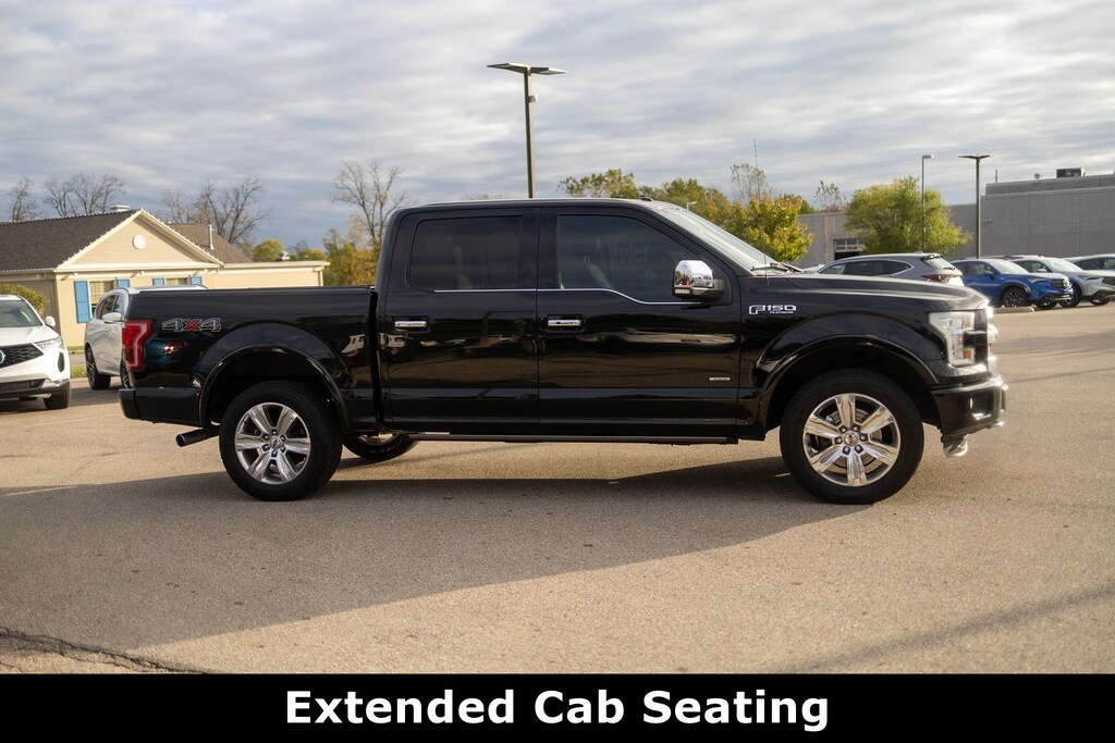 Jeff Wyler Acura of Dayton is proud to offer this dependable 2016 Ford F-150 Platinum in Shadow Black. 4WD, 3.31 Axle Ratio, 4-Wheel Disc Brakes, ABS brakes, Air Conditioning, Alloy wheels, Brake assist, Bumpers: chrome, CD player, Compass, Delay-off headlights, Driver door bin, Driver vanity mirror, Dual front impact airbags, Dual front side impact airbags, Electronic Stability Control, Front anti-roll bar, Front fog lights, Front reading lights, Front wheel independent suspension, Fully automatic headlights, Illuminated entry, Low tire pressure warning, Occupant sensing airbag, Outside temperature display, Overhead airbag, Panic alarm, Passenger door bin, Passenger vanity mirror, Power door mirrors, Power steering, Power windows, Radio data system, Rear reading lights, Rear step bumper, Remote keyless entry, Security system, Speed control, Speed-sensing steering, Split folding rear seat, Steering wheel mounted audio controls, SYNC 3, Tachometer, Telescoping steering wheel, Tilt steering wheel, Traction control, Variably intermittent wipers, Voice-Activated Navigation, and Voltmeter Our PRE-OWNED vehicles are put through a rigorous 167- POINT QUALITY ASSURANCE INSPECTION along with an average amount of over $1,400.00 SPENT to recondition each vehicle so we can be sure to deliver you the highest quality vehicle like you deserve! ***ONLINE PRICE DOES NOT INCLUDE WYLER FAMILY FIRST PACKAGE*** Stop by 4136 Shelbyville Road to see for yourself, or give us a call @ 502-897-3151 to schedule your test drive! Clean CARFAX.