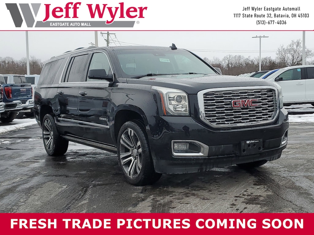 Jeff Wyler Eastgate Auto Mall is pleased to offer this fantastic 2019 GMC Yukon XL Denali in Onyx Black. Well equipped with: Advanced Adaptive Cruise Control (4-Wheel Disc & 4-Wheel VAC Power Antilock Brakes and Forward Automatic Braking), Denali Ultimate Package (Pwr Retractable Assist Steps w/Perimeter Lighting), Enhanced Driver Alert Package (Forward Collision Alert, IntelliBeam Automatic High Beam On/Off, Lane Keep Assist w/Lane Departure Warning, and Low Speed Forward Automatic Braking), Enhanced Security Package (Theft-Deterrent Alarm System, Vehicle Inclination Sensor, and Vehicle Interior Movement Sensor), License Plate Front Mounting Package, Magnetic Ride Control Suspension Package, Memory Package, Open Road Package (3rd Row DVD Screen, Power Tilt-Sliding Sunroof w/Express-Open/Close, and Rear Seat Blu-Ray/DVD Entertainment System), Preferred Equipment Group 5SA (4-Wheel Antilock Disc Brakes, 5 Auxiliary 12-volt Power Outlets, Black Assist Steps w/Chrome Strip, Bose Active Noise Cancellation, Hands Free Power Programmable Rear Liftgate, Heated Leather-Wrapped Steering Wheel, Inside Rear-View Auto-Dimming Mirror, Integrated Trailer Brake Controller, Lane Change Alert w/Side Blind Zone Alert, Passive Entry System, Power Release 2nd Row Bucket Seats, Power Tilt & Telescopic Steering Column, Power-Adjustable Pedals For Accelerator & Brake, Push Button Keyless Start, Rear Cross Traffic Alert, Remote Keyless Entry, Universal Home Remote, and Wireless Charging), 10 Speakers, 1st & 2nd Rows All-Weather Floor Liner (LPO), 3.23 Rear Axle Ratio, 3rd row seats: split-bench, 4-Wheel Disc Brakes, ABS brakes, Adaptive suspension, Adjustable pedals, Air Conditioning, Alloy wheels, AM/FM radio: SiriusXM, Apple CarPlay/Android Auto, Auto High-beam Headlights, Auto-dimming door mirrors, Auto-dimming Rear-View mirror, Automatic temperature control, Bodyside moldings, Bose Centerpoint Surround Sound Audio System, Brake assist, Bumpers: body-color, CD Player, CD player, Compass, Delay-off headlights, Driver door bin, Driver vanity mirror, Dual front impact airbags, Dual front side impact airbags, Electronic Stability Control, Emergency communication system: OnStar and GMC connected services capable, Exterior Parking Camera Rear, Front anti-roll bar, Front Bucket Seats, Front Center Armrest, Front dual zone A/C, Front fog lights, Front reading lights, Front wheel independent suspension, Full-Feature Reclining Bucket Seats, Fully automatic headlights, Garage door transmitter, Genuine wood console insert, Genuine wood dashboard insert, Genuine wood door panel insert, Heads-Up Display, Heated & Ventilated Driver & Front Passenger Seats, Heated door mirrors, Heated front seats, Heated rear seats, Heated steering wheel, High-Intensity Discharge Headlights, Illuminated entry, Leather Shift Knob, Low tire pressure warning, Memory seat, Navigation System, Occupant sensing airbag, Outside temperature display, Overhead airbag, Overhead console, Panic alarm, Passenger door bin, Passenger vanity mirror, Pedal memory, Perforated Leather-Appointed Seat Trim, Power door mirrors, Power driver seat, Power Liftgate, Power passenger seat, Power steering, Power windows, Premium audio system: IntelliLink, Radio: AM/FM/SiriusXM w/Navigation, Rain sensing wipers, Rear air conditioning, Rear anti-roll bar, Rear reading lights, Rear window defroster, Rear window wiper, Remote keyless entry, Roof rack: rails only, Security system, SiriusXM NavTraffic, SiriusXM Radio, Speed control, Speed-sensing steering, Split folding rear seat, Spoiler, Steering wheel memory, Steering wheel mounted audio controls, Tachometer, Telescoping steering wheel, Tilt steering wheel, Traction control, Trip computer, Turn signal indicator mirrors, Variably intermittent wipers, Ventilated front seats, Voltmeter, Wheels: 20" x 9" Bright Machined Aluminum, and Wheels: 22" x 8.5" Bright Aluminum. Ask about available certifications. Used vehicles 10 years of age or newer with less than 100,000 m