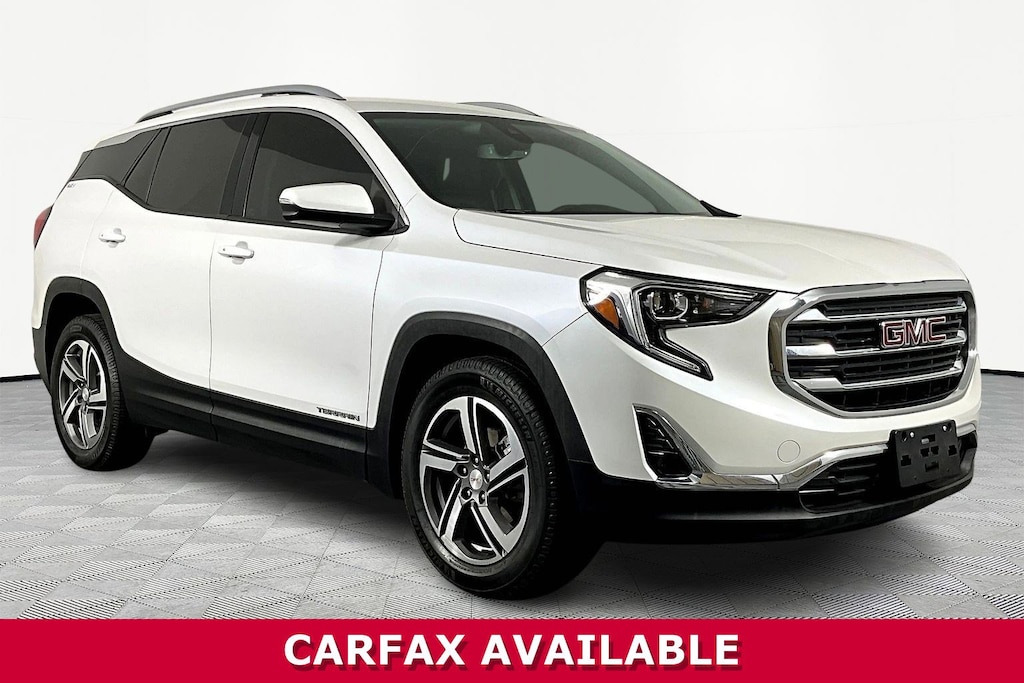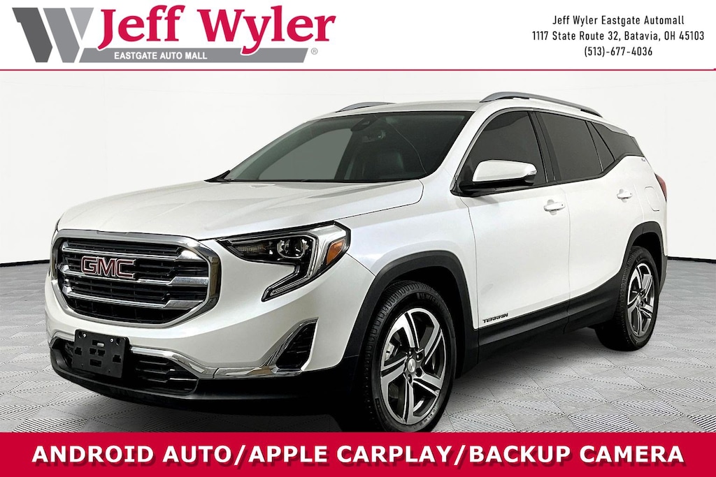 Jeff Wyler Eastgate Auto Mall is excited to offer this handsome 2021 GMC Terrain SLT in White Frost Tricoat. Well equipped with: Floor Liner Package (LPO) (Front & Rear All-Weather Floor Liners (LPO) and Integrated Cargo Liner (LPO)), License Plate Front Mounting Package, Preferred Equipment Group 4SA, 2 USB Data Ports, 2 USB Data Ports w/SD Card Reader, 3.47 Axle Ratio, 4-Wheel Disc Brakes, 6 Speakers, 6-Speaker Audio System Feature, 8-Way Power Driver Seat Adjuster, ABS brakes, Air Conditioning, Alloy wheels, AM/FM radio: SiriusXM, Apple CarPlay/Android Auto, Auto High-beam Headlights, Auto-dimming door mirrors, Auto-dimming Rear-View mirror, Automatic temperature control, Bluetooth® For Phone, Brake assist, Bumpers: body-color, Compass, Delay-off headlights, Driver & Front Passenger Heated Seats, Driver door bin, Driver vanity mirror, Dual front impact airbags, Dual front side impact airbags, Electronic Stability Control, Emergency communication system: OnStar and GMC connected services capable, Exterior Parking Camera Rear, Four wheel independent suspension, Front anti-roll bar, Front Bucket Seats, Front Center Armrest, Front dual zone A/C, Front fog lights, Front reading lights, Fully automatic headlights, Garage door transmitter, Heated door mirrors, Heated front seats, Heated steering wheel, High-Intensity Discharge Headlights, Illuminated entry, Low tire pressure warning, Memory seat, Occupant sensing airbag, Outside temperature display, Overhead airbag, Overhead console, Panic alarm, Passenger door bin, Passenger vanity mirror, Perforated Leather-Appointed Seat Trim, Power door mirrors, Power Driver Lumbar Control, Power driver seat, Power Liftgate, Power passenger seat, Power steering, Power windows, Radio data system, Radio: GMC Infotainment Audio System w/8" Display, Rear anti-roll bar, Rear seat center armrest, Rear window defroster, Rear window wiper, Remote keyless entry, Roof rack: rails only, Security system, SiriusXM Radio, Speed control, Speed-sensing steering, Split folding rear seat, Spoiler, Steering wheel mounted audio controls, Tachometer, Telescoping steering wheel, Tilt steering wheel, Traction control, Trip computer, Turn signal indicator mirrors, Variably intermittent wipers, and Wheels: 18" x 7" Machined Aluminum w/Gray Accents. Clean CARFAX. Ask about available certifications. Used vehicles 10 years of age or newer with less than 100,000 miles are eligible for the Wyler Assurance Program, but eligible vehicles must pass our reconditioning process and multi-point inspection. Provided the vehicle passes inspection, vehicles will be eligible for the 6 month/6,000 mile limited warranty. The 6 month/6,000 mile limited warranty is NOT available on AS-IS vehicles, wholesale vehicles, lease buyback/pass-thru vehicles or un-inspected vehicles. Note that this program can also apply to vehicles where the remaining factory coverage is less than 6 months or 6,000 miles. Please check the Federal Trade Commission (FTC) Buyers guide on the vehicle for full details as to whether or not warranty coverage may apply. Contact Dealer for additional details. The Wyler Assurance 6 month/6,000 Mile limited warranty ends 6 months from the date of the Retail Purchase Agreement (BUYERS ORDER) or when the vehicle's odometer registers 6,000 additional miles to the mileage listed on the BUYERS ORDER, whichever comes first. Your Deductible - The warranty holder on your contract pays the first $100 of each covered repair.