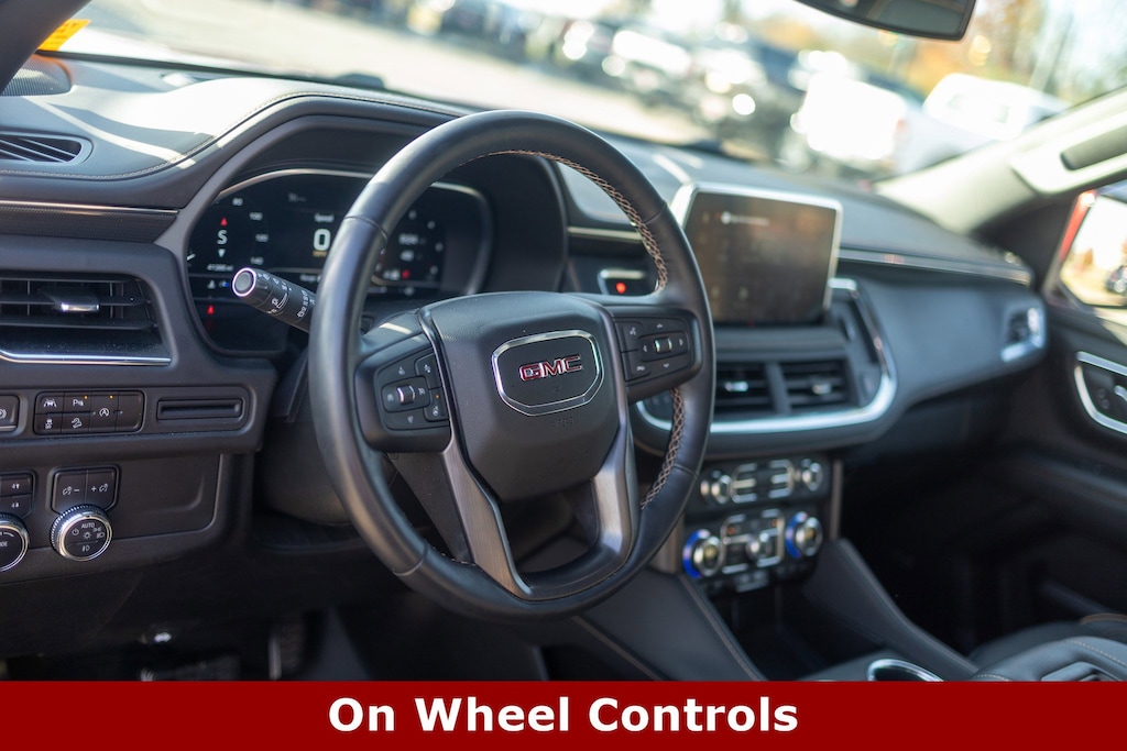 Jeff Wyler Acura of Dayton is very proud to offer this good-looking 2023 GMC Yukon AT4 in Volcanic Red Tintcoat. Floor Liner Package (LPO) (1st & 2nd Rows Premium Floor Liners (LPO), 3rd Row All-Weather Floor Liners (LPO), and All-Weather Cargo Mat (LPO)), Preferred Equipment Group 4SB (2 Presets For Outside Rearview Mirrors, 3 Years of GMC Connected Services, 3 Years of OnStar Safety & Security, 3rd Row 60/40 Power-Folding Split-Bench Seat, Black Roof-Mounted Luggage Rack Side Rails, Bose 9-Speaker Stereo Audio System Feature, Bright Front & Rear Door Sill Plates, Front High-Approach Angle Fascia, Hands-Free Power Programmable Rear Liftgate, Heated & Ventilated Driver & Front Passenger Seats, Heated 2nd Row Outboard Position Seats, Heated Driver & Front Passenger Seats, Heated Steering Wheel, Heavy-Duty Air Filter, Hill Descent Control, Inside Rear-View Auto-Dimming Mirror, Outside Heated Power-Adjustable Mirrors, Power Release 2nd Row 60/40 Split-Folding Bench Seat, Power Tilt & Telescopic Steering Column, Red Horizontal-Mounted Recovery Hooks, Safety Alert Seat, Universal Home Remote, and Wireless Charging), 4WD, 3 Years of OnStar Safety & Security (DISC), 3.23 Rear Axle Ratio, 3rd row seats: split-bench, 4-Wheel Disc Brakes, 9 Speakers, ABS brakes, Adaptive suspension, Air Conditioning, Alloy wheels, AM/FM radio: SiriusXM with 360L, AM/FM Stereo, Apple CarPlay/Android Auto, Auto High-beam Headlights, Auto-dimming door mirrors, Auto-dimming Rear-View mirror, Auto-leveling suspension, Automatic Emergency Braking, Automatic temperature control, Brake assist, Bumpers: body-color, Compass, Delay-off headlights, Driver door bin, Driver vanity mirror, Dual front impact airbags, Dual front side impact airbags, Dual-Pane Panoramic Power Sunroof, Electronic Stability Control, Emergency communication system: OnStar and GMC connected services capable, Following Distance Indicator, Forward Collision Alert, Four wheel independent suspension, Front & Rear Park Assist, Front anti-roll bar, Front Bucket Seats, Front Center Armrest, Front dual zone A/C, Front fog lights, Front Pedestrian Braking, Front reading lights, Fully automatic headlights, Garage door transmitter, Heated door mirrors, Heated front seats, Heated rear seats, Heated steering wheel, Illuminated entry, IntelliBeam Automatic High Beam On/Off, Lane Change Alert w/Side Blind Zone Alert, Lane Keep Assist w/Lane Departure Warning, Low tire pressure warning, Magnetic Ride Control Suspension, Memory seat, Navigation System, Occupant sensing airbag, Outside temperature display, Overhead airbag, Overhead console, Panic alarm, Passenger door bin, Passenger vanity mirror, Perforated Leather Seating Surfaces, Power door mirrors, Power driver seat, Power Liftgate, Power passenger seat, Power Release 2nd Row Bucket Seats, Power steering, Power windows, Power-Retractable Assist Steps, Rain sensing wipers, Rear air conditioning, Rear anti-roll bar, Rear Cross Traffic Alert, Rear reading lights, Rear seat center armrest, Rear window defroster, Rear window wiper, Remote keyless entry, Roof rack: rails only, Security system, SiriusXM w/360L, Speed control, Speed-sensing steering, Split folding rear seat, Spoiler, Sport Pedal Cover Kit (LPO), Steering wheel memory, Steering wheel mounted audio controls, Tachometer, Telescoping steering wheel, Tilt steering wheel, Traction control, Trip computer, Turn signal indicator mirrors, Variably intermittent wipers, Ventilated front seats, Voltmeter, and Wheels: 20" x 9" 6-Spoke Machined Aluminum Our PRE-OWNED vehicles are put through a rigorous 167- POINT QUALITY ASSURANCE INSPECTION along with an average amount of over $1,400.00 SPENT to recondition each vehicle so we can be sure to deliver you the highest quality vehicle like you deserve! ***ONLINE PRICE DOES NOT INCLUDE WYLER FAMILY FIRST PACKAGE*** Stop by 4136 Shelbyville Road to see for yourself, or give us a call @ 502-897-3151 to schedule your test drive! CARFAX One-Owner. Clean CARFAX.