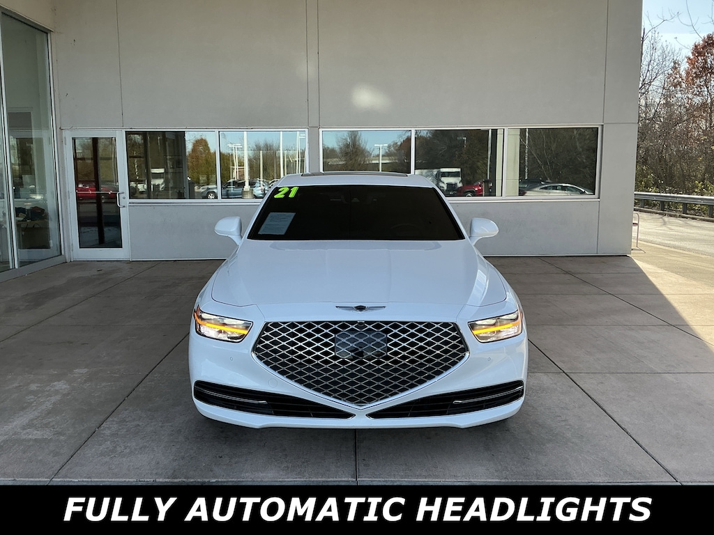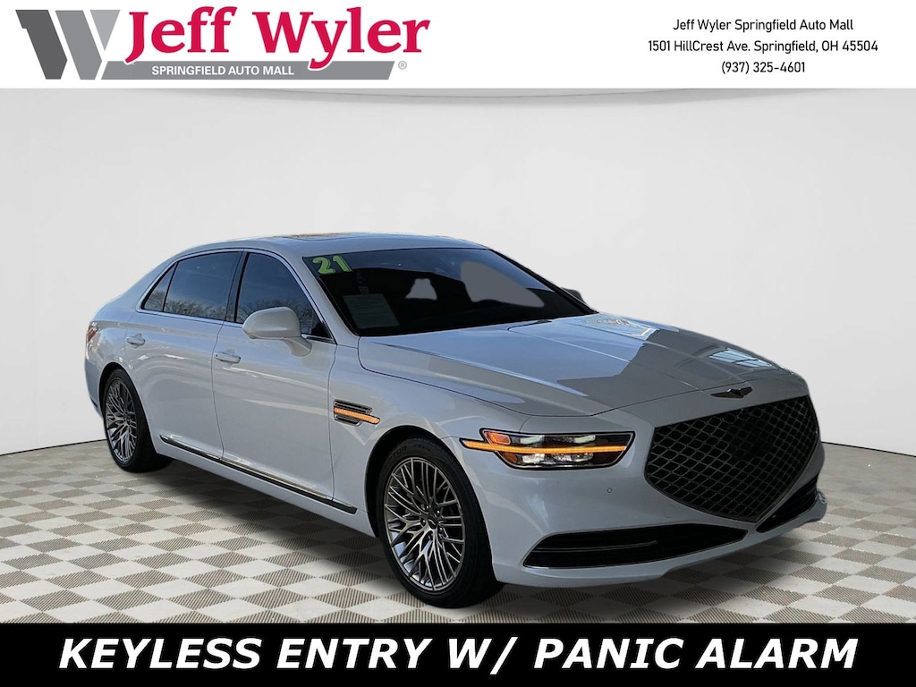 Jeff Wyler Springfield Auto Mall is excited to offer this attractive-looking 2021 Genesis G90 5.0 Ultimate in Uyuni White. Well equipped with: Multi-Spoke Wheel Option (02) (19" Multi-Spoke Wheels), 17 Speakers, 4-Wheel Disc Brakes, ABS brakes, Adaptive suspension, Air Conditioning, Alloy wheels, AM/FM radio: SiriusXM, Android Auto & Apple CarPlay, Anti-whiplash front head restraints, Auto High-beam Headlights, Auto tilt-away steering wheel, Auto-dimming door mirrors, Auto-dimming Rear-View mirror, Auto-leveling suspension, Automatic temperature control, Brake assist, Bumpers: body-color, Compass, Delay-off headlights, Door auto-latch, Driver door bin, Driver vanity mirror, Dual front impact airbags, Dual front side impact airbags, DVD-Audio, Electronic Stability Control, Emergency communication system: Genesis Connected Services, Four wheel independent suspension, Front anti-roll bar, Front Bucket Seats, Front Center Armrest, Front dual zone A/C, Front reading lights, Fully automatic headlights, Garage door transmitter: HomeLink, Genuine wood console insert, Genuine wood dashboard insert, Genuine wood door panel insert, Head restraints memory, Heads-Up Display, Heated & Ventilated Front Bucket Seats, Heated door mirrors, Heated front seats, Heated rear seats, Heated steering wheel, Illuminated entry, Knee airbag, Leather Shift Knob, Leather steering wheel, Low tire pressure warning, Memory seat, Nappa Leather Seating Surfaces, Navigation System, Occupant sensing airbag, Outside temperature display, Overhead airbag, Overhead console, Panic alarm, Passenger door bin, Passenger vanity mirror, Power adjustable front head restraints, Power adjustable rear head restraints, Power door mirrors, Power driver seat, Power moonroof, Power passenger seat, Power steering, Power windows, Radio data system, Radio: AM/FM/HD/SiriusXM/CD/DVD Audio System, Rain sensing wipers, Rear air conditioning, Rear anti-roll bar, Rear reading lights, Rear seat center armrest, Rear side impact airbag, Rear Window Blind, Rear window defroster, Remote CD player, Remote keyless entry, Security system, Speed control, Speed-sensing steering, Speed-Sensitive Wipers, Steering wheel memory, Steering wheel mounted audio controls, Tachometer, Telescoping steering wheel, Tilt steering wheel, Traction control, Trip computer, Turn signal indicator mirrors, Variably intermittent wipers, Ventilated front seats, Ventilated rear seats, and Wheels: 19" x 8.5J Fr & 19" x 9.5J Rr Chrome Alloy. Ask about available certifications. Used vehicles 10 years of age or newer with less than 100,000 miles are eligible for the Wyler Assurance Program, but eligible vehicles must pass our reconditioning process and multi-point inspection. Provided the vehicle passes inspection, vehicles will be eligible for the 6 month/6,000 mile limited warranty. The 6 month/6,000 mile limited warranty is NOT available on AS-IS vehicles, wholesale vehicles, lease buyback/pass-thru vehicles or un-inspected vehicles. Note that this program can also apply to vehicles where the remaining factory coverage is less than 6 months or 6,000 miles. Please check the Federal Trade Commission (FTC) Buyers guide on the vehicle for full details as to whether or not warranty coverage may apply. Contact Dealer for additional details. The Wyler Assurance 6 month/6,000 Mile limited warranty ends 6 months from the date of the Retail Purchase Agreement (BUYERS ORDER) or when the vehicle's odometer registers 6,000 additional miles to the mileage listed on the BUYERS ORDER, whichever comes first. Your Deductible - The warranty holder on your contract pays the first $100 of each covered repair.
