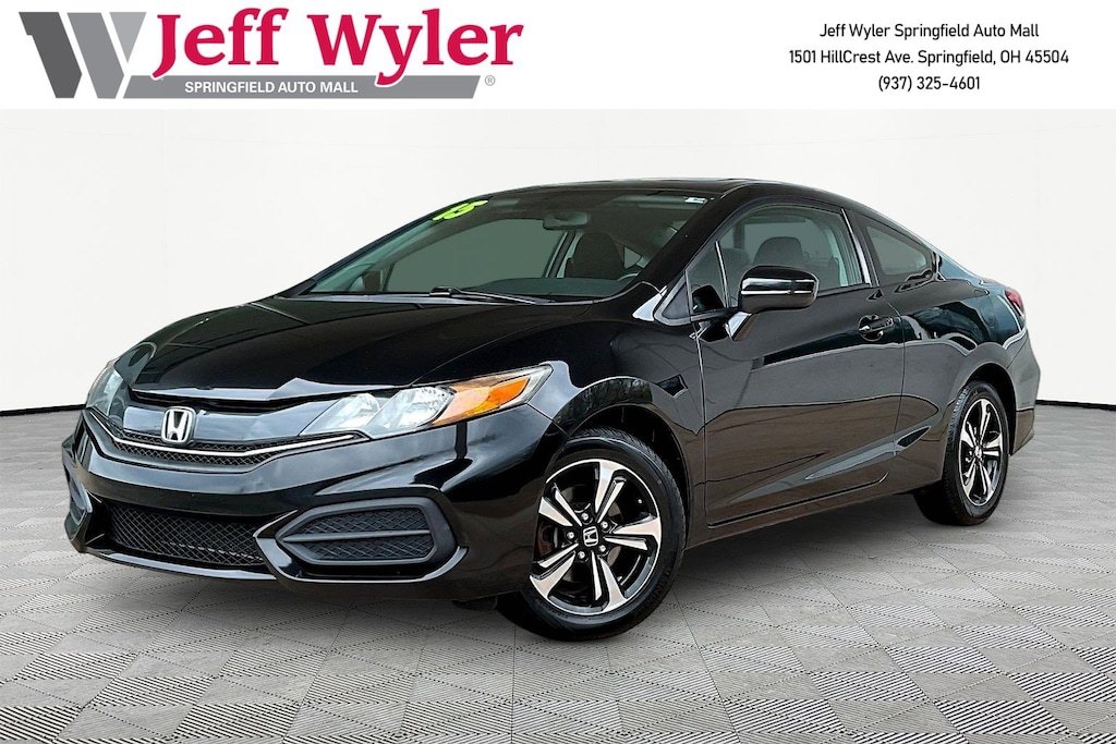 Jeff Wyler Springfield Auto Mall is very proud to offer this stunning-looking 2015 Honda Civic EX in Black. Well equipped with: 16" Alloy Wheels, 4-Wheel Disc Brakes, 7 Speakers, ABS brakes, Air Conditioning, Alloy wheels, AM/FM radio, Automatic temperature control, Brake assist, Bumpers: body-color, CD player, Cloth Seat Trim, Delay-off headlights, Driver door bin, Driver vanity mirror, Dual front impact airbags, Dual front side impact airbags, Electronic Stability Control, Exterior Parking Camera Rear, Four wheel independent suspension, Front anti-roll bar, Front Bucket Seats, Front Center Armrest, Front reading lights, Fully automatic headlights, Illuminated entry, Low tire pressure warning, Occupant sensing airbag, Outside temperature display, Overhead airbag, Panic alarm, Passenger door bin, Passenger vanity mirror, Power door mirrors, Power moonroof, Power steering, Power windows, Radio data system, Radio: 360-Watt AM/FM/CD Premium Audio System, Rear anti-roll bar, Rear window defroster, Reclining Front Bucket Seats, Remote keyless entry, Security system, Speed control, Speed-sensing steering, Split folding rear seat, Steering wheel mounted audio controls, Tachometer, Telescoping steering wheel, Tilt steering wheel, Traction control, Trip computer, and Variably intermittent wipers. Awards: * 2015 IIHS Top Safety Pick * 2015 KBB.com Brand Image AwardsKelley Blue Book Brand Image Awards are based on the Brand Watch(tm) study from Kelley Blue Book Market Intelligence. Award calculated among non-luxury shoppers. For more information, visit www.kbb.com. Kelley Blue Book is a registered trademark of Kelley Blue Book Co., Inc. Reviews: * * Our highest-rated compact car and Compact Car Best Buy for 2015 * Choice of sedan or coupe, plus sporty Si models * Choice of gasoline, hybrid and natural gas powertrains * Reliable, efficient and economical * Easy and spunky driving manners Source: KBB.com * Comfortable and composed ride; good fuel economy; spacious interior; wide variety of engines available; available coupe body style. Source: EdmundsAsk about available certifications. Used vehicles 10 years of age or newer with less than 100,000 miles are eligible for the Wyler Assurance Program, but eligible vehicles must pass our reconditioning process and multi-point inspection. Provided the vehicle passes inspection, vehicles will be eligible for the 6 month/6,000 mile limited warranty. The 6 month/6,000 mile limited warranty is NOT available on AS-IS vehicles, wholesale vehicles, lease buyback/pass-thru vehicles or un-inspected vehicles. Note that this program can also apply to vehicles where the remaining factory coverage is less than 6 months or 6,000 miles. Please check the Federal Trade Commission (FTC) Buyers guide on the vehicle for full details as to whether or not warranty coverage may apply. Contact Dealer for additional details. The Wyler Assurance 6 month/6,000 Mile limited warranty ends 6 months from the date of the Retail Purchase Agreement (BUYERS ORDER) or when the vehicle's odometer registers 6,000 additional miles to the mileage listed on the BUYERS ORDER, whichever comes first. Your Deductible - The warranty holder on your contract pays the first $100 of each covered repair.