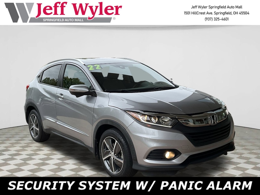 Jeff Wyler Springfield Auto Mall is proud to offer this great 2022 Honda HR-V EX in Silver. Well equipped with: 17" Machine-Finished Alloy Wheels, 4-Wheel Disc Brakes, 5.436 Axle Ratio, 6 Speakers, ABS brakes, Air Conditioning, Alloy wheels, AM/FM radio: SiriusXM, Apple CarPlay/Android Auto, Auto High-beam Headlights, Automatic temperature control, Brake assist, Bumpers: body-color, Cloth Seat Trim, Delay-off headlights, Driver door bin, Driver vanity mirror, Dual front impact airbags, Dual front side impact airbags, Electronic Stability Control, Emergency communication system: HondaLink, Exterior Parking Camera Rear, Forward collision: Collision Mitigation Braking System (CMBS) + FCW mitigation, Front anti-roll bar, Front Bucket Seats, Front Center Armrest, Front fog lights, Front reading lights, Front wheel independent suspension, Fully automatic headlights, Heated door mirrors, Heated Front Bucket Seats, Heated front seats, Illuminated entry, Low tire pressure warning, Occupant sensing airbag, Outside temperature display, Overhead airbag, Panic alarm, Passenger door bin, Passenger vanity mirror, Power door mirrors, Power moonroof, Power steering, Power windows, Radio data system, Radio: AM/FM/HD Audio System (180-Watt), Rear window defroster, Rear window wiper, Remote keyless entry, Roof rack: rails only, Security system, SiriusXM, Speed control, Speed-sensing steering, Split folding rear seat, Spoiler, Steering wheel mounted audio controls, Tachometer, Telescoping steering wheel, Tilt steering wheel, Traction control, Trip computer, Turn signal indicator mirrors, and Variably intermittent wipers. Ask about available certifications. Used vehicles 10 years of age or newer with less than 100,000 miles are eligible for the Wyler Assurance Program, but eligible vehicles must pass our reconditioning process and multi-point inspection. Provided the vehicle passes inspection, vehicles will be eligible for the 6 month/6,000 mile limited warranty. The 6 month/6,000 mile limited warranty is NOT available on AS-IS vehicles, wholesale vehicles, lease buyback/pass-thru vehicles or un-inspected vehicles. Note that this program can also apply to vehicles where the remaining factory coverage is less than 6 months or 6,000 miles. Please check the Federal Trade Commission (FTC) Buyers guide on the vehicle for full details as to whether or not warranty coverage may apply. Contact Dealer for additional details. The Wyler Assurance 6 month/6,000 Mile limited warranty ends 6 months from the date of the Retail Purchase Agreement (BUYERS ORDER) or when the vehicle's odometer registers 6,000 additional miles to the mileage listed on the BUYERS ORDER, whichever comes first. Your Deductible - The warranty holder on your contract pays the first $100 of each covered repair.