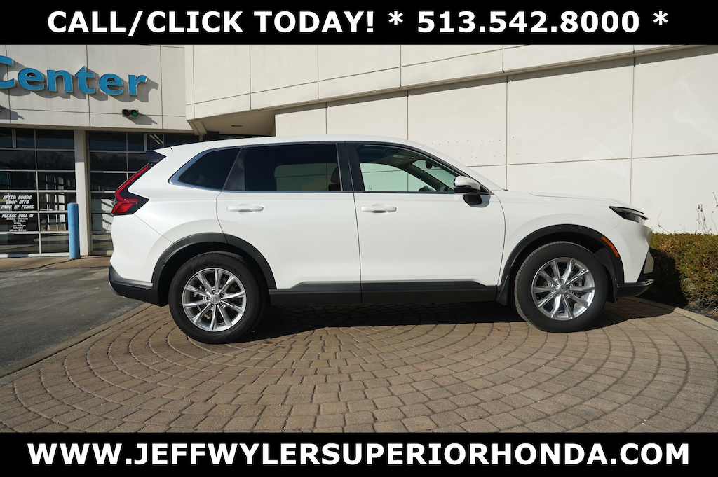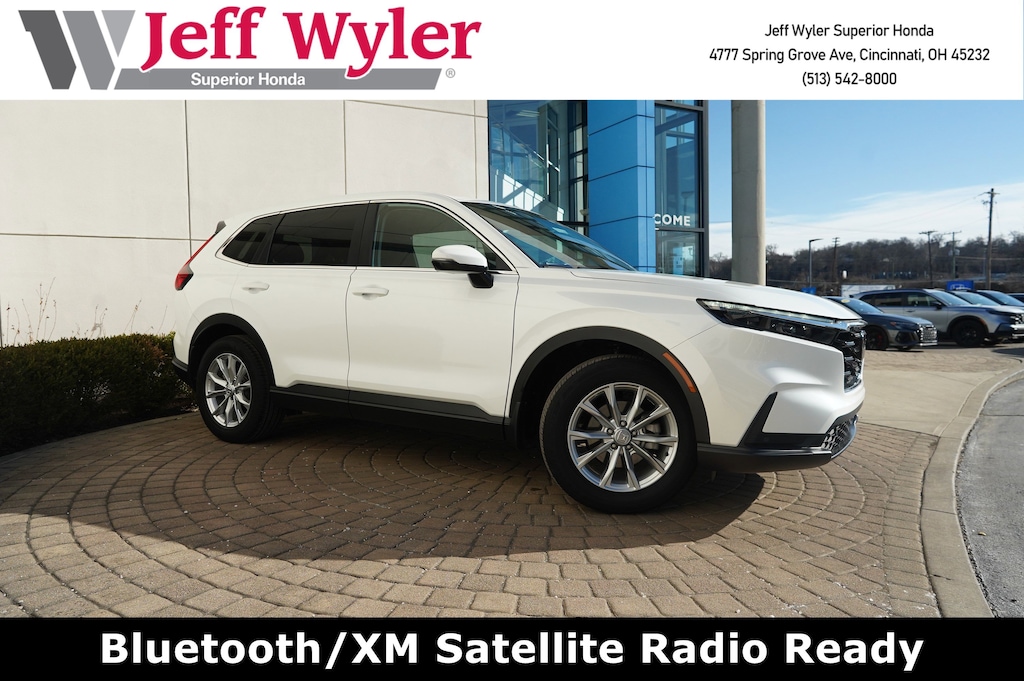 Jeff Wyler Superior Honda is very proud to offer this wonderful-looking 2024 Honda CR-V EX-L in White. BLUETOOTH, LEATHER, MOONROOF SUNROOF, CLEAN CARFAX...NO ACCIDENTS, HONDA CERTIFIED!, REMAINDER OF FACTORY WARRANTY, RECENT SUPERIOR TRADE, BOUGHT, SERVICED AND TRADED AT SUPERIOR, and ONE OWNER CR-V EX-L, HondaTrue Certified Certified, 4D Sport Utility, 1.5L I4 DOHC 16V, CVT, AWD, White, Black Leather, 4-Wheel Disc Brakes, 5.64 Axle Ratio, 8 Speakers, ABS brakes, Adaptive Cruise Control: Adaptive Cruise Control (ACC) with Low-Speed Follow, Air Conditioning, Alloy wheels, AM/FM radio: SiriusXM, Auto High-beam Headlights, Auto-dimming Rear-View mirror, Automatic temperature control, Blind Spot Information (BSI) System warning, Brake assist, Bumpers: body-color, Compass, Delay-off headlights, Driver door bin, Driver vanity mirror, Dual front impact airbags, Dual front side impact airbags, Electronic Stability Control, Exterior Parking Cameras, Four wheel independent suspension, Front anti-roll bar, Front Bucket Seats, Front Center Armrest, Front dual zone A/C, Front reading lights, Fully automatic headlights, Heated door mirrors, Heated Front Bucket Seats, Heated front seats, Illuminated entry, Knee airbag, Leather Seat Trim, Leather Shift Knob, Leather steering wheel, Low tire pressure warning, Memory seat, Occupant sensing airbag, Outside temperature display, Overhead airbag, Overhead console, Panic alarm, Passenger door bin, Passenger vanity mirror, Power door mirrors, Power driver seat, Power Liftgate, Power moonroof, Power passenger seat, Power steering, Power windows, Radio data system, Radio: 320-Watt AM/FM/HD/SiriusXM Audio System, Rear anti-roll bar, Rear reading lights, Rear seat center armrest, Rear side impact airbag, Rear window defroster, Rear window wiper, Remote keyless entry, Security system, Speed control, Speed-sensing steering, Speed-Sensitive Wipers, Split folding rear seat, Spoiler, Steering wheel mounted audio controls, Tachometer, Telescoping steering wheel, Tilt steering wheel, Traction control, Trip computer, Turn signal indicator mirrors, Variably intermittent wipers, Wheels: 18" Sparkle Silver Metallic, and Wireless Apple CarPlay/Wireless Android Auto Our PRE-OWNED vehicles are put through a rigorous 167- POINT QUALITY ASSURANCE INSPECTION along with an average amount of over $1,400.00 SPENT to recondition each vehicle so we can be sure to deliver you the highest quality vehicle like you deserve! ***ONLINE PRICE DOES NOT INCLUDE WYLER FAMILY FIRST PACKAGE*** Stop by 4777 Spring Grove Ave. Road to see for yourself, or give us a call @ 283-209-1858 to schedule your test drive!Vehicle pricing includes all offers and incentives. Due to limited inventory, offers and pricing are all subject to change. Tax, Title, Tags and $387 doc fees are not included in vehicle price shown and must be paid by the purchaser. Doc fees vary by location. Financing w/approved credit. Mileage est. Based on current EPA estimates reflecting new EPA methods beginning w/ 2008 models. For comparison only. Do not compare to pre 2008 models. Actual mileage may vary based on how you drive and maintain your vehicle. Information on this site includes 3rd party data believed to be reliable, subject to change without notice. Jeff Wyler reserves the right to correct any errors and/or omissions in the compilation or presentation of this data and makes no representations express or implied to any prospective purchaser as to the vehicle's condition, specifications, history, equipment or equipment function, price or warranties. This vehicle may be subject to an open recall that has not been repaired. Please consult safercar.gov for more information on the current status. It is the responsibility of purchaser to confirm any data prior to purchase. Other than MSRP, all offers only apply to this vehicle and are subject to change. Vehicle prices are subject to change and all vehicles are subject to prior sale and may not be available when you are