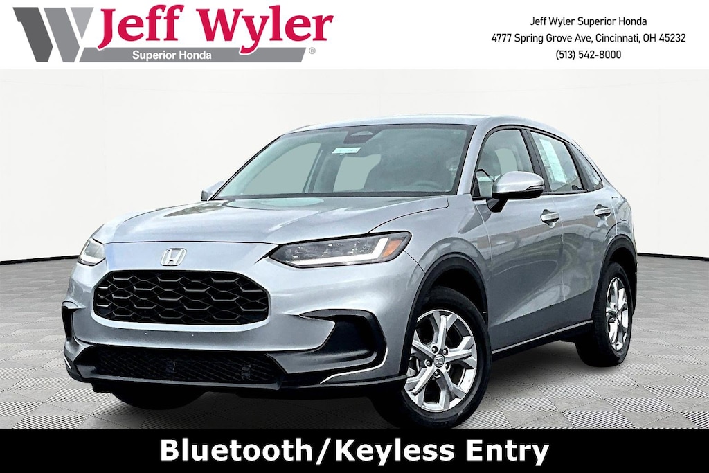 Jeff Wyler Superior Honda is very proud to offer this good-looking 2024 Honda HR-V LX in Lunar Silver Metallic. BLUETOOTH, CLEAN CARFAX...NO ACCIDENTS, HONDA CERTIFIED!, REMAINDER OF FACTORY WARRANTY, RECENT SUPERIOR TRADE, BOUGHT, SERVICED AND TRADED AT SUPERIOR, and ONE OWNER HR-V LX, HondaTrue Certified Certified, 4D Sport Utility, 2.0L I4 DOHC 16V i-VTEC, CVT, AWD, Lunar Silver Metallic, Black Cloth, 4 Speakers, 4-Wheel Disc Brakes, 5.436 Axle Ratio, ABS brakes, Adaptive Cruise Control: Adaptive Cruise Control (ACC) with Low-Speed Follow, Air Conditioning, Alloy wheels, AM/FM radio, Apple CarPlay/Android Auto, Auto High-beam Headlights, Automatic temperature control, Brake assist, Bumpers: body-color, Cloth Seat Trim, Delay-off headlights, Driver door bin, Driver vanity mirror, Dual front impact airbags, Dual front side impact airbags, Electronic Stability Control, Emergency communication system: HondaLink, Exterior Parking Cameras, Four wheel independent suspension, Front anti-roll bar, Front Bucket Seats, Front Center Armrest, Front reading lights, Fully automatic headlights, Illuminated entry, Knee airbag, Low tire pressure warning, Occupant sensing airbag, Outside temperature display, Overhead airbag, Panic alarm, Passenger door bin, Passenger vanity mirror, Power door mirrors, Power steering, Power windows, Radio data system, Radio: 180-Watt Audio System w/4 Speakers, Rear anti-roll bar, Rear reading lights, Rear side impact airbag, Rear window defroster, Rear window wiper, Remote keyless entry, Security system, Speed control, Speed-sensing steering, Split folding rear seat, Spoiler, Steering wheel mounted audio controls, Tachometer, Telescoping steering wheel, Tilt steering wheel, Traction control, Trip computer, Variably intermittent wipers, and Wheels: 17" Silver Painted Alloy Our PRE-OWNED vehicles are put through a rigorous 167- POINT QUALITY ASSURANCE INSPECTION along with an average amount of over $1,400.00 SPENT to recondition each vehicle so we can be sure to deliver you the highest quality vehicle like you deserve! ***ONLINE PRICE DOES NOT INCLUDE WYLER FAMILY FIRST PACKAGE*** Stop by 4777 Spring Grove Ave. Road to see for yourself, or give us a call @ 283-209-1858 to schedule your test drive!Vehicle pricing includes all offers and incentives. Due to limited inventory, offers and pricing are all subject to change. Tax, Title, Tags and $387 doc fees are not included in vehicle price shown and must be paid by the purchaser. Doc fees vary by location. Financing w/approved credit. Mileage est. Based on current EPA estimates reflecting new EPA methods beginning w/ 2008 models. For comparison only. Do not compare to pre 2008 models. Actual mileage may vary based on how you drive and maintain your vehicle. Information on this site includes 3rd party data believed to be reliable, subject to change without notice. Jeff Wyler reserves the right to correct any errors and/or omissions in the compilation or presentation of this data and makes no representations express or implied to any prospective purchaser as to the vehicle's condition, specifications, history, equipment or equipment function, price or warranties. This vehicle may be subject to an open recall that has not been repaired. Please consult safercar.gov for more information on the current status. It is the responsibility of purchaser to confirm any data prior to purchase. Other than MSRP, all offers only apply to this vehicle and are subject to change. Vehicle prices are subject to change and all vehicles are subject to prior sale and may not be available when you are ready to purchase. Prices listed on any other website may not be accepted. Dealership advertises the sale of vehicles through a number of different channels and cannot always control when they are updated. Wyler? and Jeff Wyler? are registered trademarks of the Jeff Wyler Automotive Family, Inc.