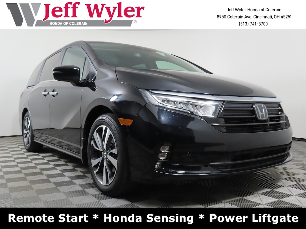 Jeff Wyler Honda of Colerain is very proud to offer this great 2024 Honda Odyssey Touring in Crystal Black Pearl. Well equipped with: 3.61 Axle Ratio, 3rd row seats: split-bench, 4-Wheel Disc Brakes, 7 Speakers, A/V remote: CabinControl, ABS brakes, Adaptive Cruise Control: Adaptive Cruise Control (ACC) with Low-Speed Follow, Air Conditioning, Alloy wheels, AM/FM radio: SiriusXM, Anti-whiplash front head restraints, Apple CarPlay/Android Auto, Auto High-beam Headlights, Auto-dimming Rear-View mirror, Automatic temperature control, Blind Spot Information (BSI) System warning, Brake assist, Bumpers: body-color, CD player, Compass, Delay-off headlights, Driver door bin, Driver vanity mirror, Driver's Seat Mounted Armrest, Dual front impact airbags, Dual front side impact airbags, DVD-Audio, Electronic Stability Control, Emergency communication system: HondaLink, Exterior Parking Camera Rear, Four wheel independent suspension, Front anti-roll bar, Front Bucket Seats, Front dual zone A/C, Front fog lights, Front reading lights, Fully automatic headlights, Garage door transmitter: HomeLink, Headphones, Heated door mirrors, Heated Front Bucket Seats, Heated front seats, Illuminated entry, Knee airbag, Lane departure: Lane Keeping Assist System (LKAS) active, Leather Seat Trim, Leather steering wheel, Low tire pressure warning, Memory seat, Navigation system: Honda Satellite-Linked Navigation System, Occupant sensing airbag, Outside temperature display, Overhead airbag, Overhead console, Panic alarm, Passenger door bin, Passenger seat mounted armrest, Passenger vanity mirror, Power door mirrors, Power driver seat, Power Liftgate, Power moonroof, Power passenger seat, Power steering, Power windows, Radio data system, Radio: 160-Watt AM/FM/HD/SiriusXM Audio System, Rear air conditioning, Rear anti-roll bar, Rear audio controls, Rear reading lights, Rear seat center armrest, Rear window defroster, Rear window wiper, Reclining 3rd row seat, Remote keyless entry, Security system, Speed control, Speed-sensing steering, Speed-Sensitive Wipers, Split folding rear seat, Spoiler, Steering wheel mounted audio controls, Tachometer, Telescoping steering wheel, Tilt steering wheel, Traction control, Trip computer, Turn signal indicator mirrors, Variably intermittent wipers, and Wheels: 19" Machine-Finished Alloy.