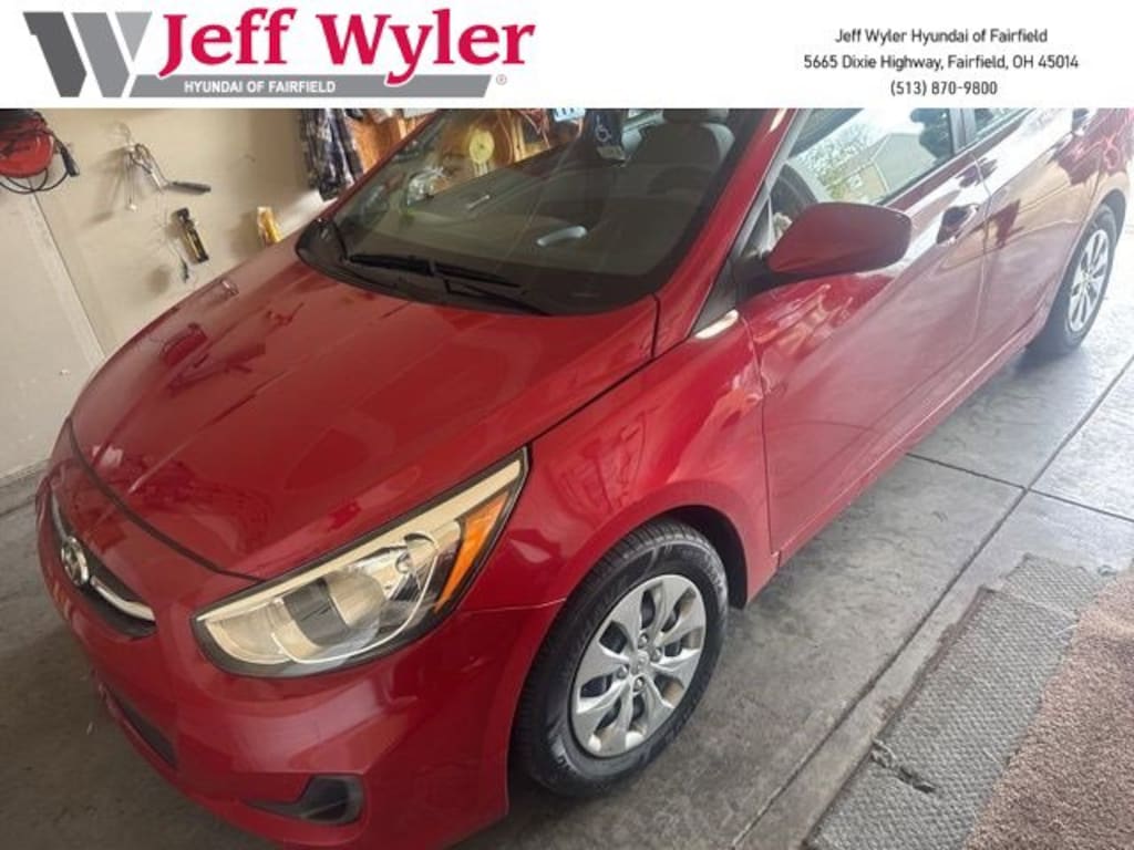 CARFAX One-Owner. Jeff Wyler Hyundai of Fairfield is very proud to offer this outstanding 2016 Hyundai Accent SE in Boston Red Metallic. Well equipped with: Popular Equipment Package 02 (Bluetooth® Hands-Free Phone System, Cruise Control, Heated Exterior Mirrors w/Drivers Blind Spot, Sliding Armrest Storage Box, Steering-Wheel-Mounted Audio Controls, and Tilt & Telescope Steering Wheel), Gray Cloth, Android Auto, Apple CarPlay, CALL NOW FOR YOUR VIP APPOINTMENT 513-870-9800, FULLY SERVICED w/RECORDS, GUARANTEED FINANCING!! NO MATTER YOUR SITUATION WE CAN GET AN APPROVAL!!, THE #1 Volume dealer in the region! Come see why for yourself Today!!, WE PAY MORE FOR YOUR TRADE!!, 6 Speakers, ABS brakes, Air Conditioning, AM/FM radio: SiriusXM, AM/FM/CD/MP3 Audio System, Anti-whiplash front head restraints, Brake assist, Bumpers: body-color, Cargo Net, Cargo Tray, Carpeted Floor Mats, CD player, Cloth Seat Trim, Driver door bin, Driver vanity mirror, Dual front impact airbags, Dual front side impact airbags, Electronic Stability Control, Front anti-roll bar, Front Bucket Seats, Front reading lights, Front wheel independent suspension, Illuminated entry, Low tire pressure warning, Occupant sensing airbag, Option Group 02, Outside temperature display, Overhead airbag, Overhead console, Panic alarm, Passenger door bin, Passenger vanity mirror, Power door mirrors, Power steering, Power windows, Rear window defroster, Remote keyless entry, Speed-sensing steering, Split folding rear seat, Tachometer, Tilt steering wheel, Traction control, Trip computer, and Wheels: 14" x 5.0J Steel w/Cover. Reviews: * Strong acceleration; comfortable and quiet ride; spacious cabin has an upscale ambience; long warranty. Source: EdmundsTO CHECK ON THE AVAILABILITY OF THIS VEHICLE REACH OUT TO ONE OF OUR TEAM MEMBERS!! ALSO SHOP ONLINE AT https://www.jeffwylerhyundaioffairfield.com/ Proudly Serving: Cincinnati, Dayton, Columbus, Louisville, Lexington, Indianapolis, Hamilton, Florence, Alexandria, Beavercreek, Springdale, West Chester, Monroe, Fairfield, Kenwood, Newport and all of greater Cincinnati Ohio, Indiana, and Northern Kentucky.