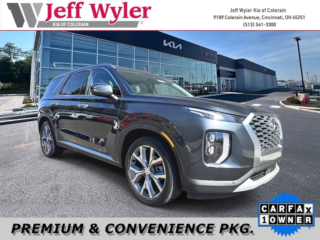 Jeff Wyler Kia of Colerain is excited to offer this charming 2020 Hyundai Palisade SEL in Steel Graphite. Convenience Package P2 (115-Volt AC Power Outlet, 3rd Row USB Outlets, 7" High Resolution Cluster Display, Auto Leveling Rear Suspension, Hands-Free Smart Liftgate w/Auto Open, LED Taillights, Parking Distance Warning - Forward, Rear Side Window Sunshades, Ultrasonic Rear Seat Occupant Minder, Wheels: 20"x 7.5J Split 5-Spoke Machined Alloy, and Wireless Phone Charger), Premium & 8-Seat (8-Passenger Bench Seating P4 and Power Sunroof P5), Premium Package P3 (8-Way Power Adjustable Passenger Seat, Artificial Leather-Wrapped Dashboard, Bi-LED Headlights, Heated 2nd Row Seats, Heated Steering Wheel, Integrated Memory System, Leather Seat Trim, and Power 3rd Row Seating), 3.648 Axle Ratio, 3rd row seats: split-bench, 4-Wheel Disc Brakes, 6 Speakers, ABS brakes, Air Conditioning, Alloy wheels, AM/FM radio, Apple CarPlay & Android Auto, Auto High-beam Headlights, Auto-dimming Rear-View mirror, Automatic temperature control, Brake assist, Bumpers: body-color, Carpeted Floor Mats, Delay-off headlights, Driver door bin, Driver vanity mirror, Dual front impact airbags, Dual front side impact airbags, Electronic Stability Control, Four wheel independent suspension, Front anti-roll bar, Front Bucket Seats, Front Center Armrest, Front dual zone A/C, Front reading lights, Fully automatic headlights, Garage door transmitter: HomeLink, Heated door mirrors, Heated Front Bucket Seats, Heated front seats, Illuminated entry, Knee airbag, Low tire pressure warning, Occupant sensing airbag, Outside temperature display, Overhead airbag, Overhead console, Panic alarm, Passenger door bin, Passenger vanity mirror, Power door mirrors, Power driver seat, Power steering, Power windows, Radio data system, Radio: AM/FM/MP3 Display Audio, Rear air conditioning, Rear anti-roll bar, Rear window defroster, Rear window wiper, Reclining 3rd row seat, Remote keyless entry, Security system, Speed control, Speed-sensing steering, Split folding rear seat, Spoiler, Stain Resistant Cloth Seat Trim, Steering wheel mounted audio controls, Tachometer, Telescoping steering wheel, Tilt steering wheel, Tow Hitch, Traction control, Trip computer, Turn signal indicator mirrors, Variably intermittent wipers, and Wheels: 18" x 7.5J Machine Finish Alloy Our PRE-OWNED vehicles are put through a rigorous 167- POINT QUALITY ASSURANCE INSPECTION along with an average amount of over $1,400.00 SPENT to recondition each vehicle so we can be sure to deliver you the highest quality vehicle like you deserve! ***ONLINE PRICE DOES NOT INCLUDE WYLER FAMILY FIRST PACKAGE***