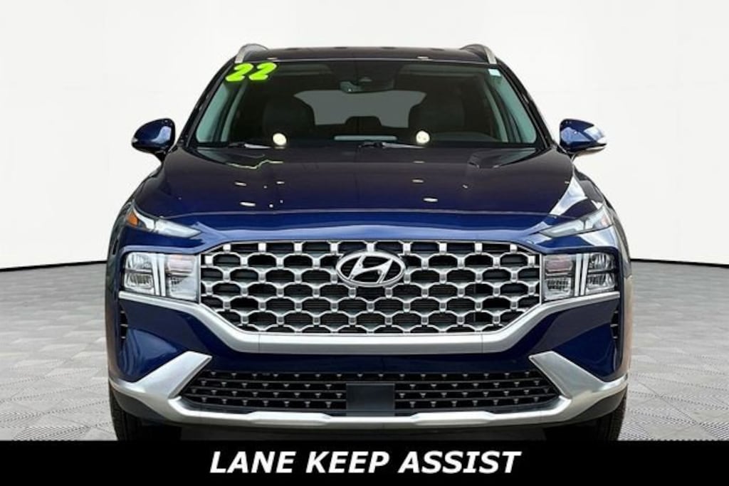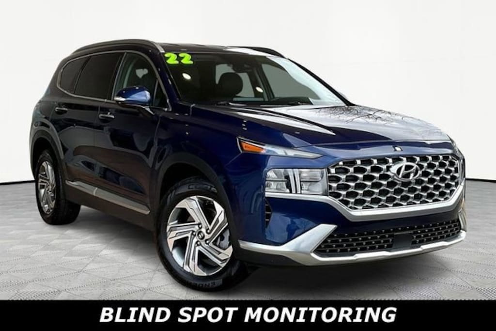 Jeff Wyler Springfield Auto Mall is very proud to offer this good-looking 2022 Hyundai Santa Fe SEL in Stormy Blue. Well equipped with: Convenience Package (DISC) (12.3 LCD Multi-Information Display, Acoustic-Laminated Front Side Windows, Auto-Dimming Rear-View Mirror, Dual Automatic Temperature Control, Hands-Free Smart Liftgate w/Hands-Free Auto Open, Heated Side Mirrors w/Turn Signal Indicators, Hyundai Digital Key, Leather Wrapped Steering Wheel, Manual Rear Side Sunshades, Option Group 02, Power Release 2nd Row Seats, Puddle Lamps, and Ultrasonic Rear Occupant Alert), 18 x 7.5J Alloy Wheels, 4-Wheel Disc Brakes, 6 Speakers, ABS brakes, Air Conditioning, Alloy wheels, AM/FM radio: SiriusXM, Apple CarPlay & Android Auto, Auto High-beam Headlights, Axle Ratio: 3.798, Brake assist, Bumpers: body-color, Cargo Cover/Screen, Cargo Net, Cargo Tray, Carpeted Floor Mats, Delay-off headlights, Driver door bin, Driver vanity mirror, Dual front impact airbags, Dual front side impact airbags, Electronic Stability Control, Emergency communication system, Exterior Parking Camera Rear, Four wheel independent suspension, Front anti-roll bar, Front Bucket Seats, Front Center Armrest, Front reading lights, Fully automatic headlights, Heated door mirrors, Heated Front Bucket Seats, Heated front seats, Illuminated entry, Low tire pressure warning, Occupant sensing airbag, Outside temperature display, Overhead airbag, Overhead console, Panic alarm, Passenger door bin, Passenger vanity mirror, Power door mirrors, Power driver seat, Power steering, Power windows, Radio: AM/FM Display Audio, Rear anti-roll bar, Rear seat center armrest, Rear window defroster, Rear window wiper, Remote keyless entry, Security system, Speed control, Speed-sensing steering, Split folding rear seat, Spoiler, Steering wheel mounted audio controls, Tachometer, Telescoping steering wheel, Tilt steering wheel, Traction control, Trip computer, Variably intermittent wipers, and YES Essentials Stain-Resistant Cloth Seat Trim. Ask about available certifications. Used vehicles 10 years of age or newer with less than 100,000 miles are eligible for the Wyler Assurance Program, but eligible vehicles must pass our reconditioning process and multi-point inspection. Provided the vehicle passes inspection, vehicles will be eligible for the 6 month/6,000 mile limited warranty. The 6 month/6,000 mile limited warranty is NOT available on AS-IS vehicles, wholesale vehicles, lease buyback/pass-thru vehicles or un-inspected vehicles. Note that this program can also apply to vehicles where the remaining factory coverage is less than 6 months or 6,000 miles. Please check the Federal Trade Commission (FTC) Buyers guide on the vehicle for full details as to whether or not warranty coverage may apply. Contact Dealer for additional details. The Wyler Assurance 6 month/6,000 Mile limited warranty ends 6 months from the date of the Retail Purchase Agreement (BUYERS ORDER) or when the vehicle's odometer registers 6,000 additional miles to the mileage listed on the BUYERS ORDER, whichever comes first. Your Deductible - The warranty holder on your contract pays the first $100 of each covered repair.
