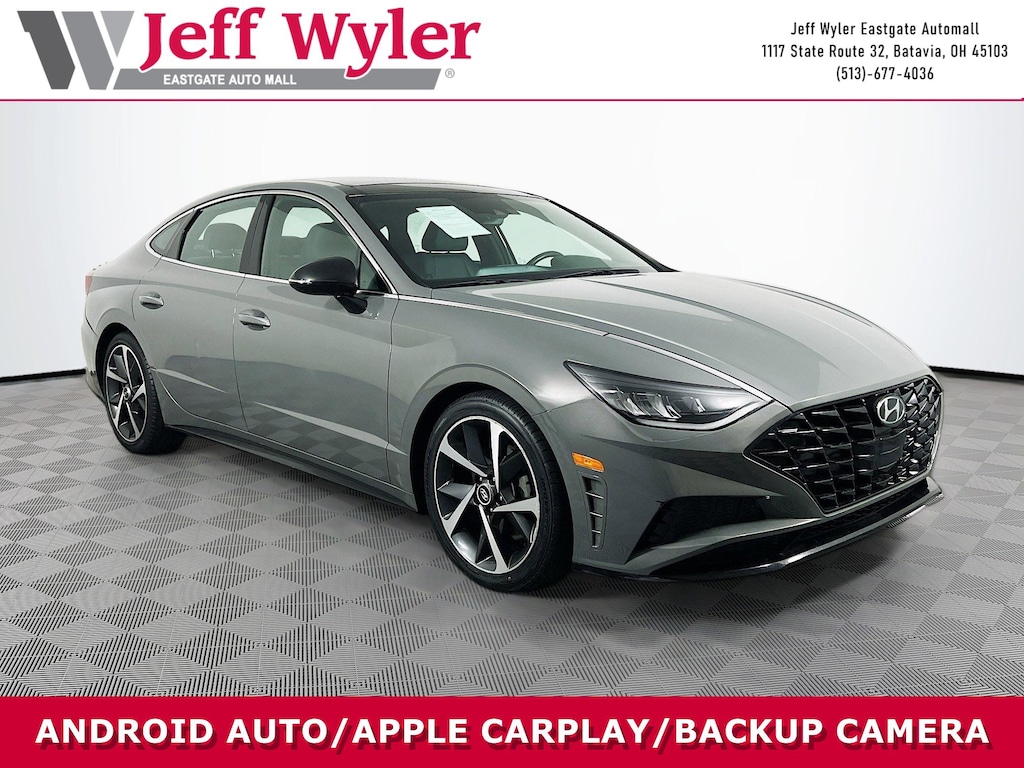 Jeff Wyler Eastgate Auto Mall is pleased to offer this terrific-looking 2022 Hyundai Sonata SEL Plus in Hampton Gray. Well equipped with: Option Group 01, 12 Speakers, 19" x 8.0J Aluminum Alloy Wheels, 4-Wheel Disc Brakes, ABS brakes, Air Conditioning, Alloy wheels, AM/FM radio: SiriusXM, Apple CarPlay & Android Auto, Auto High-beam Headlights, Auto-dimming Rear-View mirror, Automatic temperature control, Brake assist, Bumpers: body-color, Cargo Net, Carpeted Floor Mats, Delay-off headlights, Driver door bin, Driver vanity mirror, Dual front impact airbags, Dual front side impact airbags, Electronic Stability Control, Emergency communication system: Blue Link Connected Car Service (3-year complimentary subscription), Exterior Parking Camera Rear, Four wheel independent suspension, Front anti-roll bar, Front Bucket Seats, Front Center Armrest, Front dual zone A/C, Front reading lights, Fully automatic headlights, Heated door mirrors, Heated Front Bucket Seats, Heated front seats, Illuminated entry, Knee airbag, Leather steering wheel, Leatherette Seating Surfaces, Low tire pressure warning, Navigation System, Occupant sensing airbag, Outside temperature display, Overhead airbag, Overhead console, Panic alarm, Passenger door bin, Passenger vanity mirror, Power door mirrors, Power driver seat, Power moonroof, Power steering, Power windows, Radio data system, Radio: AM/FM/MP3/HD/SiriusXM Display Audio w/Nav, Rear anti-roll bar, Rear Bumper Applique, Rear seat center armrest, Rear side impact airbag, Rear window defroster, Remote keyless entry, Reversible Cargo Tray, Security system, Speed control, Speed-sensing steering, Speed-Sensitive Wipers, Split folding rear seat, Steering wheel mounted audio controls, Tachometer, Telescoping steering wheel, Tilt steering wheel, Traction control, Trip computer, Turn signal indicator mirrors, and Variably intermittent wipers. Ask about available certifications. Used vehicles 10 years of age or newer with less than 100,000 miles are eligible for the Wyler Assurance Program, but eligible vehicles must pass our reconditioning process and multi-point inspection. Provided the vehicle passes inspection, vehicles will be eligible for the 6 month/6,000 mile limited warranty. The 6 month/6,000 mile limited warranty is NOT available on AS-IS vehicles, wholesale vehicles, lease buyback/pass-thru vehicles or un-inspected vehicles. Note that this program can also apply to vehicles where the remaining factory coverage is less than 6 months or 6,000 miles. Please check the Federal Trade Commission (FTC) Buyers guide on the vehicle for full details as to whether or not warranty coverage may apply. Contact Dealer for additional details. The Wyler Assurance 6 month/6,000 Mile limited warranty ends 6 months from the date of the Retail Purchase Agreement (BUYERS ORDER) or when the vehicle's odometer registers 6,000 additional miles to the mileage listed on the BUYERS ORDER, whichever comes first. Your Deductible - The warranty holder on your contract pays the first $100 of each covered repair.