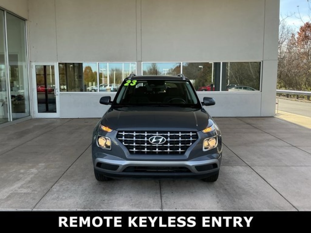Jeff Wyler Springfield Auto Mall is honored to offer this good-looking 2023 Hyundai Venue SEL in Ecotronic Gray. Well equipped with: Option Group 01, 4-Wheel Disc Brakes, 6 Speakers, 6.052 Axle Ratio, 6.5J x 17 Alloy Wheels, ABS brakes, Air Conditioning, Alloy wheels, AM/FM radio, Apple CarPlay & Android Auto, Auto High-beam Headlights, Automatic temperature control, Brake assist, Bumpers: body-color, Cloth Seat Trim, Delay-off headlights, Driver door bin, Driver vanity mirror, Dual front impact airbags, Dual front side impact airbags, Electronic Stability Control, Front anti-roll bar, Front Bucket Seats, Front Center Armrest, Front reading lights, Front wheel independent suspension, Fully automatic headlights, Illuminated entry, Leather Shift Knob, Leather steering wheel, Low tire pressure warning, Occupant sensing airbag, Outside temperature display, Overhead airbag, Overhead console, Panic alarm, Passenger door bin, Passenger vanity mirror, Power door mirrors, Power moonroof, Power steering, Power windows, Radio: AM/FM/HD Display Audio, Rear window defroster, Rear window wiper, Remote keyless entry, Roof rack: rails only, Security system, Speed control, Speed-sensing steering, Split folding rear seat, Spoiler, Steering wheel mounted audio controls, Tachometer, Telescoping steering wheel, Tilt steering wheel, Traction control, Trip computer, and Variably intermittent wipers. Ask about available certifications. Used vehicles 10 years of age or newer with less than 100,000 miles are eligible for the Wyler Assurance Program, but eligible vehicles must pass our reconditioning process and multi-point inspection. Provided the vehicle passes inspection, vehicles will be eligible for the 6 month/6,000 mile limited warranty. The 6 month/6,000 mile limited warranty is NOT available on AS-IS vehicles, wholesale vehicles, lease buyback/pass-thru vehicles or un-inspected vehicles. Note that this program can also apply to vehicles where the remaining factory coverage is less than 6 months or 6,000 miles. Please check the Federal Trade Commission (FTC) Buyers guide on the vehicle for full details as to whether or not warranty coverage may apply. Contact Dealer for additional details. The Wyler Assurance 6 month/6,000 Mile limited warranty ends 6 months from the date of the Retail Purchase Agreement (BUYERS ORDER) or when the vehicle's odometer registers 6,000 additional miles to the mileage listed on the BUYERS ORDER, whichever comes first. Your Deductible - The warranty holder on your contract pays the first $100 of each covered repair.
