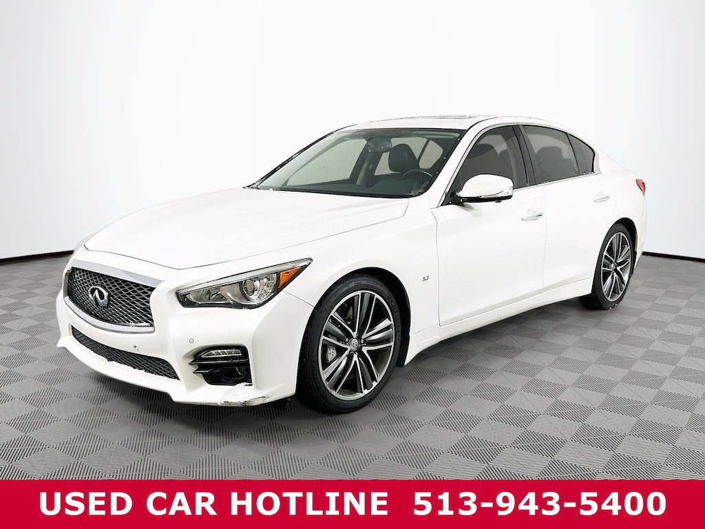 Jeff Wyler Eastgate Auto Mall is pumped up to offer this gorgeous-looking 2014 INFINITI Q50 Sport in Moonlight White. Well equipped with: Deluxe Touring Package (60/40 Split-Folding Rear Seats, Around View Monitor w/Moving Object Detection, Auto-Dimming Outside Mirrors w/Reverse Tilt-Down, Direct Adaptive Steering, Dual Occupant Memory System For Driver's Seat, Maple Wood Trim, Power Tilt & Telescopic Steering Column, and Rain-Sensing Front Windshield Wipers), Navigation Package (INFINITI InTouch Navigation System), 14 Speakers, 4-Wheel Disc Brakes, ABS brakes, Activation Disclaimer, Air Conditioning, Alloy wheels, AM/FM radio: SiriusXM, Anti-whiplash front head restraints, Auto-dimming Rear-View mirror, Automatic temperature control, BOSE Centerpoint Simulated Surround, Brake assist, Bumpers: body-color, CD player, Compass, Delay-off headlights, Driver door bin, Driver vanity mirror, Dual front impact airbags, Dual front side impact airbags, Electronic Stability Control, Floor Mats, Four wheel independent suspension, Front anti-roll bar, Front Bucket Seats, Front Center Armrest, Front dual zone A/C, Front fog lights, Front reading lights, Fully automatic headlights, Garage door transmitter: HomeLink, Heated door mirrors, Heated front seats, Heated Sport Front Seats, Illuminated entry, INFINITI Studio on Wheels by Bose, Leather Shift Knob, Leather steering wheel, Leather-Appointed Seats, Literature Kit, Low tire pressure warning, Occupant sensing airbag, Outside temperature display, Overhead airbag, Overhead console, Panic alarm, Passenger door bin, Passenger vanity mirror, Power door mirrors, Power driver seat, Power moonroof, Power passenger seat, Power steering, Power windows, Radio data system, Radio: AM/FM/CD w/MP3 Playback Capability, Rear anti-roll bar, Rear reading lights, Rear seat center armrest, Rear window defroster, Remote keyless entry, Security system, Speed control, Speed-sensing steering, Speed-Sensitive Wipers, Splash Guards, Sport steering wheel, Steering wheel mounted audio controls, Tachometer, Telescoping steering wheel, Tilt steering wheel, Traction control, Trip computer, Turn signal indicator mirrors, Variably intermittent wipers, and Wheels: 19" Aluminum-Alloy Sport. CARFAX One-Owner. Clean CARFAX. Reviews: * Many high-tech electronic and safety features; nicely detailed interior; excellent fuel economy from available hybrid model; muscular V6 engine; roomy trunk. Source: Edmunds * If youâre all about handling and speed, but you also desire comfort and luxury when youâre not tearing up the twisties, the INFINITI Q50 offers the best of both worlds. Source: KBB.comAwards: * 2014 KBB.com 10 Best Certified Pre-Owned Luxury Cars Under $30,000 * 2014 KBB.com 10 Best Luxury Cars Under $40,000 * 2014 IIHS Top Safety Pick+ Ask about available certifications. Used vehicles 10 years of age or newer with less than 100,000 miles are eligible for the Wyler Assurance Program, but eligible vehicles must pass our reconditioning process and multi-point inspection. Provided the vehicle passes inspection, vehicles will be eligible for the 6 month/6,000 mile limited warranty. The 6 month/6,000 mile limited warranty is NOT available on AS-IS vehicles, wholesale vehicles, lease buyback/pass-thru vehicles or un-inspected vehicles. Note that this program can also apply to vehicles where the remaining factory coverage is less than 6 months or 6,000 miles. Please check the Federal Trade Commission (FTC) Buyers guide on the vehicle for full details as to whether or not warranty coverage may apply. Contact Dealer for additional details. The Wyler Assurance 6 month/6,000 Mile limited warranty ends 6 months from the date of the Retail Purchase Agreement (BUYERS ORDER) or when the vehicle's odometer registers 6,000 additional miles to the mileage listed on the BUYERS ORDER, whichever comes first. Your Deductible - The warranty holder on your contract pays the first $100 of each covered repair.