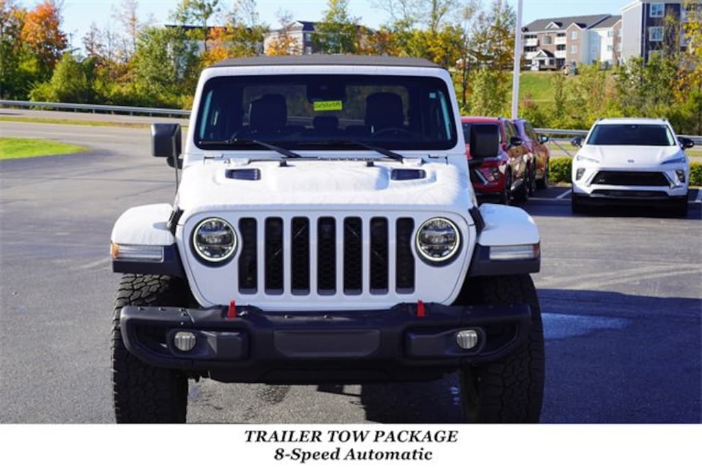Jeff Wyler Florence Buick GMC is very proud to offer this fantastic-looking 2020 Jeep Gladiator Rubicon in Bright White Clearcoat. 8.4 Radio & Premium Audio Group (1-Year SiriusXM Guardian Trial, 5-Year SiriusXM Traffic Service, 5-Year SiriusXM Travel Link Service, Alpine Premium Audio System, Auto-Dimming Rear-View Mirror, Emergency/Assistance Call, For Details, Visit DriveUconnect.com, HD Radio, Radio: Uconnect 4C Nav w/8.4 Display, SiriusXM Traffic Plus, and SiriusXM Travel Link), Advanced Safety Group (Advanced Brake Assist and Full Speed Forward Collision Warning Plus), Auxiliary Switch Group (240 Amp Alternator, 700 Amp Maintenance Free Battery, and Auxiliary Switches), Cold Weather Group (Heated Front Seats and Heated Steering Wheel), LED Lighting Group (Daytime Running Lamps LED Accents, Front LED Fog Lamps, LED Park Turn Lamps, LED Reflector Headlamps, and LED Taillamps), Quick Order Package 24R, Safety Group (Blind Spot & Cross Path Detection and ParkSense Rear Park Assist System), Trailer Tow Package (Class IV Hitch Receiver, Heavy-Duty Engine Cooling, and Trailer Hitch Zoom), 8 Speakers, Alloy wheels, Apple CarPlay/Android Auto, Automatic temperature control, Body Color Fender Flares (2-Piece), Delay-off headlights, Electronic Stability Control, Front Bucket Seats, Front dual zone A/C, Front fog lights, Fully automatic headlights, Heated door mirrors, Illuminated entry, Integrated Off-Road Camera, Leather steering wheel, ParkView Rear Back-Up Camera, Power door mirrors, Premium Black Sunrider Soft Top, Radio: Uconnect 4 w/7 Display, Remote keyless entry, Remote Proximity Keyless Entry, Remote Start System, Spray In Bedliner, Steel Front Bumper, Steering wheel mounted audio controls, Telescoping steering wheel, Tilt steering wheel, Wheels: 17 x 7.5 Polished Black Aluminum, 4-Wheel Disc Brakes, 4.10 Rear Axle Ratio, 97 mph Maximum Speed Calibration, ABS brakes, Air Conditioning, All-Weather Slush Mats, AM/FM radio: SiriusXM, Brake assist, Compass, Driver door bin, Driver vanity mirror, Dual front impact airbags, Dual front side impact airbags, Front anti-roll bar, Front Center Armrest w/Storage, Front reading lights, Garage door transmitter, Integrated roll-over protection, Low tire pressure warning, Occupant sensing airbag, Outside temperature display, Panic alarm, Passenger door bin, Passenger vanity mirror, Performance Suspension, Power steering, Power windows, Premium Cloth Low-Back Bucket Seats, Radio data system, Rear anti-roll bar, Rear reading lights, Roll-Up Tonneau Cover, Security system, Speed control, Split folding rear seat, Tachometer, Traction control, Trip computer, Variably intermittent wipers, Voltmeter, and Wheels: 17 x 7.5 Granite Crystal Aluminum Our PRE-OWNED vehicles are put through a rigorous 167- POINT QUALITY ASSURANCE INSPECTION along with an average amount of over $1,400.00 SPENT to recondition each vehicle so we can be sure to deliver you the highest quality vehicle like you deserve! ***ONLINE PRICE DOES NOT INCLUDE WYLER FAMILY FIRST PACKAGE*** Stop by 1154 Burlington Pike Florence KY 41402to see for yourself, or give us a call @ 859-525-8001 to schedule your test drive!