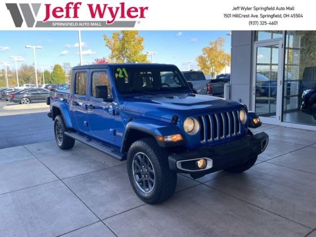 Jeff Wyler Springfield Auto Mall is excited to offer this beautiful-looking 2021 Jeep Gladiator Overland in Hydro Blue Pearlcoat. Well equipped with: 8.4 Radio & Premium Audio Group (1-Year SiriusXM Guardian Trial, 5-Year SiriusXM Traffic Service, 5-Year SiriusXM Travel Link Service, 8.4 Touchscreen Display, Alpine Premium Audio System, Auto-Dimming Rear-View Mirror, Emergency/Assistance Call, For Details, Visit DriveUconnect.com, GPS Navigation, HD Radio, Radio: Uconnect 4C Nav w/8.4 Display, SiriusXM Traffic Plus, and SiriusXM Travel Link), Quick Order Package 24G, Trail Rail Management System (240 Amp Alternator, 400W Inverter, Exterior 115V AC Outlet, and Lockable Rear Underseat Storage), 110 mph Vehicle Max Speed Calibration, 3.73 Rear Axle Ratio, 4-Wheel Disc Brakes, 8 Speakers, ABS brakes, Air Conditioning, Alloy wheels, AM/FM radio: SiriusXM, Apple CarPlay/Android Auto, Automatic temperature control, Black 3-Piece Hard Top, Brake assist, Compass, Delay-off headlights, Driver door bin, Driver vanity mirror, Dual front impact airbags, Dual front side impact airbags, Electronic Stability Control, Freedom Panel Storage Bag, Front anti-roll bar, Front Bucket Seats, Front Center Armrest w/Storage, Front dual zone A/C, Front fog lights, Front reading lights, Fully automatic headlights, Garage door transmitter, Heated door mirrors, Illuminated entry, Integrated roll-over protection, Leather steering wheel, Low tire pressure warning, Manufacturer's Statement of Origin, MOPAR All-Weather Floor Mats (DISC), MOPAR American Flag Hood Decal, Mopar Black Tubular Side Steps, MOPAR Cold Air Intake System, MOPAR Hard Tri-Fold Tonneau Cover (DISC), MOPAR Spray In Bedliner, Normal Duty Plus Suspension, Occupant sensing airbag, Outside temperature display, Overland Cloth Bucket Seats, Panic alarm, ParkView Rear Back-Up Camera, Passenger door bin, Passenger vanity mirror, Power door mirrors, Power steering, Power windows, Premium Door Trim Panel, Radio data system, Radio: Uconnect 4 w/7 Display, Rear anti-roll bar, Rear reading lights, Rear Sliding Window, Rear Window Defroster, Remote keyless entry, Security system, Speed control, Split folding rear seat, Steering wheel mounted audio controls, Tachometer, Telescoping steering wheel, Tilt steering wheel, Traction control, Trip computer, Variably intermittent wipers, Voltmeter, and Wheels: 18 x 7.5 Granite Crystal AluminuM. Ask about available certifications. Used vehicles 10 years of age or newer with less than 100,000 miles are eligible for the Wyler Assurance Program, but eligible vehicles must pass our reconditioning process and multi-point inspection. Provided the vehicle passes inspection, vehicles will be eligible for the 6 month/6,000 mile limited warranty. The 6 month/6,000 mile limited warranty is NOT available on AS-IS vehicles, wholesale vehicles, lease buyback/pass-thru vehicles or un-inspected vehicles. Note that this program can also apply to vehicles where the remaining factory coverage is less than 6 months or 6,000 miles. Please check the Federal Trade Commission (FTC) Buyers guide on the vehicle for full details as to whether or not warranty coverage may apply. Contact Dealer for additional details. The Wyler Assurance 6 month/6,000 Mile limited warranty ends 6 months from the date of the Retail Purchase Agreement (BUYERS ORDER) or when the vehicle's odometer registers 6,000 additional miles to the mileage listed on the BUYERS ORDER, whichever comes first. Your Deductible - The warranty holder on your contract pays the first $100 of each covered repair.