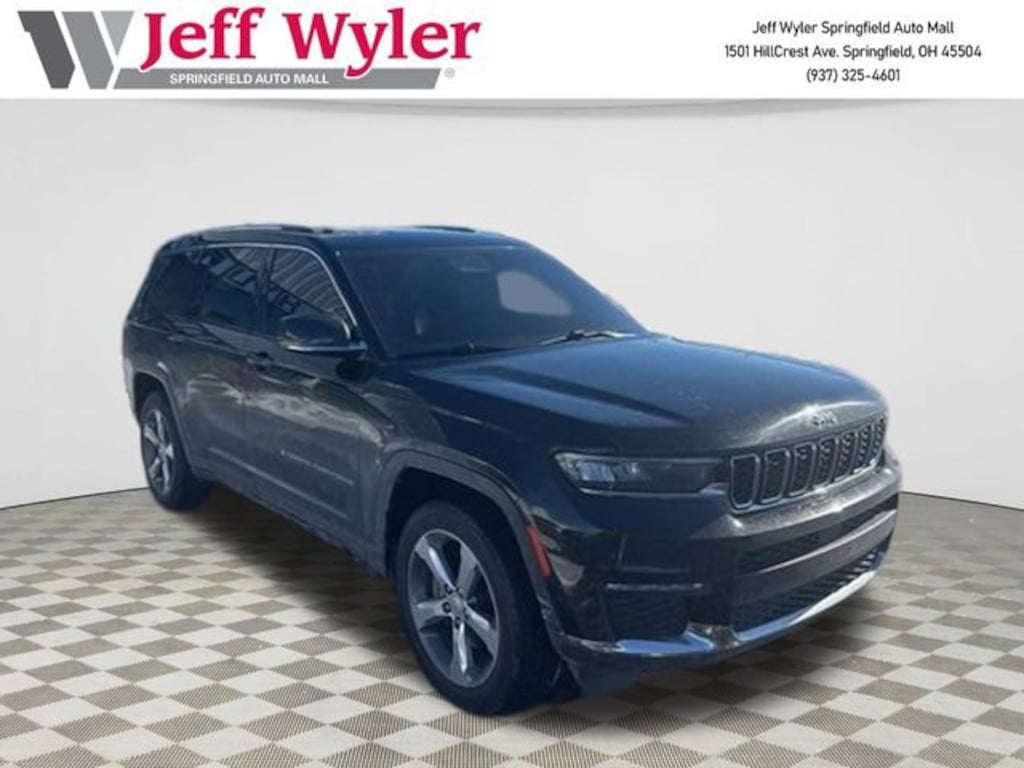 Jeff Wyler Springfield Auto Mall is pleased to offer this wonderful 2021 Jeep Grand Cherokee L Limited in Diamond Black Crystal Pearlcoat. Well equipped with: Quick Order Package 22E, 10.1 Touchscreen Display, 2nd Row 60/40 Bench w/Manual Tip/Slide, 2nd Row Seat Center Armrest/Cupholders, 3 Rear Seat Head Restraints, 3.45 Rear Axle Ratio, 3rd row seats: split-bench, 4-Wheel Disc Brakes, 506 Watt Amplifier, 6 Speakers, 7-Passenger Seating, 9 Amplified Speakers w/Subwoofer, ABS brakes, Air Conditioning, Alloy wheels, AM/FM radio: SiriusXM w/360L, Anti-whiplash front head restraints, Apple CarPlay, Apple CarPlay/Android Auto, Audio memory, Auto High-beam Headlights, Automatic temperature control, Brake assist, Bridgestone Brand Tires, Bumpers: body-color, Capri Leather Seats, Center Rear 3-Point Seat Belt, Compass, Connected Travel & Traffic Services, Connectivity - US/Canada, Delay-off headlights, Disassociated Touchscreen Display, Driver door bin, Driver vanity mirror, Dual front impact airbags, Dual front side impact airbags, Electronic Stability Control, Emergency communication system, Four wheel independent suspension, Front anti-roll bar, Front Bucket Seats, Front Center Armrest w/Storage, Front dual zone A/C, Front fog lights, Front reading lights, Fully automatic headlights, Garage door transmitter, Google Android Auto, GPS Antenna Input, GPS Navigation, HD Radio, Heated door mirrors, Heated front seats, Heated rear seats, Heated steering wheel, Illuminated entry, Integrated Center Stack Radio, Integrated Voice Command w/Bluetooth, Knee airbag, Leather steering wheel, Low tire pressure warning, Manual Fold Seatbacks, Memory seat, Normal Duty Suspension, Occupant sensing airbag, Outside temperature display, Overhead airbag, Overhead console, Panic alarm, ParkView Rear Back-Up Camera, Passenger door bin, Passenger vanity mirror, Power door mirrors, Power driver seat, Power Liftgate, Power passenger seat, Power steering, Power windows, Radio data system, Radio: Uconnect 5 Nav w/10.1 Display, Radio: Uconnect 5 w/8.4 Display, Rear air conditioning, Rear anti-roll bar, Rear reading lights, Rear window defroster, Rear window wiper, Reclining 3rd row seat, Remote keyless entry, Roof rack: rails only, Security system, SiriusXM Satellite Radio, SiriusXM w/360L, Speed control, Speed-Sensitive Wipers, Split folding rear seat, Spoiler, Steering wheel mounted audio controls, Tachometer, Telescoping steering wheel, Tilt steering wheel, Traction control, Trip computer, Turn signal indicator mirrors, USB Host Flip, Variably intermittent wipers, Voltmeter, Wheels: 18 x 8.0 Fully Painted Aluminum 2, and Wheels: 20 x 8.5 Polished/Painted Aluminum (DISC) Ask about available certifications. Used vehicles 10 years of age or newer with less than 100,000 miles are eligible for the Wyler Assurance Program, but eligible vehicles must pass our reconditioning process and multi-point inspection. Provided the vehicle passes inspection, vehicles will be eligible for the 6 month/6,000 mile limited warranty. The 6 month/6,000 mile limited warranty is NOT available on AS-IS vehicles, wholesale vehicles, lease buyback/pass-thru vehicles or un-inspected vehicles. Note that this program can also apply to vehicles where the remaining factory coverage is less than 6 months or 6,000 miles. Please check the Federal Trade Commission (FTC) Buyers guide on the vehicle for full details as to whether or not warranty coverage may apply. Contact Dealer for additional details. The Wyler Assurance 6 month/6,000 Mile limited warranty ends 6 months from the date of the Retail Purchase Agreement (BUYERS ORDER) or when the vehicle's odometer registers 6,000 additional miles to the mileage listed on the BUYERS ORDER, whichever comes first. Your Deductible - The warranty holder on your contract pays the first $100 of each covered repair.