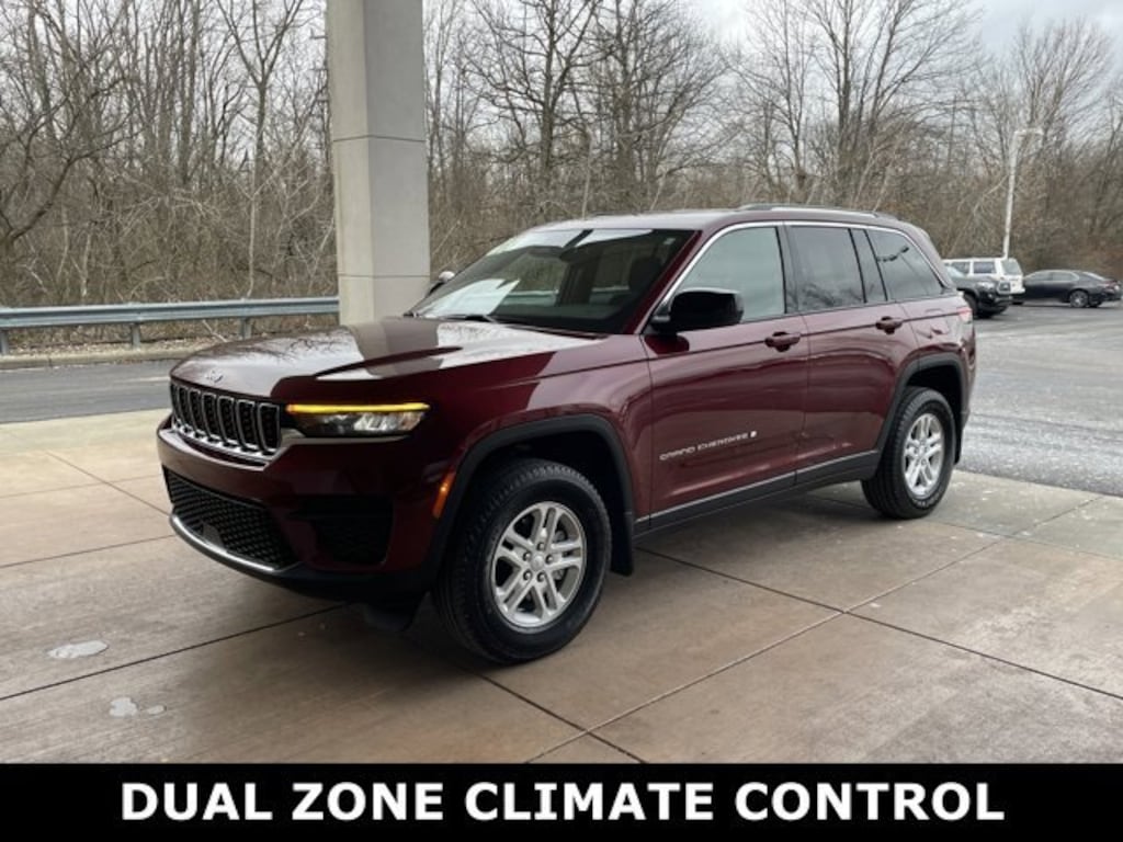 Jeff Wyler Springfield Auto Mall is proud to offer this fantastic-looking 2023 Jeep Grand Cherokee Laredo in Velvet Red Pearlcoat. Well equipped with: MOPAR Finishing Package (MOPAR Front Splash Guards, MOPAR Paint Protection Film, and MOPAR Rear Splash Guards w/Jeep Logo), Quick Order Package 23A Laredo, 3.45 Rear Axle Ratio, 4-Wheel Disc Brakes, 6 Speakers, ABS brakes, Air Conditioning, Alloy wheels, Anti-whiplash front head restraints, Automatic temperature control, Brake assist, Bumpers: body-color, Cloth Seats, Compass, Delay-off headlights, Driver door bin, Driver vanity mirror, Dual front impact airbags, Dual front side impact airbags, Electronic Stability Control, Emergency communication system, Four wheel independent suspension, Front anti-roll bar, Front Bucket Seats, Front Center Armrest w/Storage, Front dual zone A/C, Front License Plate Bracket, Front reading lights, Fully automatic headlights, Heated door mirrors, Illuminated entry, Knee airbag, Low tire pressure warning, Molded In Color Black/Gloss Black Roof Rails, Normal Duty Suspension, Occupant sensing airbag, Outside temperature display, Overhead airbag, Overhead console, Panic alarm, ParkView Rear Back-Up Camera, Passenger door bin, Passenger vanity mirror, Power door mirrors, Power driver seat, Power steering, Power windows, Radio data system, Radio: Uconnect 5 w/8.4 Display, Rear anti-roll bar, Rear reading lights, Rear window defroster, Rear window wiper, Remote keyless entry, Security system, Speed control, Speed-Sensitive Wipers, Split folding rear seat, Spoiler, Steering wheel mounted audio controls, Tachometer, Telescoping steering wheel, Tilt steering wheel, Traction control, Trip computer, Variably intermittent wipers, Voltmeter, and Wheels: 17 x 6.5 Fully Painted Aluminum. Ask about available certifications. Used vehicles 10 years of age or newer with less than 100,000 miles are eligible for the Wyler Assurance Program, but eligible vehicles must pass our reconditioning process and multi-point inspection. Provided the vehicle passes inspection, vehicles will be eligible for the 6 month/6,000 mile limited warranty. The 6 month/6,000 mile limited warranty is NOT available on AS-IS vehicles, wholesale vehicles, lease buyback/pass-thru vehicles or un-inspected vehicles. Note that this program can also apply to vehicles where the remaining factory coverage is less than 6 months or 6,000 miles. Please check the Federal Trade Commission (FTC) Buyers guide on the vehicle for full details as to whether or not warranty coverage may apply. Contact Dealer for additional details. The Wyler Assurance 6 month/6,000 Mile limited warranty ends 6 months from the date of the Retail Purchase Agreement (BUYERS ORDER) or when the vehicle's odometer registers 6,000 additional miles to the mileage listed on the BUYERS ORDER, whichever comes first. Your Deductible - The warranty holder on your contract pays the first $100 of each covered repair.